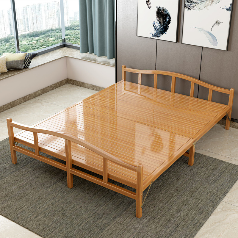 여름 대나무 침대 저렴한 접이식 침대 싱글 더블 가정용 성인 점심 시간 낮잠 하드 보드 쿨 침대 단단한 나무 침대스토어 가기