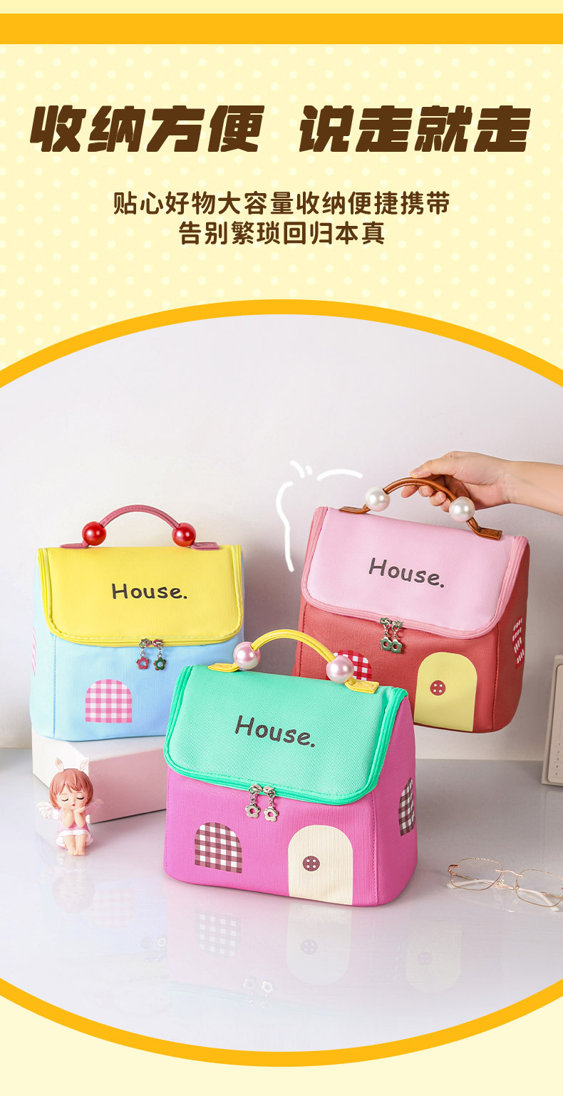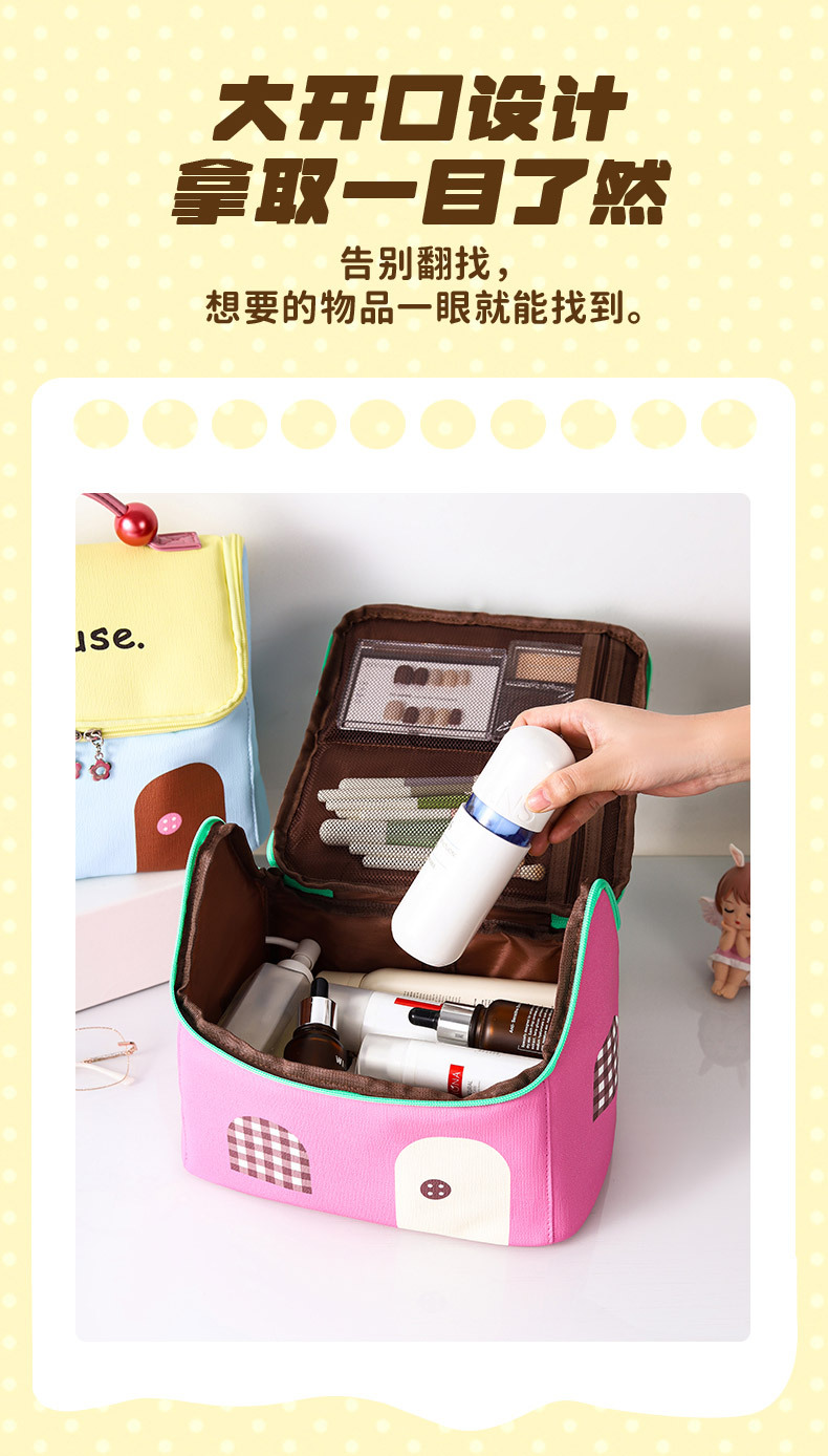 고급스러운 화장품 가방, 인기 있는 귀여운 작은 집 세면도구 가방, 화장품 보관 가방, 방수 대용량 여행 가방스토어 가기