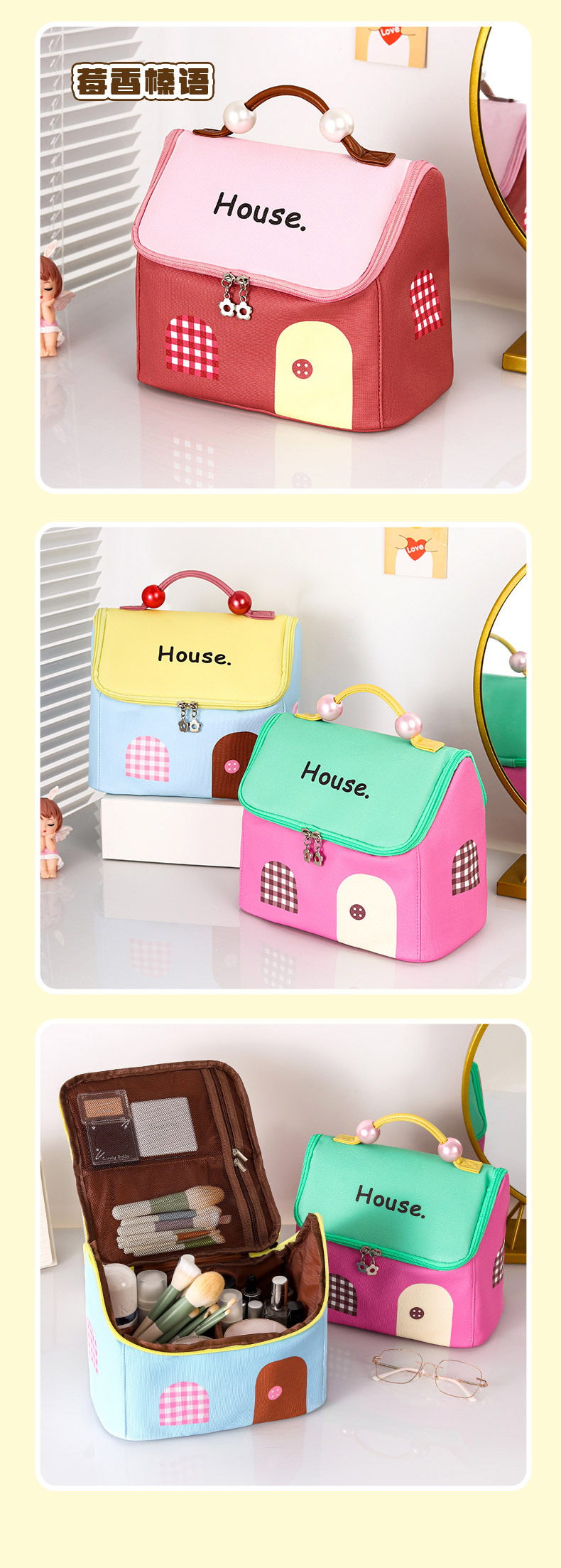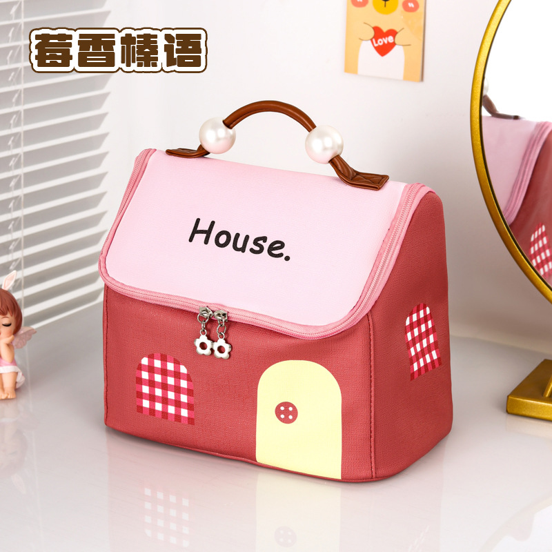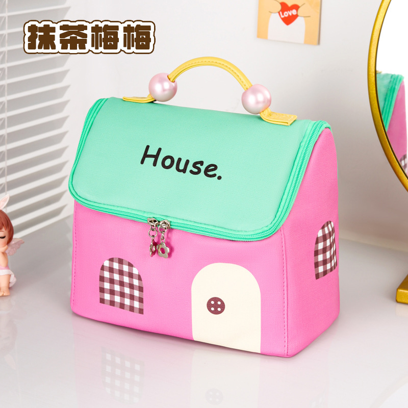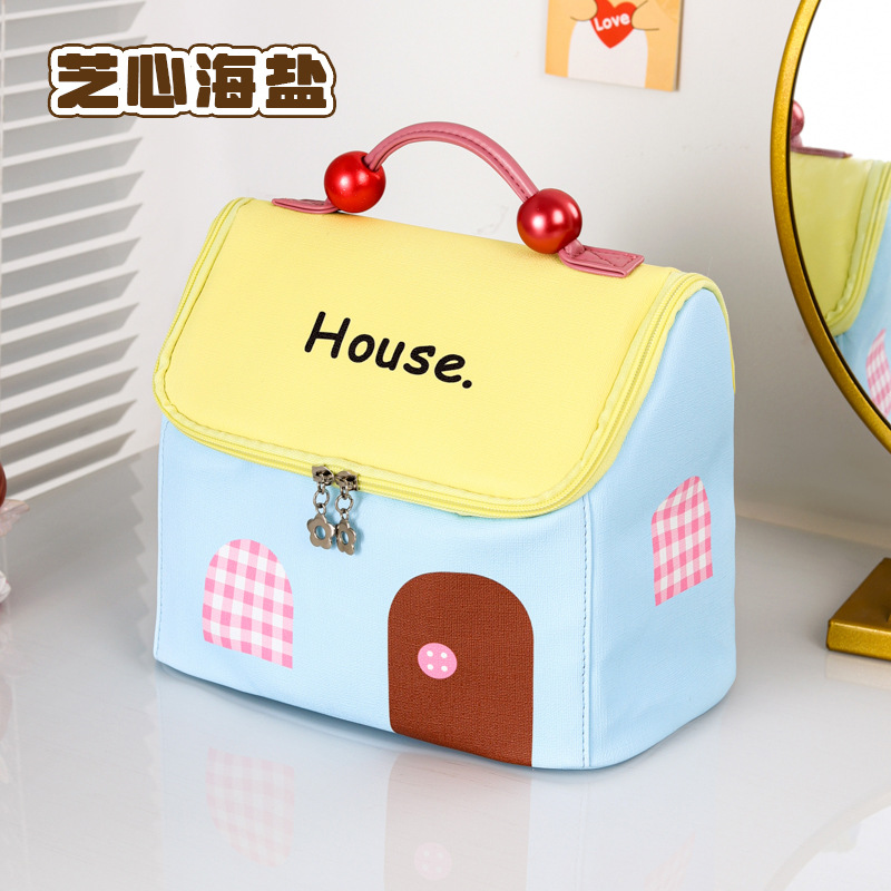 고급스러운 화장품 가방, 인기 있는 귀여운 작은 집 세면도구 가방, 화장품 보관 가방, 방수 대용량 여행 가방