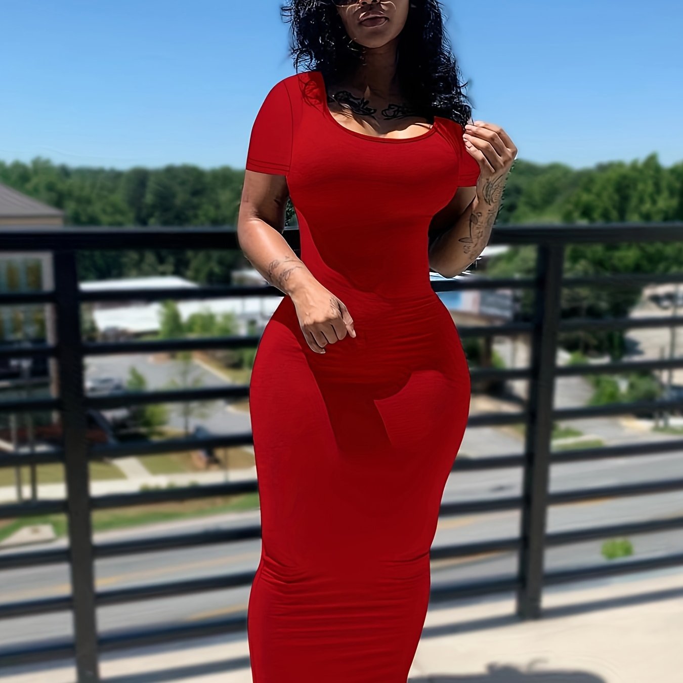 여자 캐주얼 바디 콘 맥시 원피스 여름 특종 목 짧은