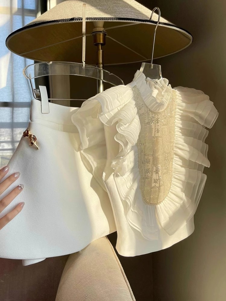 올해 인기있는 프랑스 스타일 아름다운 원피스 여성 여름 2025 작은 나무 귀 셔츠 하이 엔드 투피스 세트