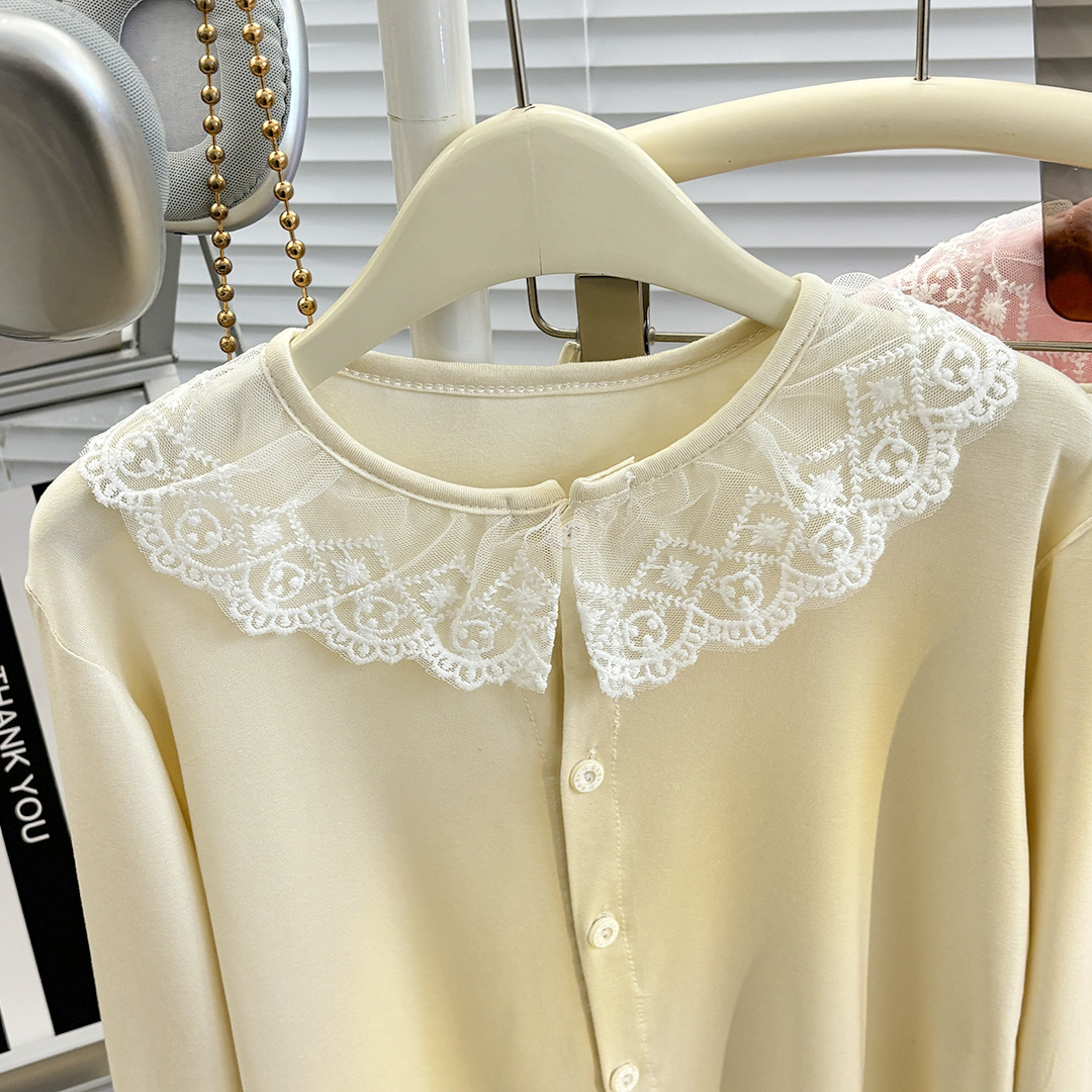 여아 신작 봄 여름 가디건 모달 레이스 칼라 긴팔 잠옷 세트, 큰 어린이를 위한 부모-자식 가정복