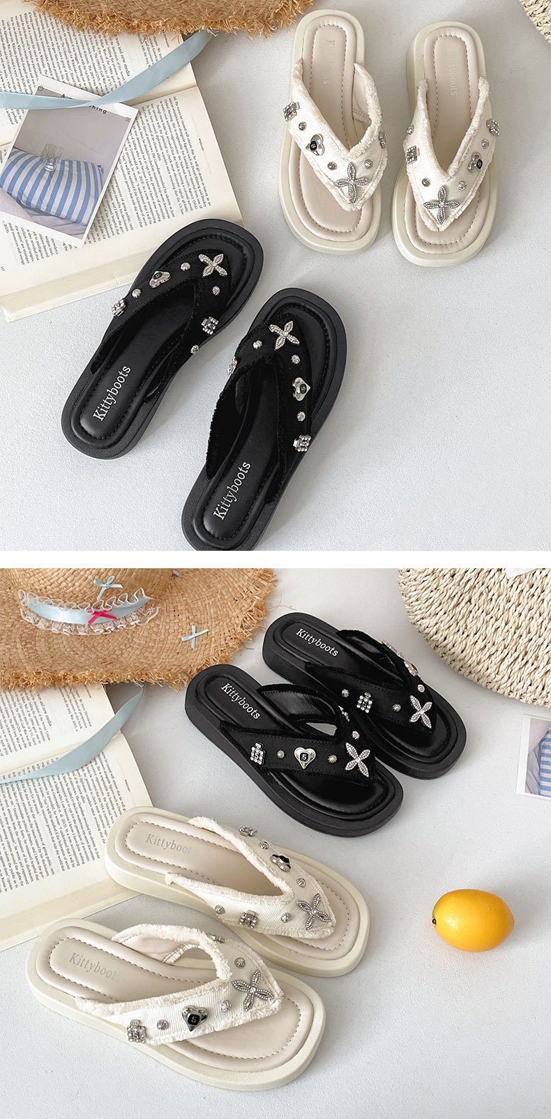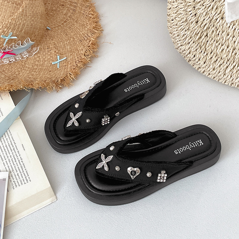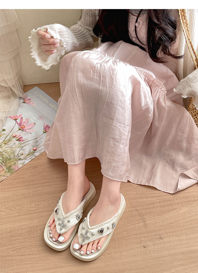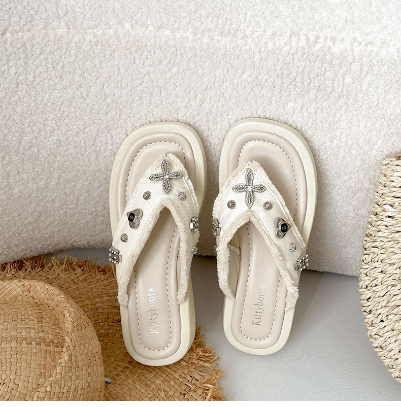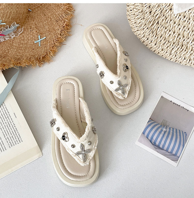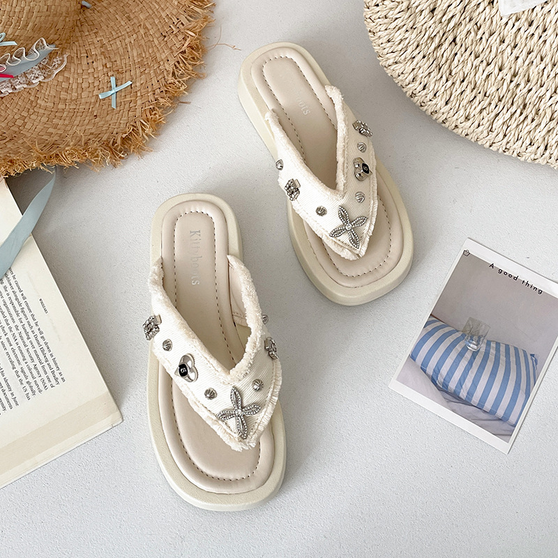 인터넷 Celebrous White 두꺼운 밑바닥 미끄럼 방지 플립 플롭 여성 여름 복장 2025 새로운 고급 소프트 바닥 샌들