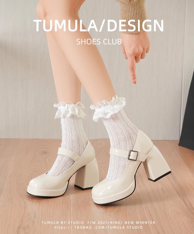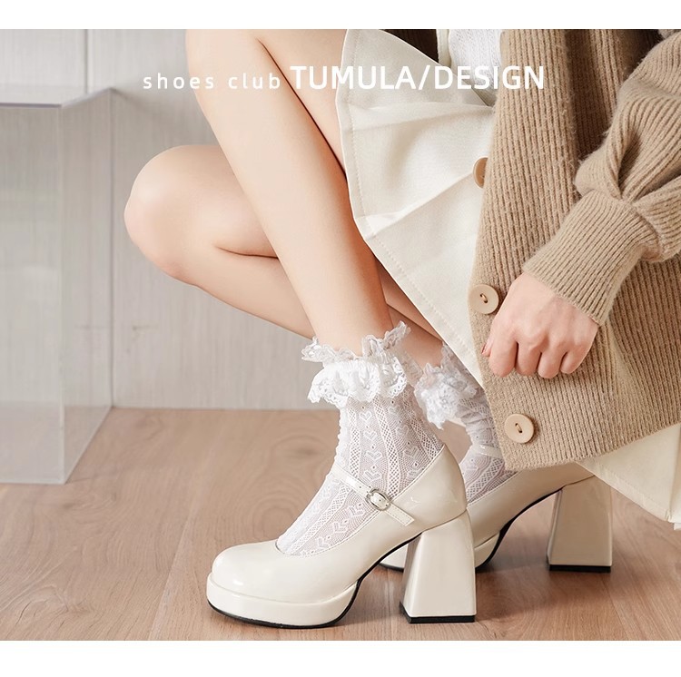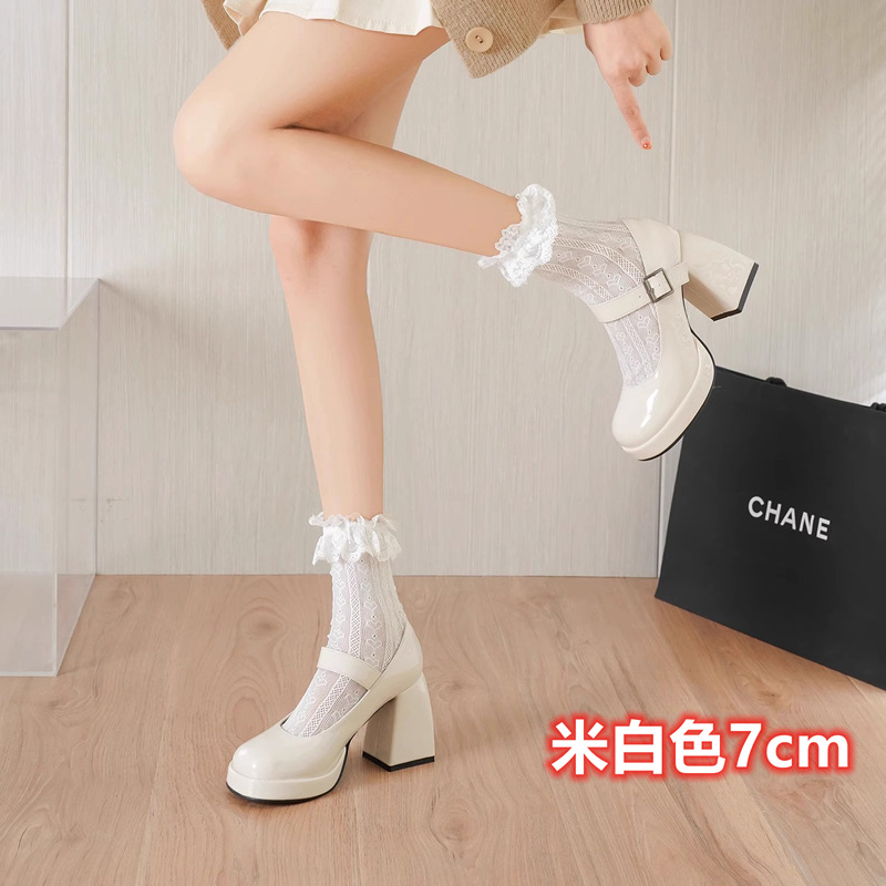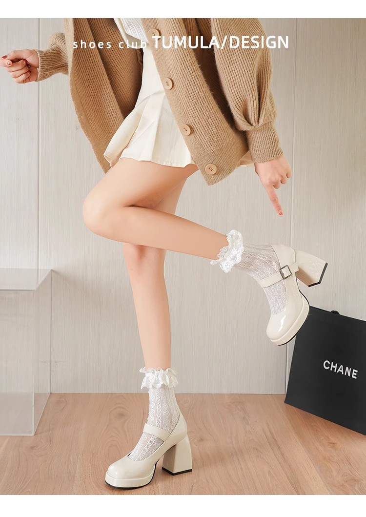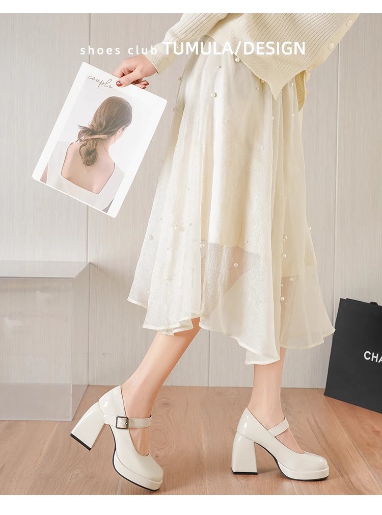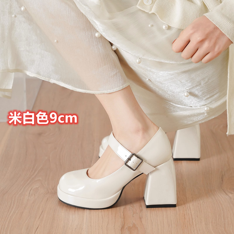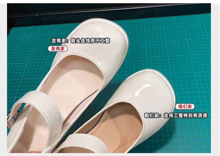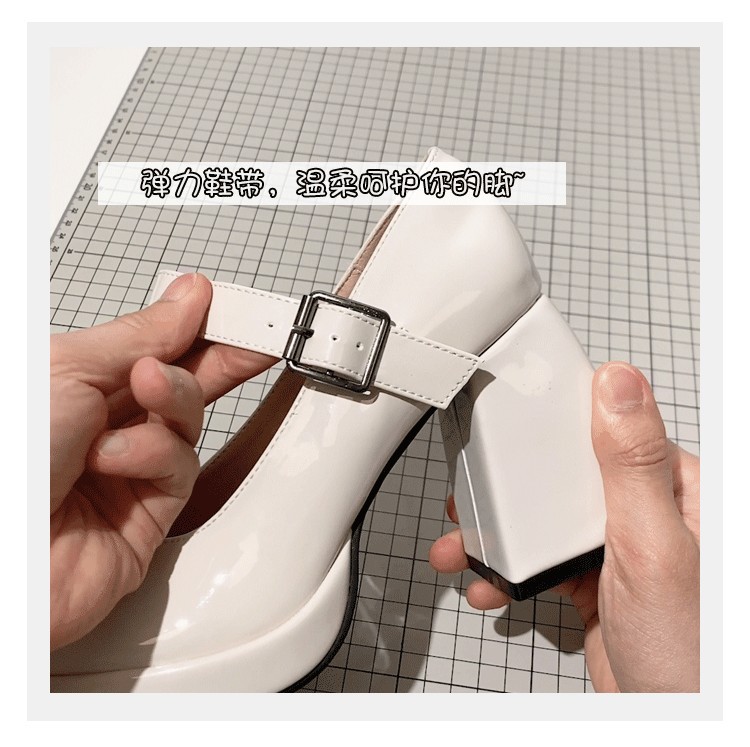 프랑스 스타일의 작은 가죽 신발 메리 제인 여성 신발 하이힐 대학생을위한스토어 가기
