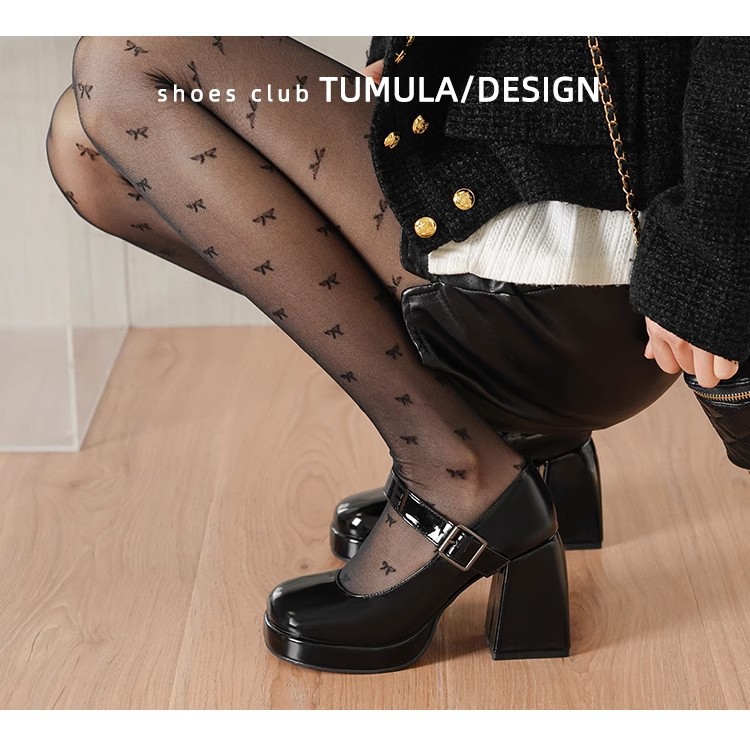 프랑스 스타일의 작은 가죽 신발 메리 제인 여성 신발 하이힐 대학생을위한