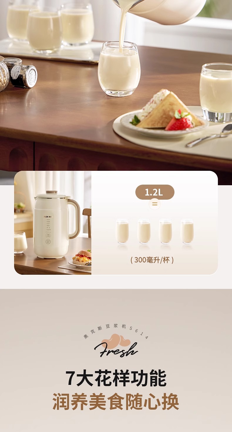 오크스 가정용 두유 제조기 3-4인용 자동 파쇄기 과일 및 야채 주스기 소형 미니 요리기 1인용스토어 가기