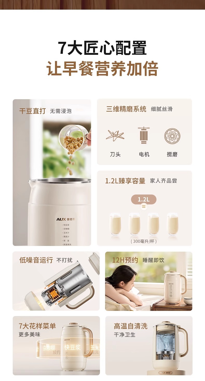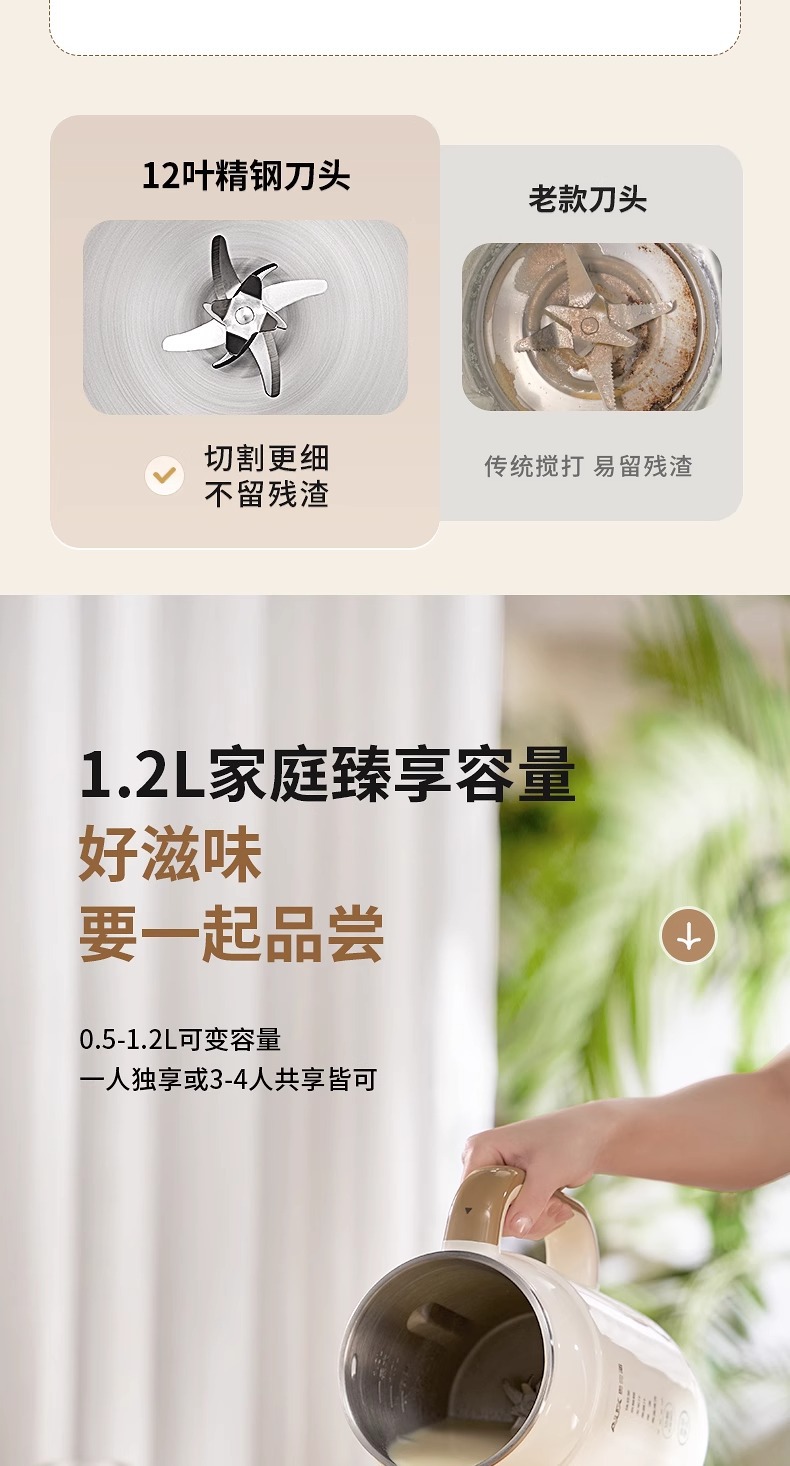 • 1.2리터 용량, 1~5인용 [업그레이드된 항균 섀시] 두유 제조기