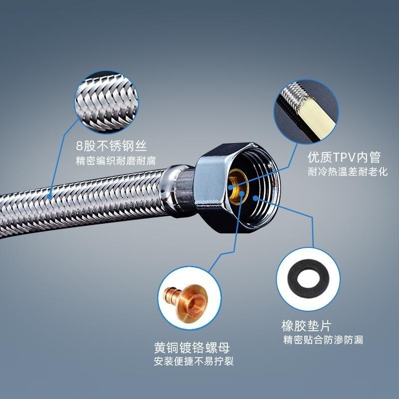 304 스테인레스 스틸 4 포인트 워터 호스 온수기 냉온수 수도꼭지 화장실 액세서리 물 입구 편조 연결 파이프