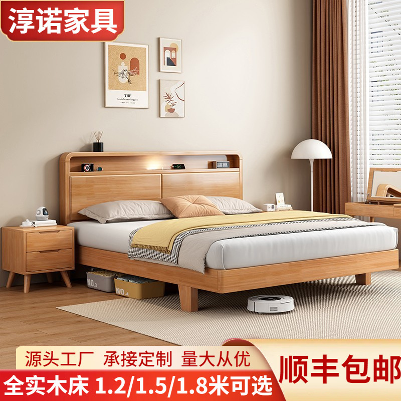 북유럽 원목 침대 1.8m 마스터 침실 더블 침대 소형 싱글 침대 1.5m 경제적인 기숙사 침대스토어 가기