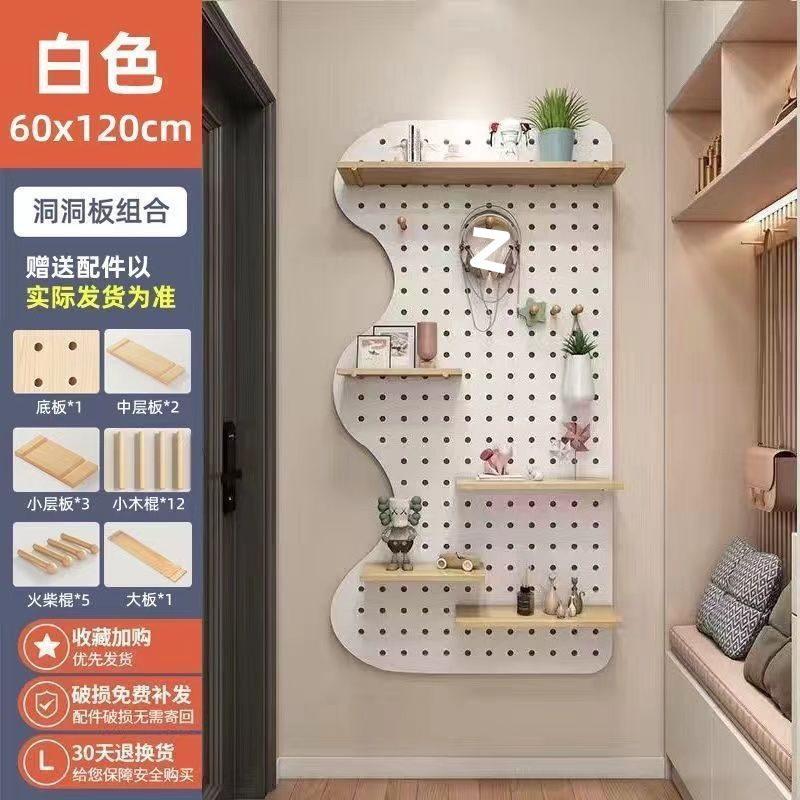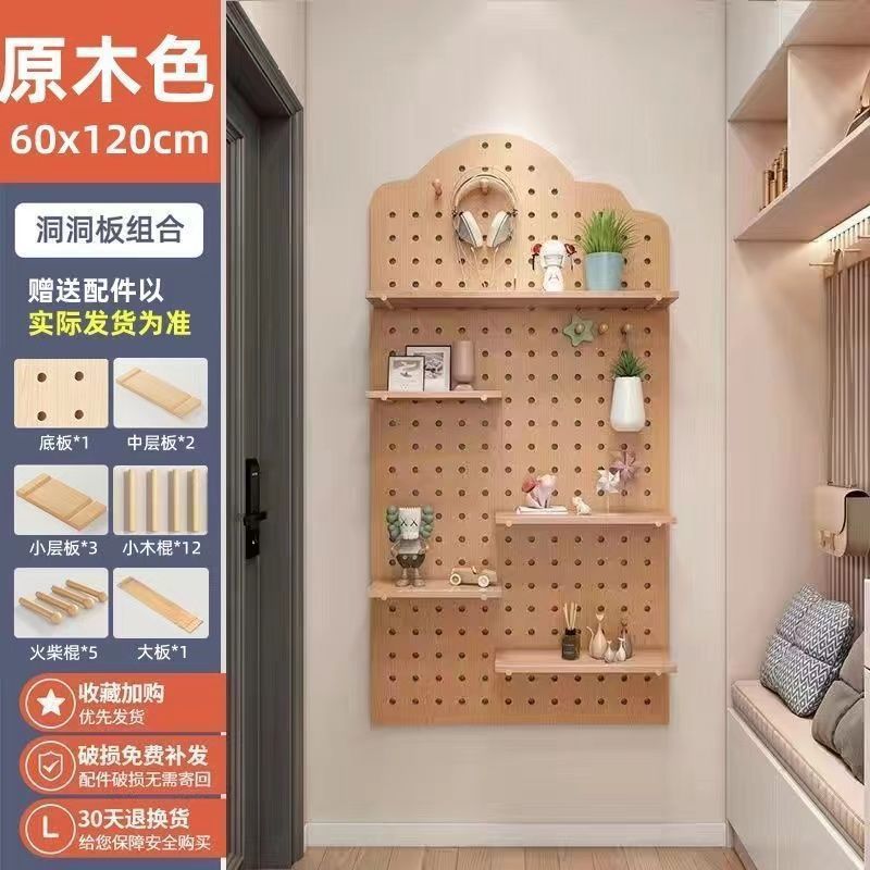 홀 보드 벽 수납 선반, 벽 칸막이 수납 선반, 벽 디스플레이 선반, 원목 걸이 보드, 현관 입구, 크로스보더스토어 가기