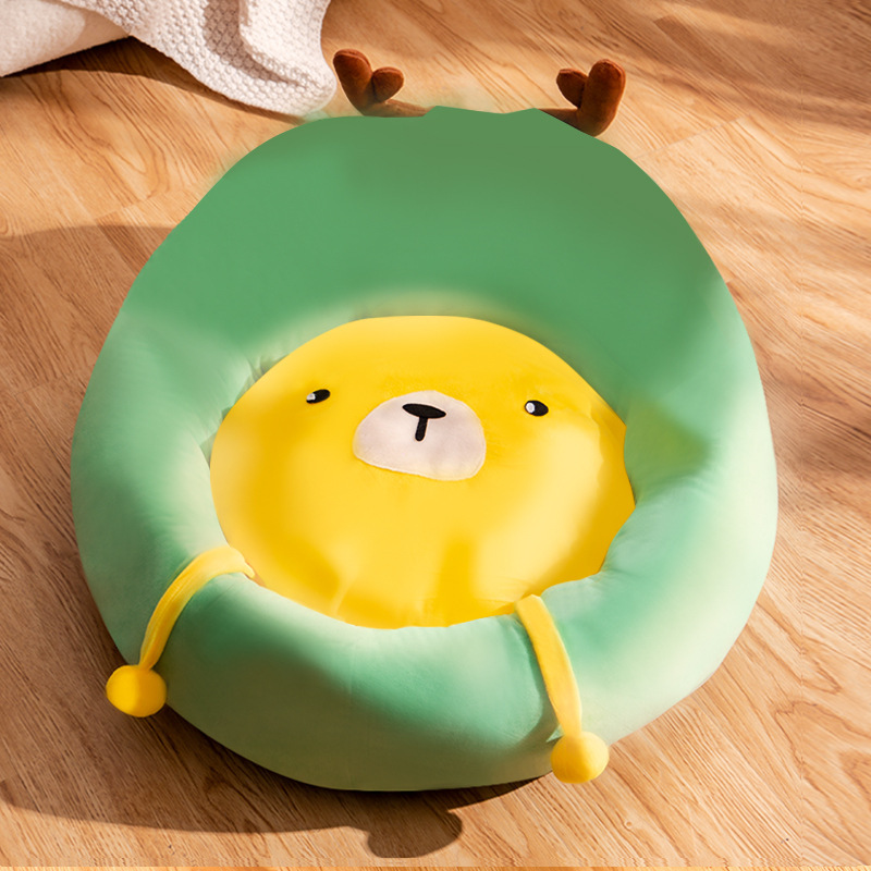 • 벨벳과 두꺼워진 12CM 비흘림 [아보카도 그린] 깊은 도넛 플러시 둥지