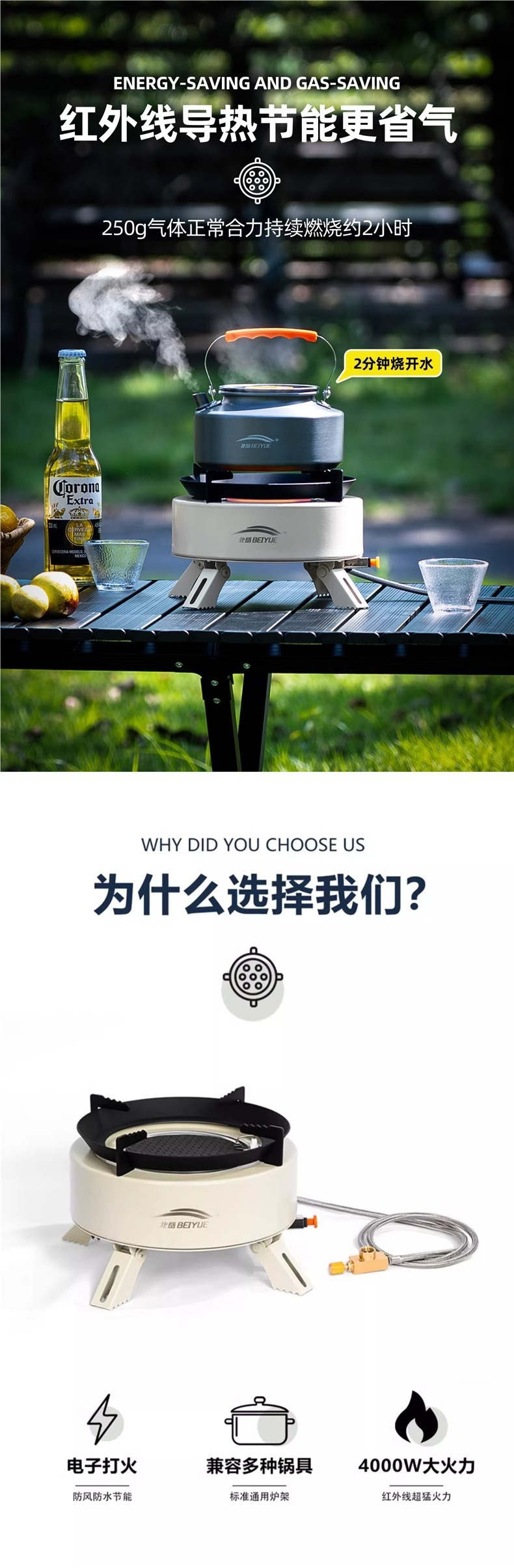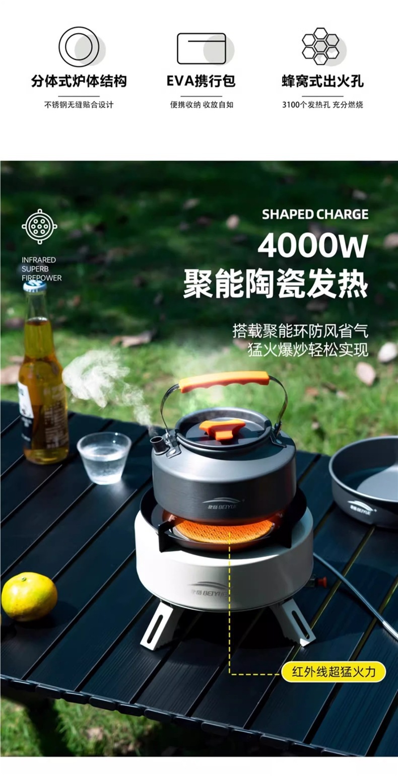 Beiyue 카세트 스토브 야외 스토브 분할 가스 스토브 캠핑 피크닉 장비 완전한 야외 차 스토브 세트