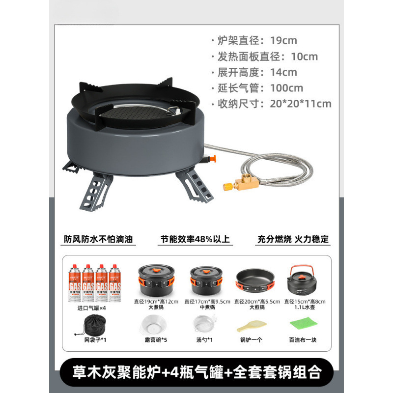 • [메인사진과 같은 스타일] 문락 그레이 에너지 집중형 난로 + 가스탱크 4개 + 휴대용 주전자.