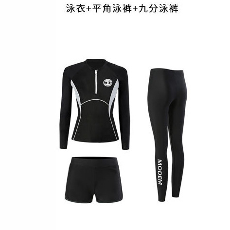 수영복 여성 스플릿 원피스 긴팔 바지 2025 새로운 핫 스타일 보수적 인 잠수복 여성 수영복