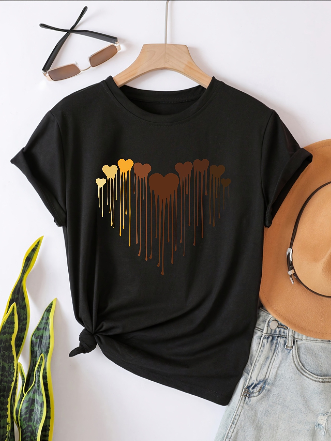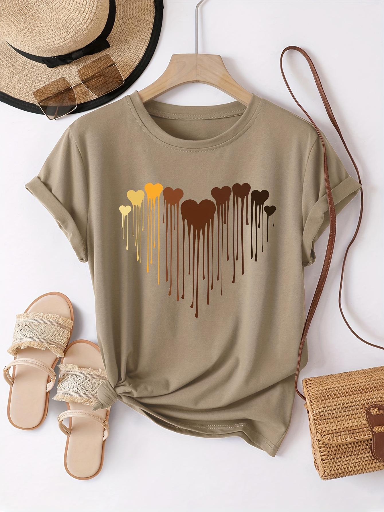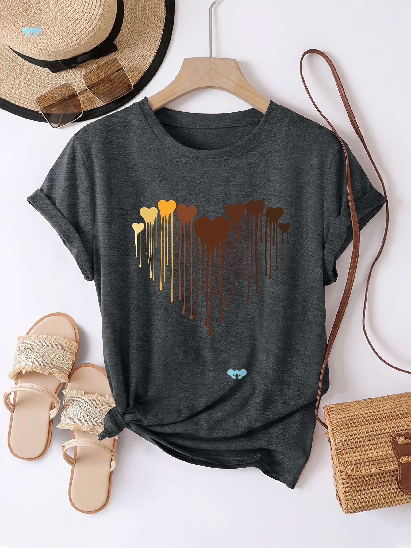여성 캐주얼 크루 넥 티셔츠 하트 프린트스토어 가기