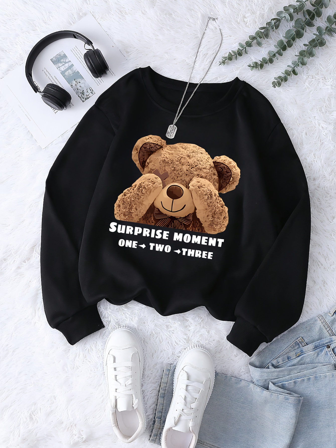네이비 긴 소매 크루넥 베어 및 레터 프린트 - 여성용