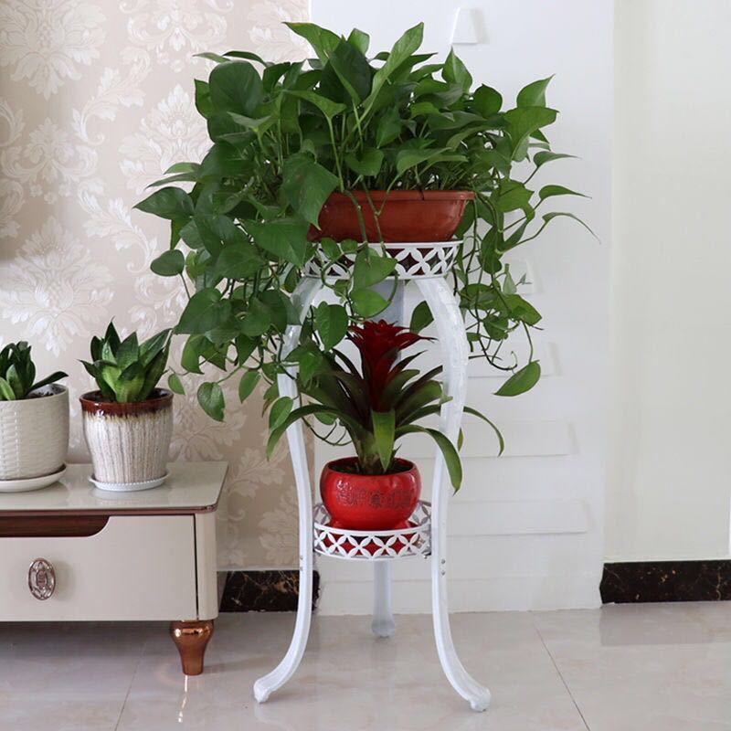 거실 TV 캐비닛 옆에 있는 녹색 난초 꽃 선반, 고급 유럽식 철제 화분 선반, 고급 실내 수납 선반스토어 가기