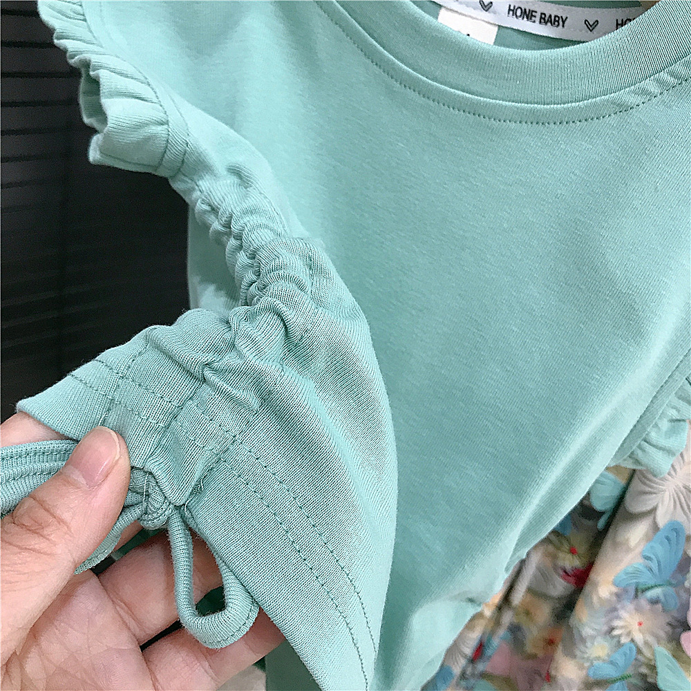 어린이 모기 방지 바지 새 스타일 소녀 비행 슬리브 티셔츠 투피스 세트 소녀 한국 스타일 캐주얼 여름 원피스 대외 무역스토어 가기