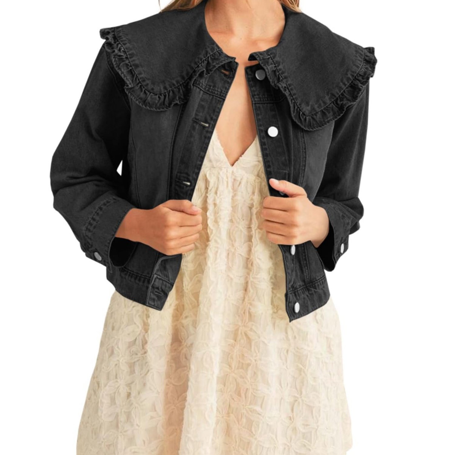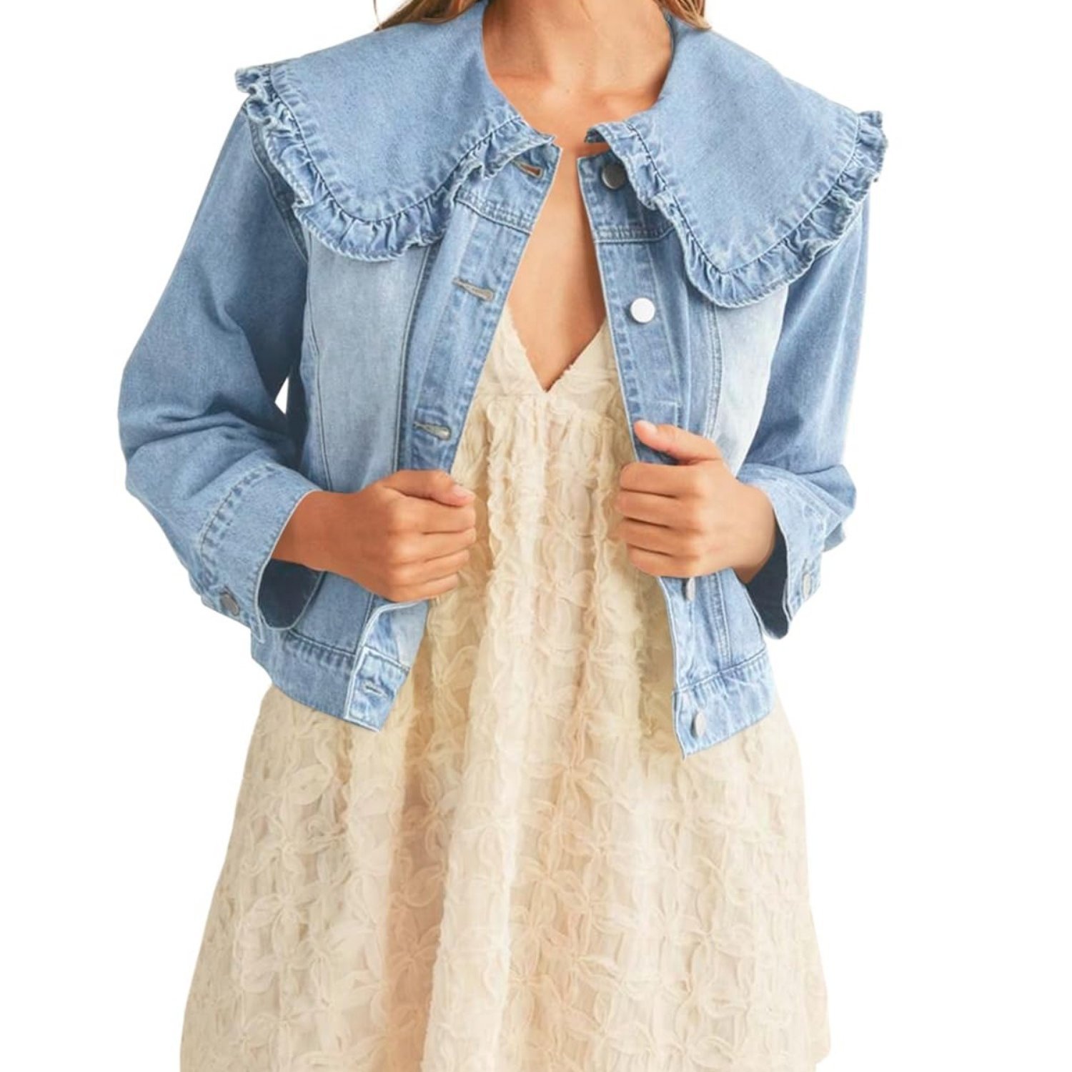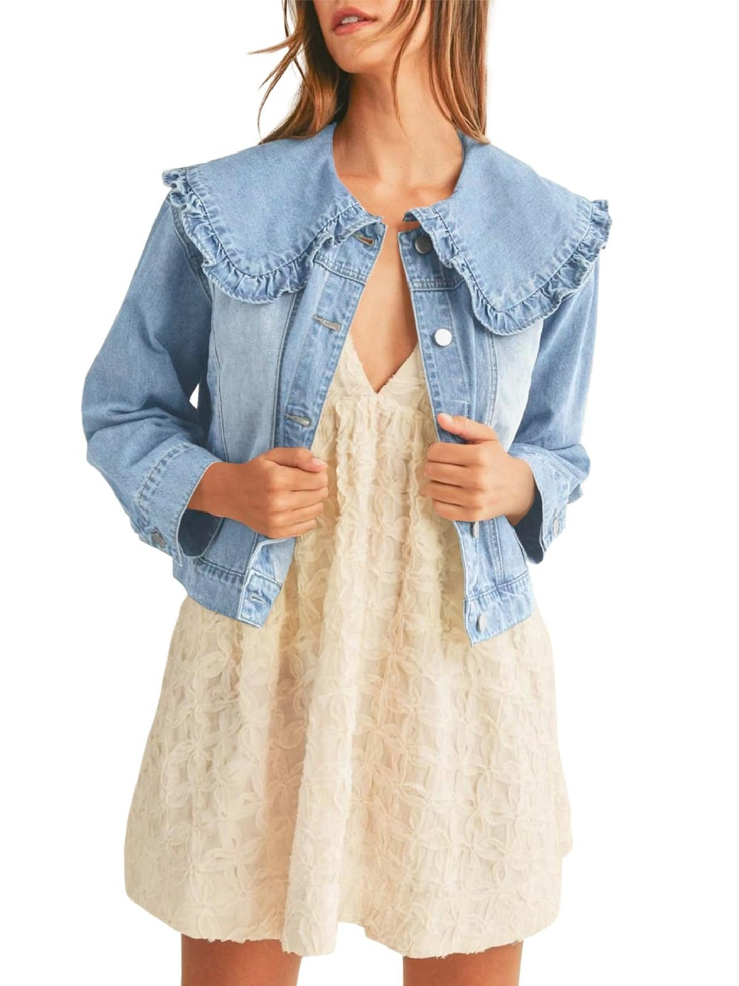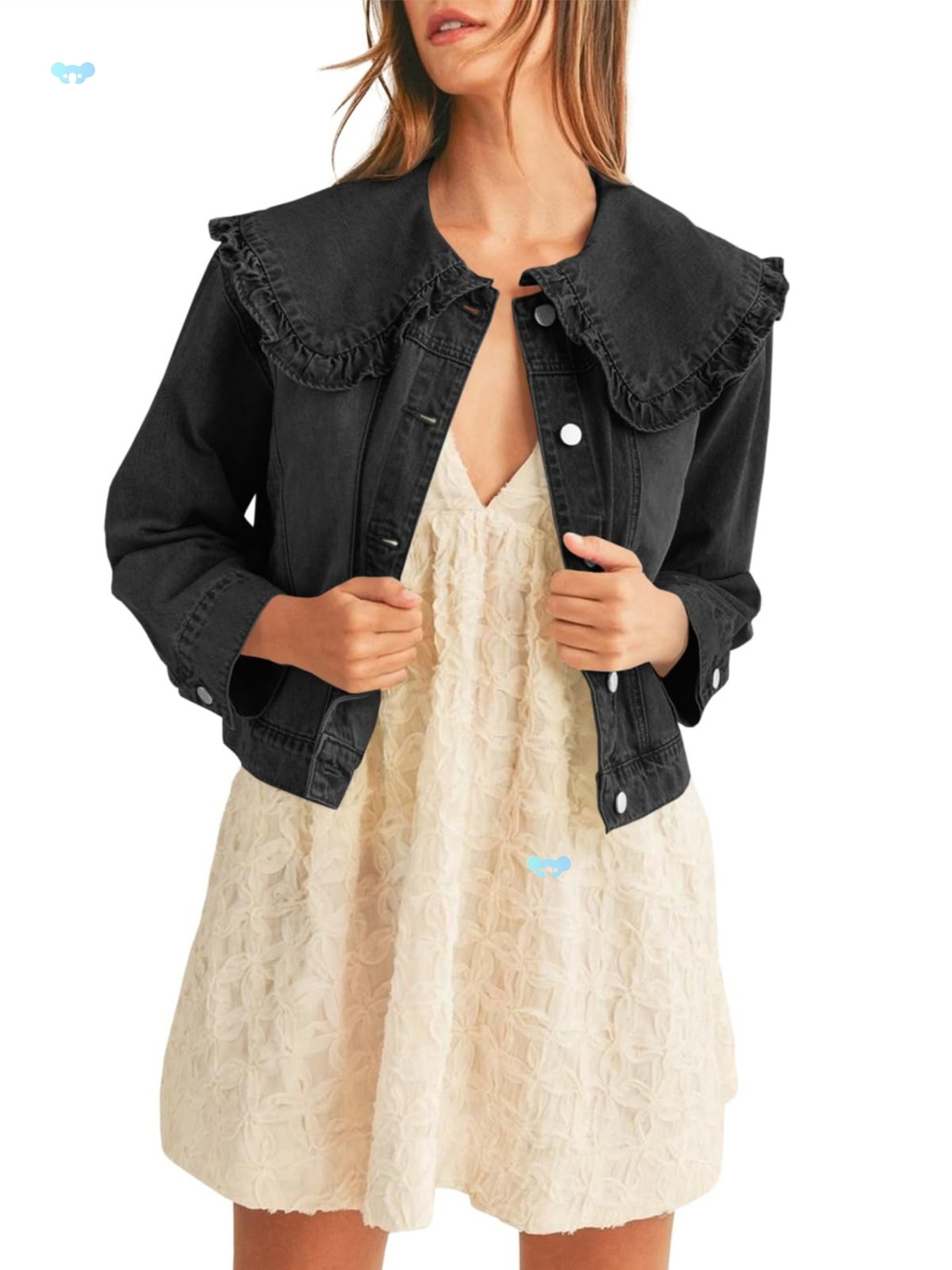 여성 캐주얼 데님 재킷 - 긴 소매, 칼라 셔츠스토어 가기
