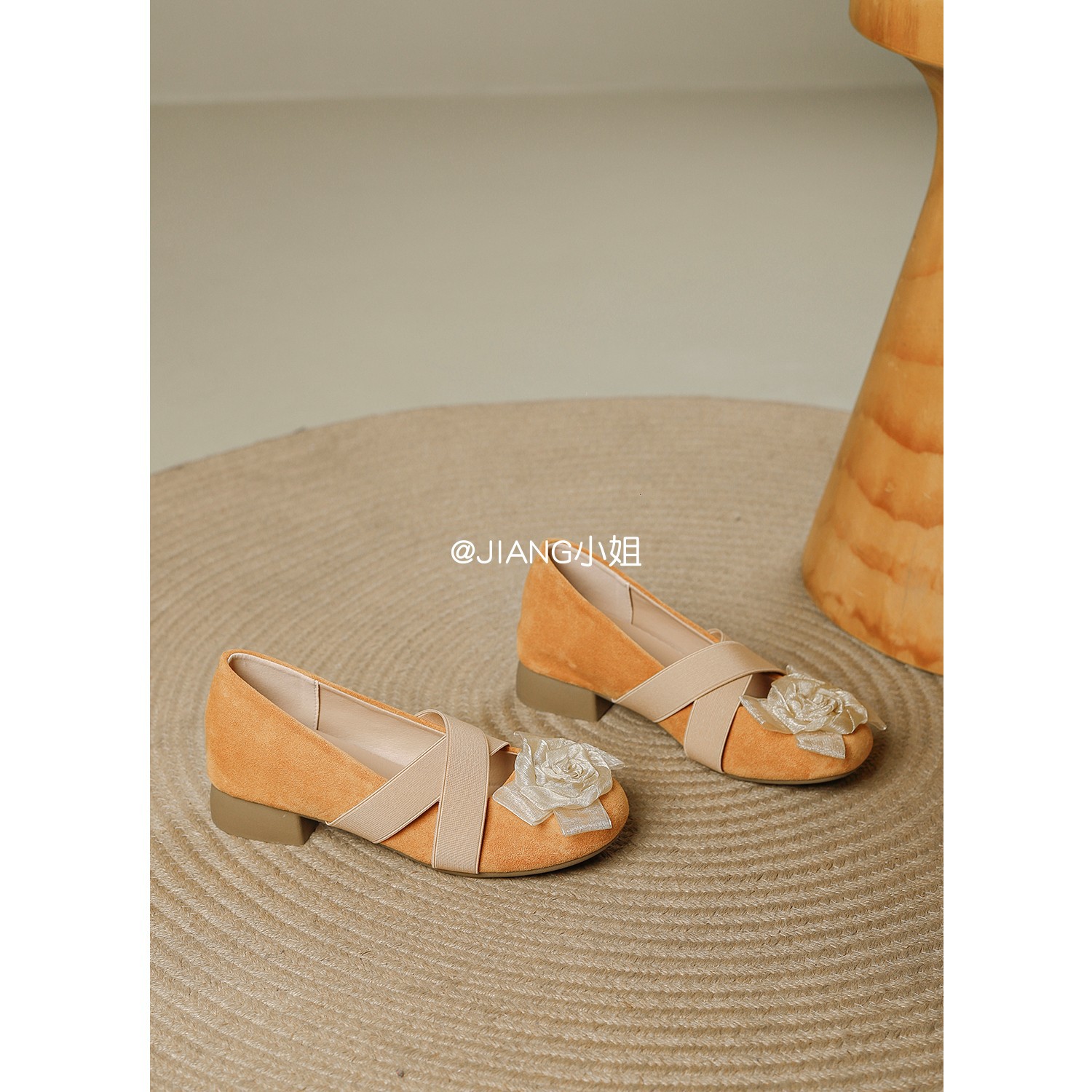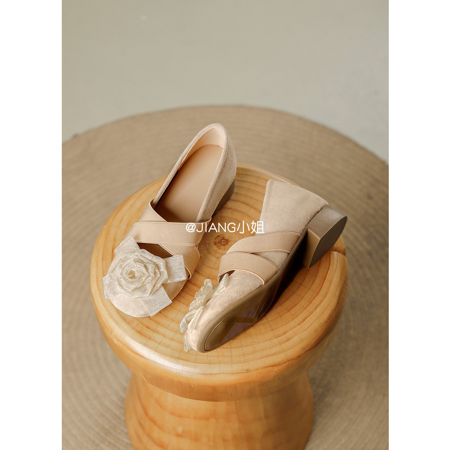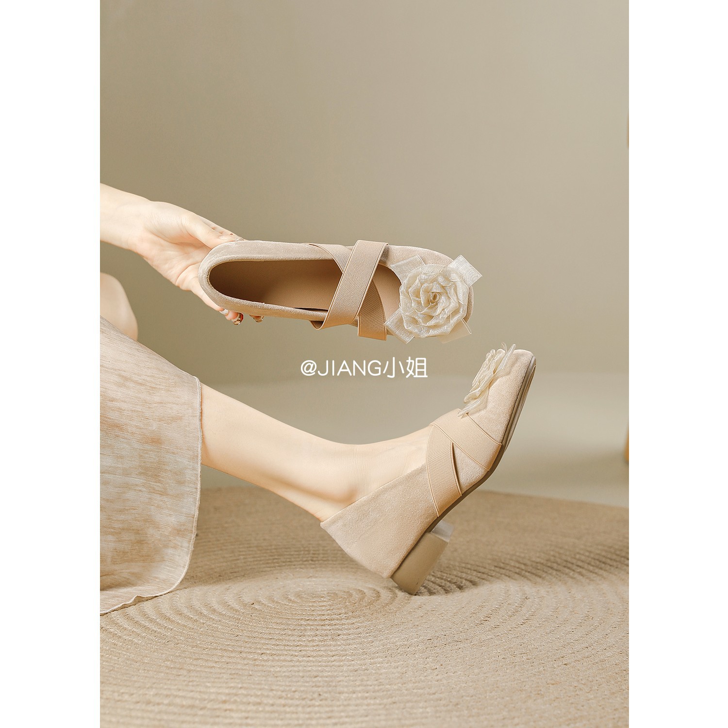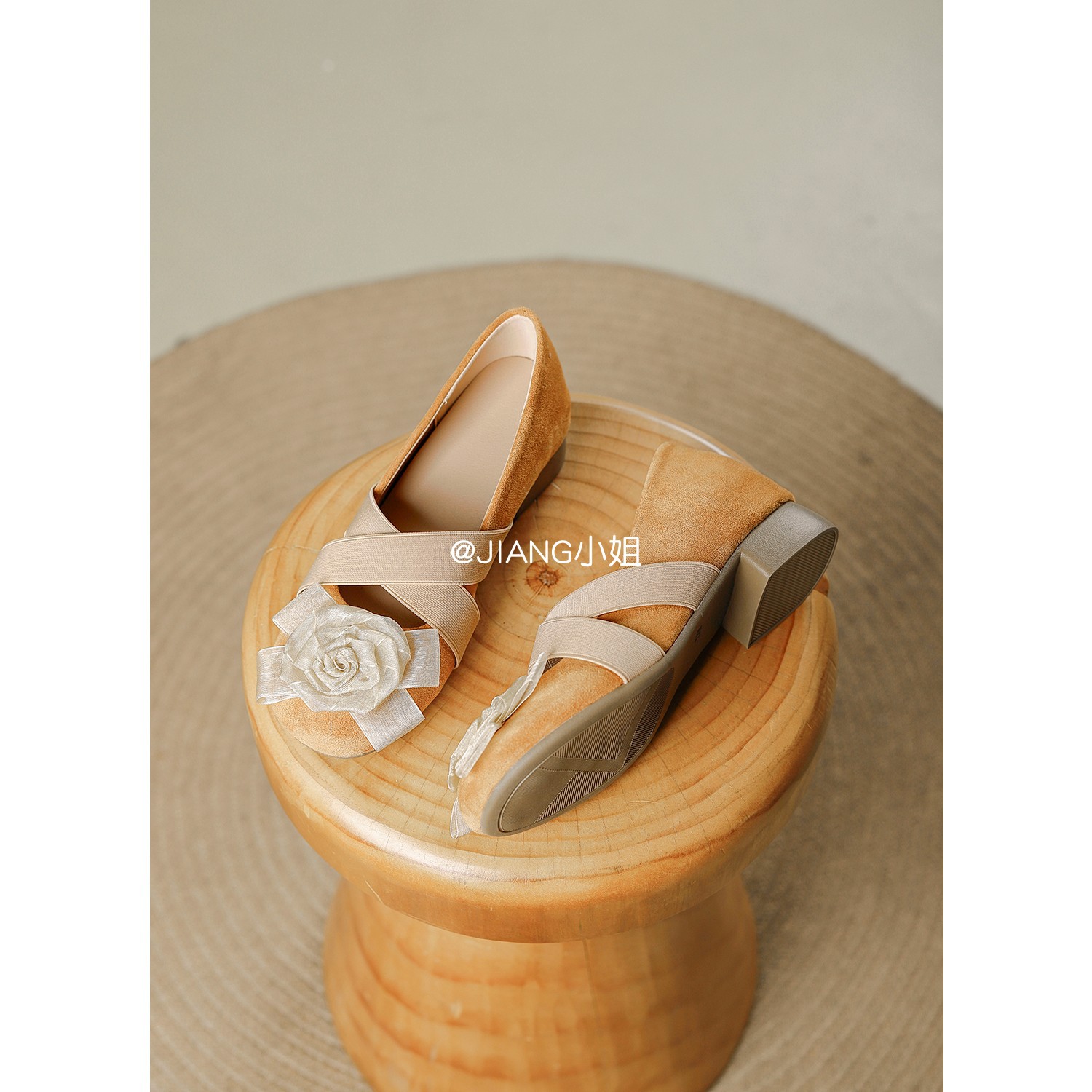양가죽 버전 ~ 6cm 작은 높이 동백 크로스 벨트 봄과 가을 발레 신발 두꺼운 힐 메리 제인 신발 여성스토어 가기