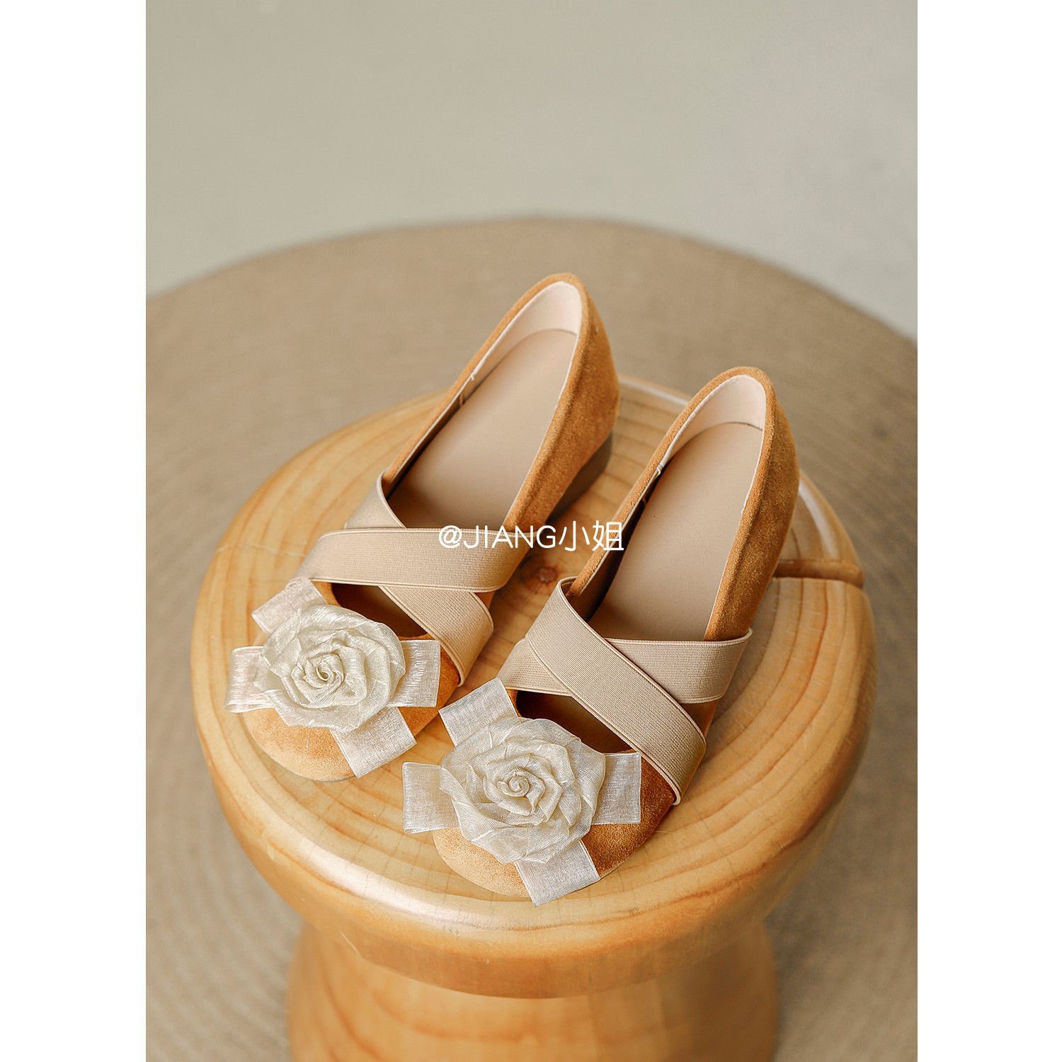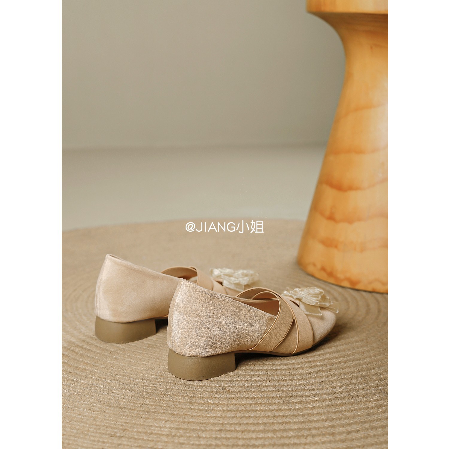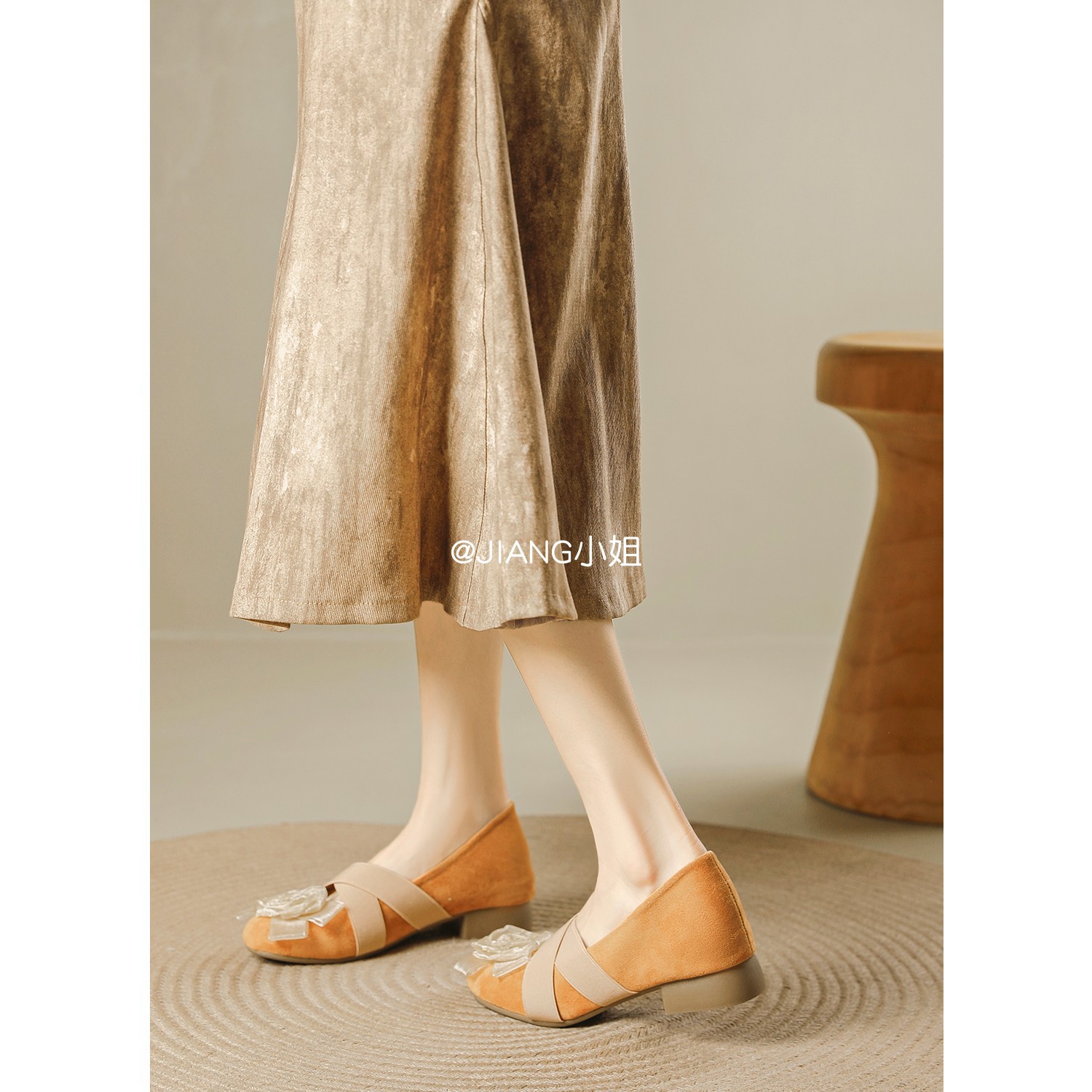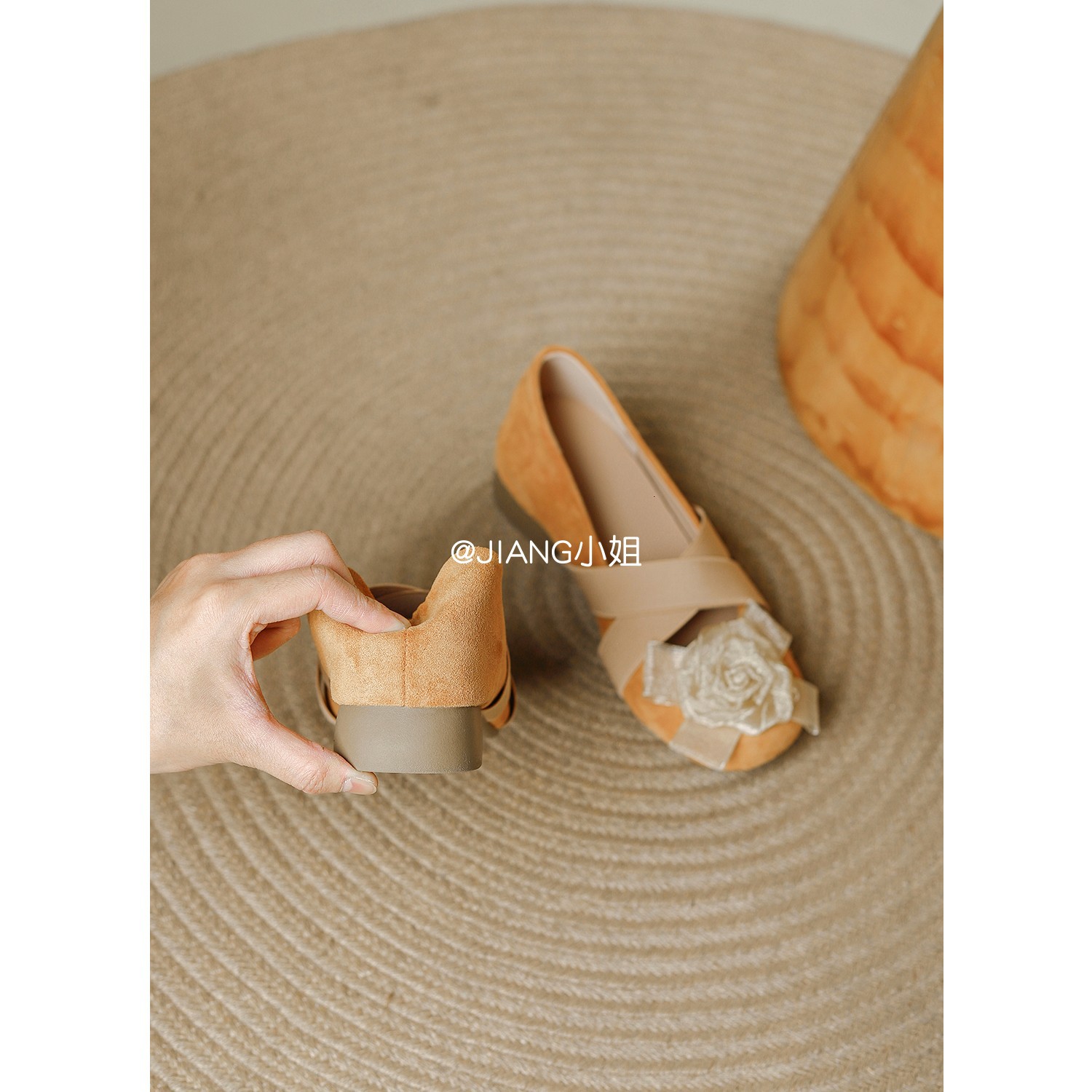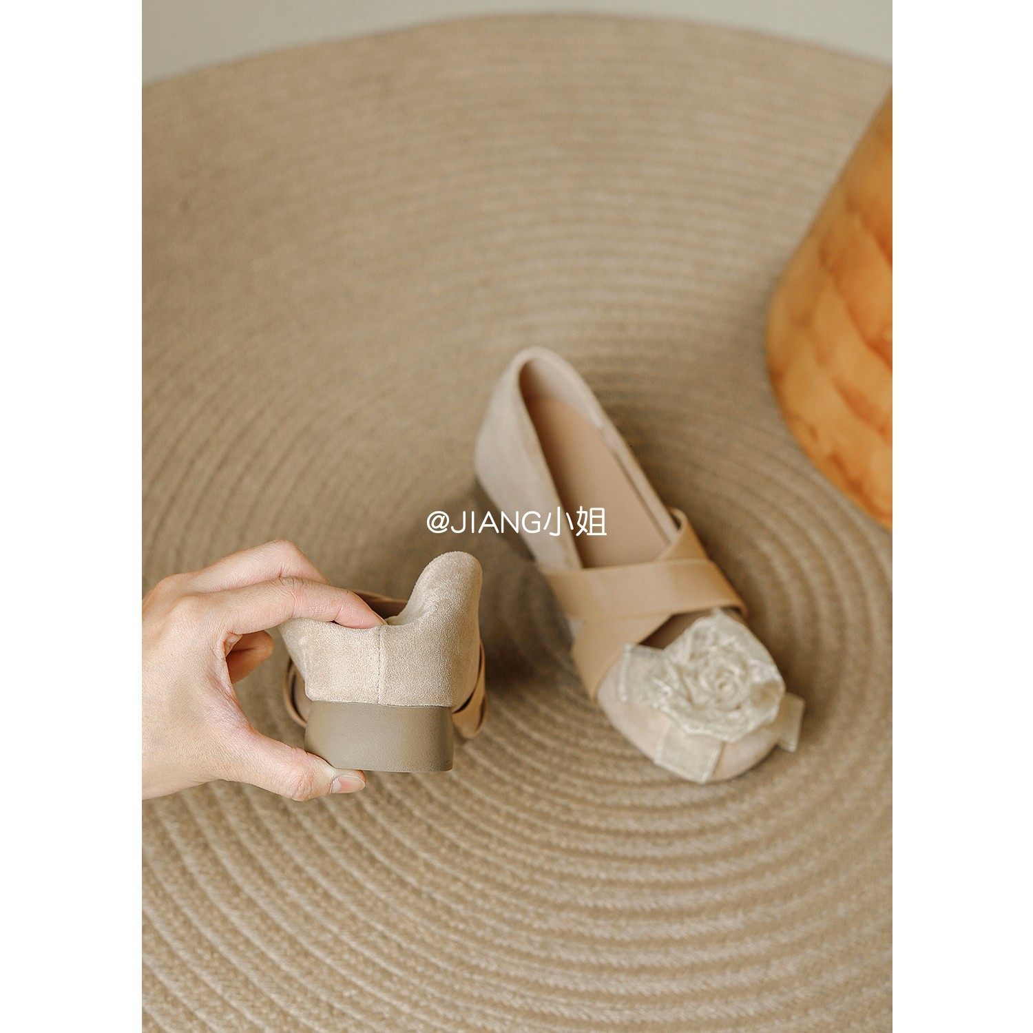 양가죽 버전 ~ 6cm 작은 높이 동백 크로스 벨트 봄과 가을 발레 신발 두꺼운 힐 메리 제인 신발 여성스토어 가기