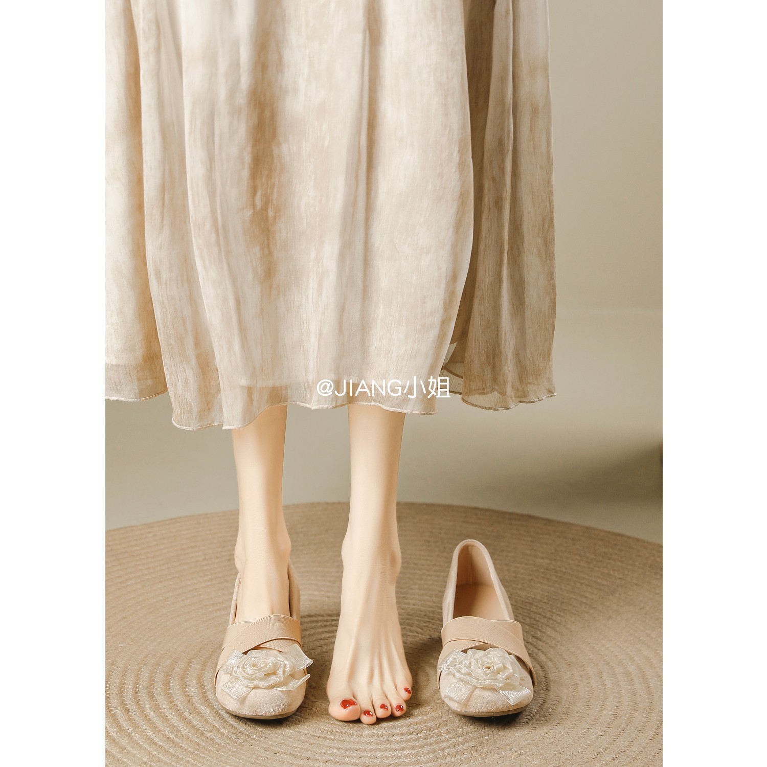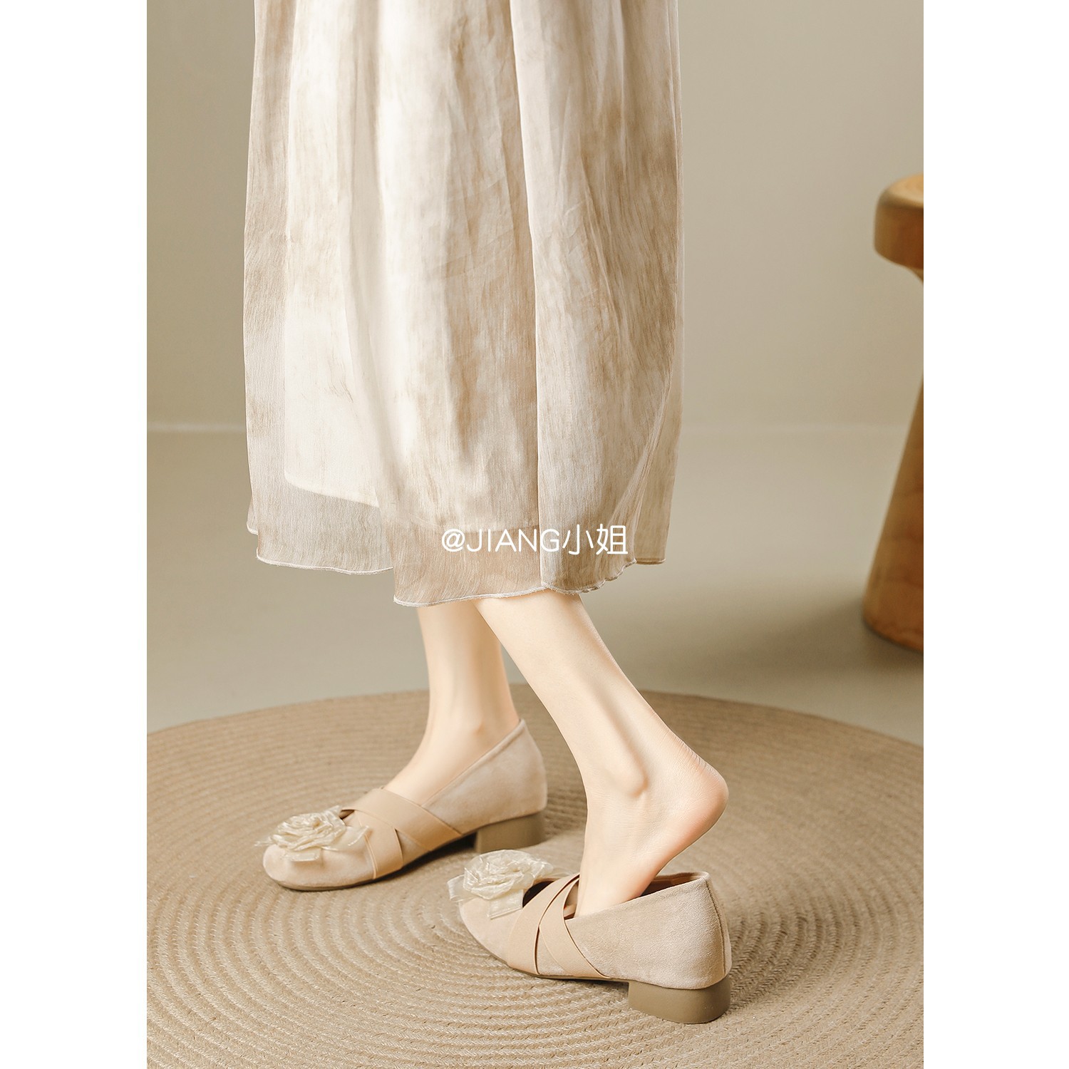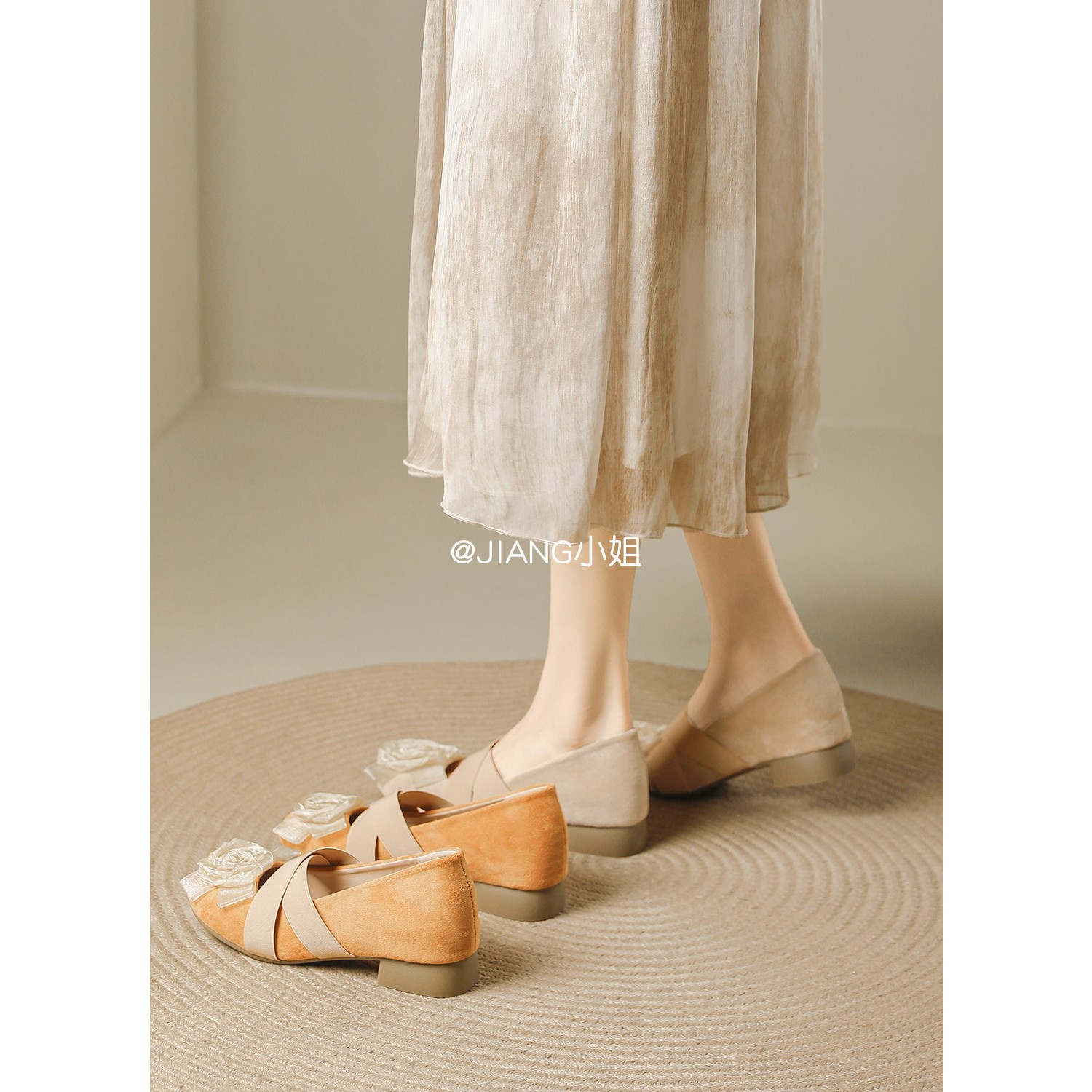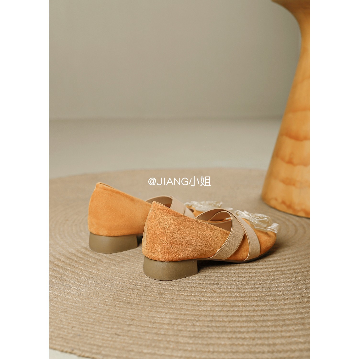 양가죽 버전 ~ 6cm 작은 높이 동백 크로스 벨트 봄과 가을 발레 신발 두꺼운 힐 메리 제인 신발 여성스토어 가기