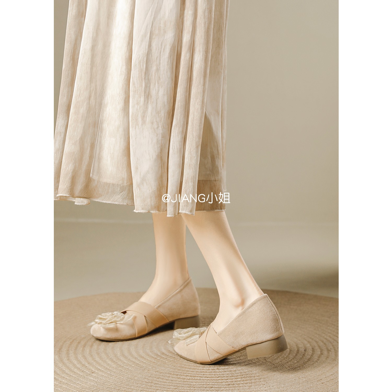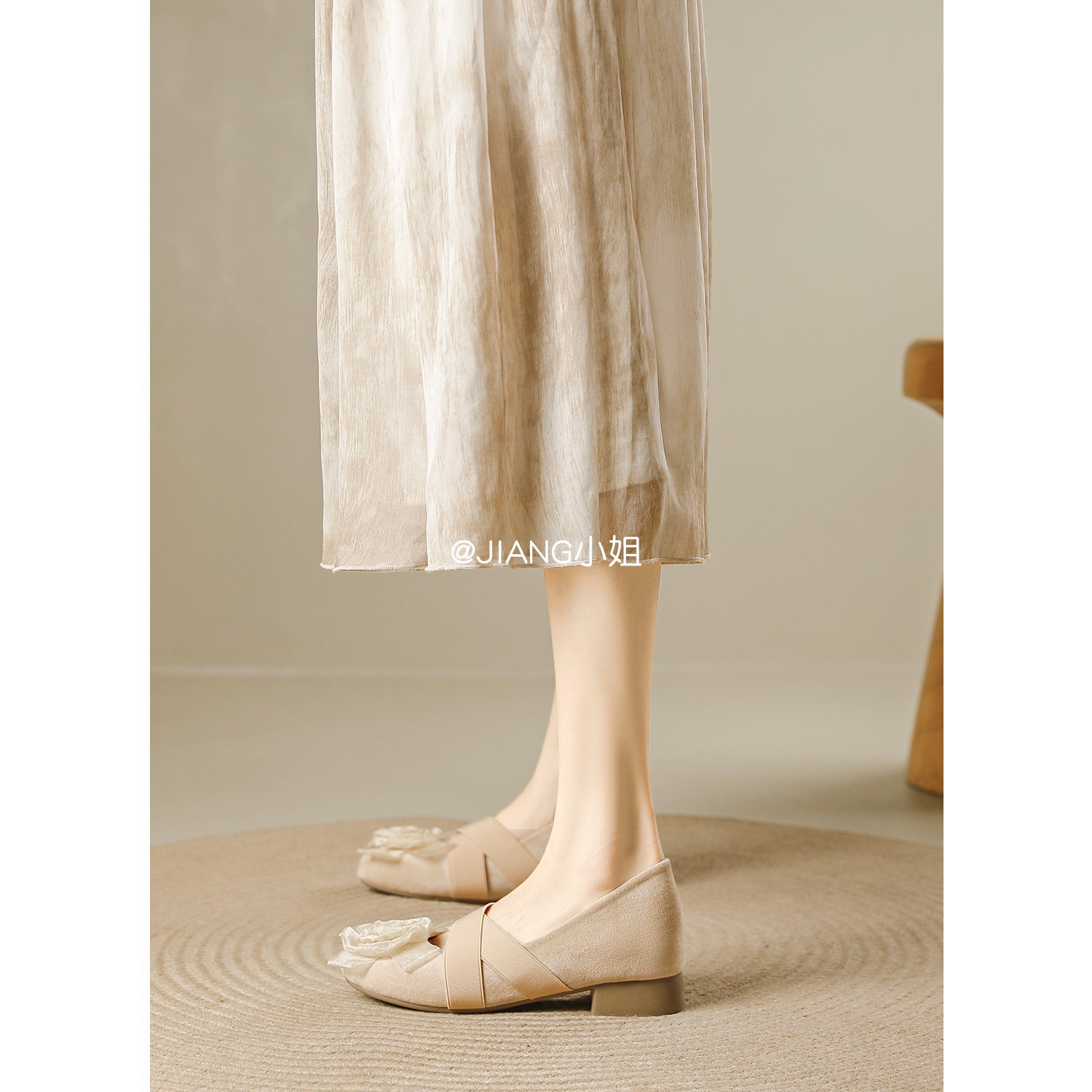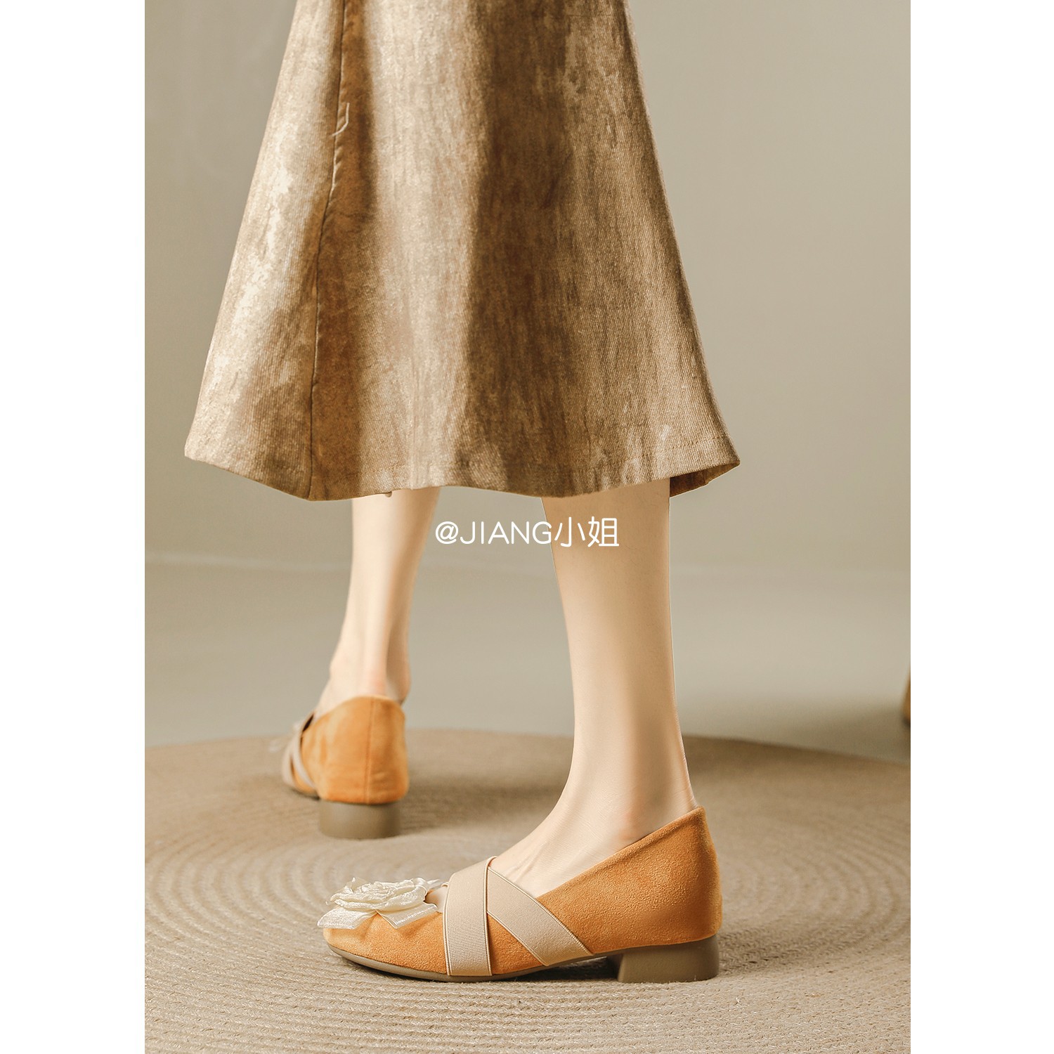 양가죽 버전 ~ 6cm 작은 높이 동백 크로스 벨트 봄과 가을 발레 신발 두꺼운 힐 메리 제인 신발 여성