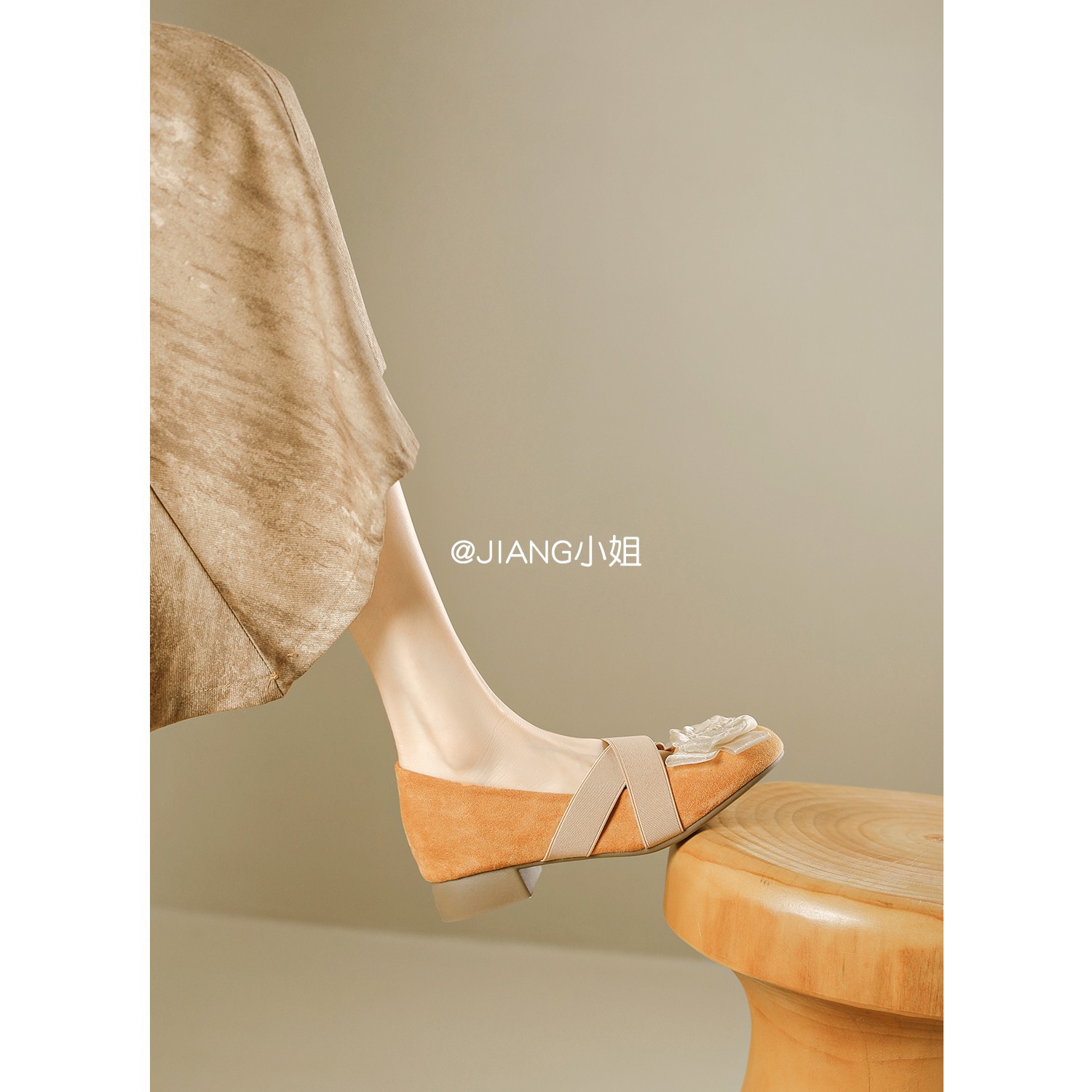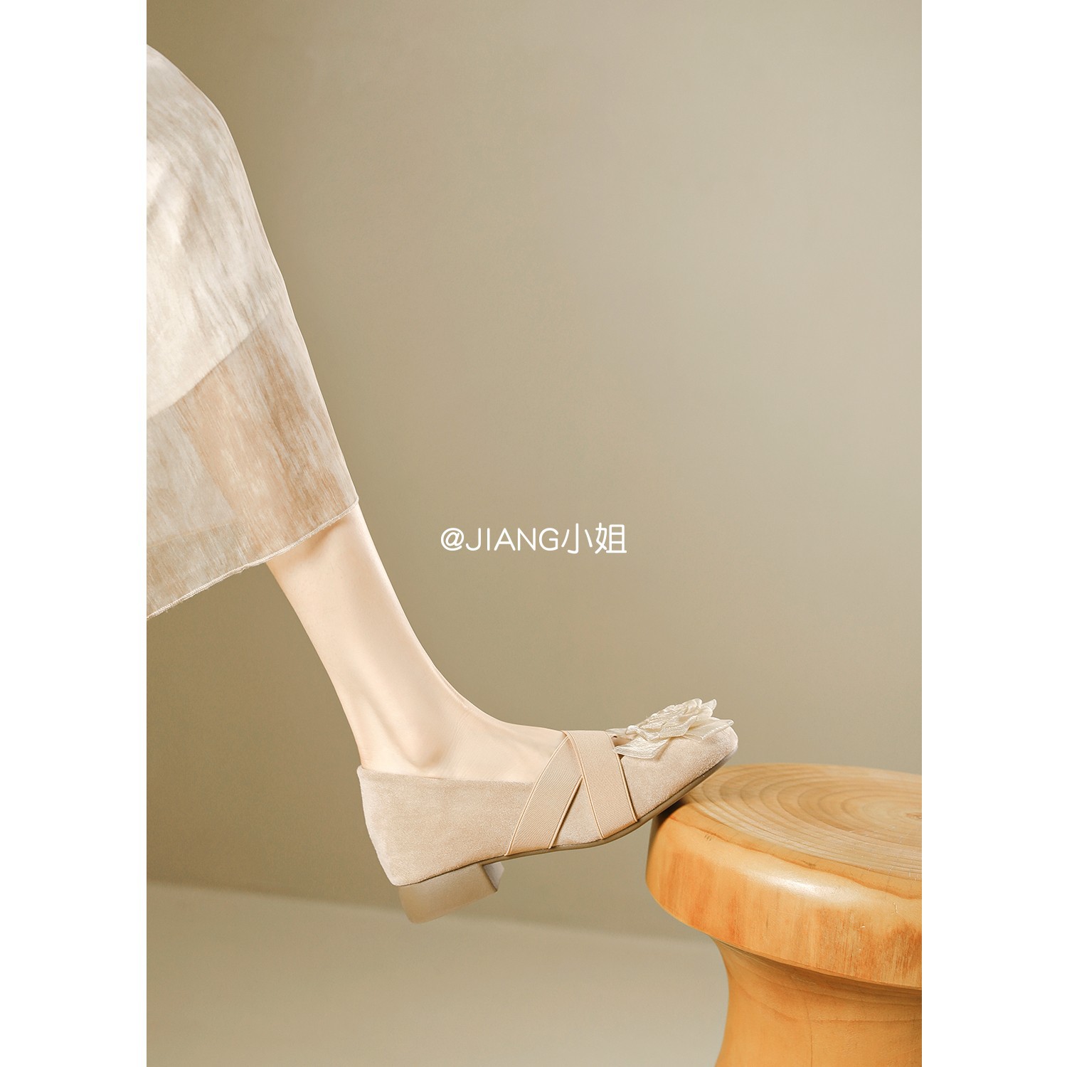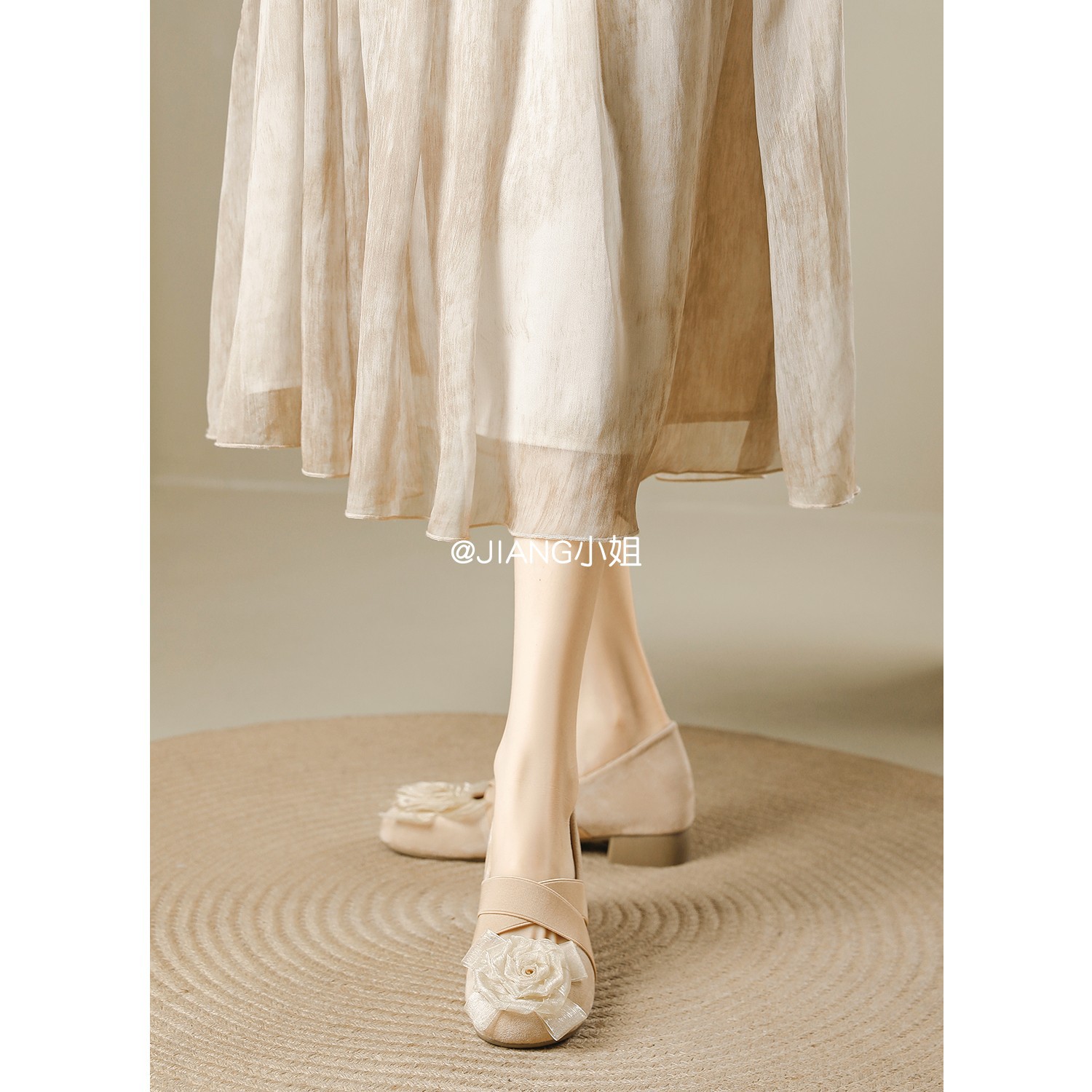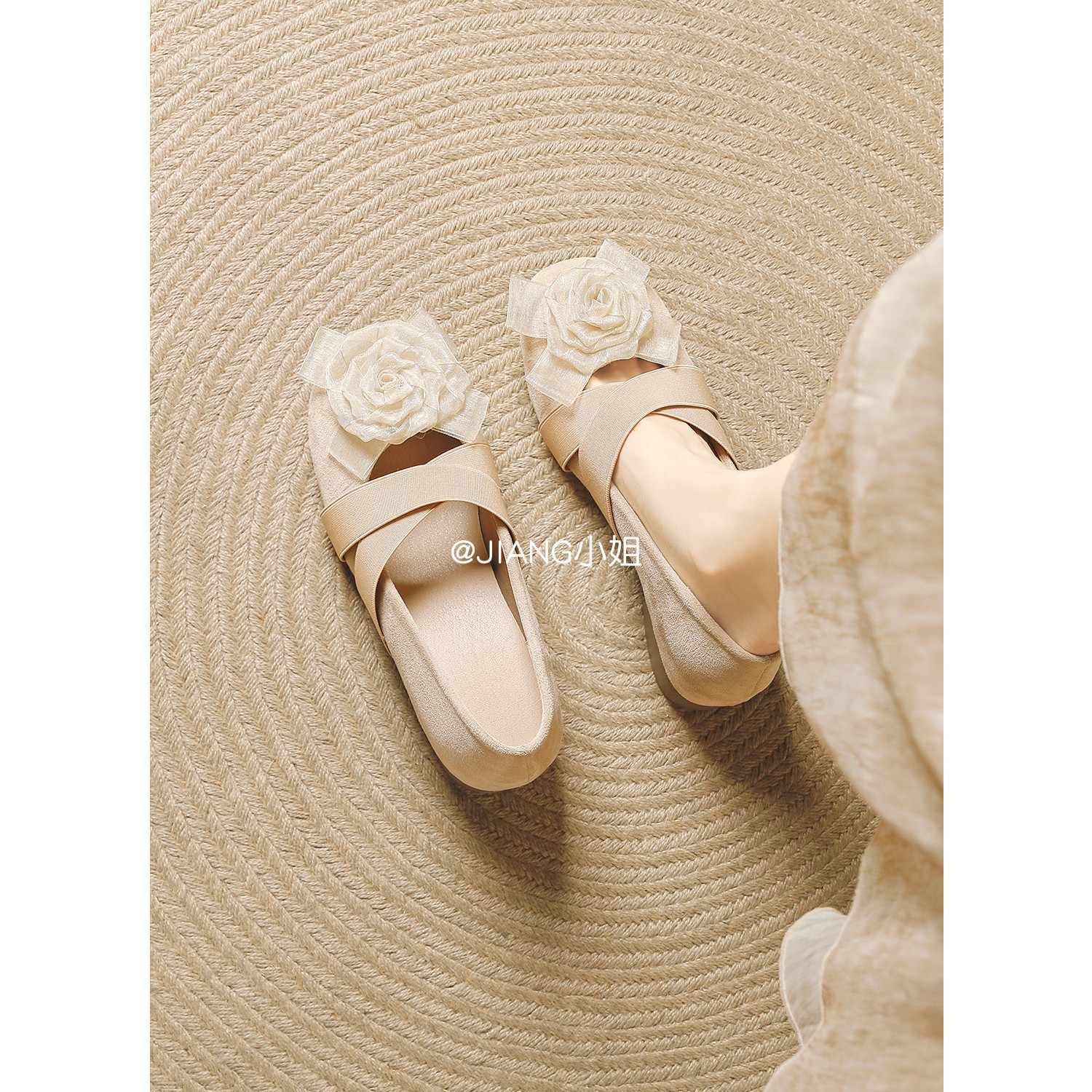 양가죽 버전 ~ 6cm 작은 높이 동백 크로스 벨트 봄과 가을 발레 신발 두꺼운 힐 메리 제인 신발 여성