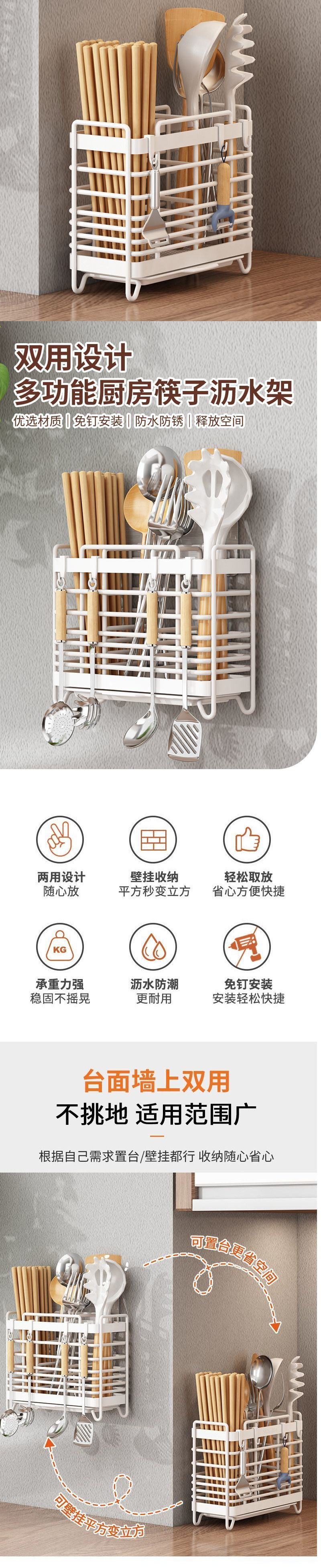 젓가락 보관함 주방 수납 선반 설치 불필요 일체형 벽걸이형 가정용 젓가락통 젓가락 케이지 식기 스푼 배수구