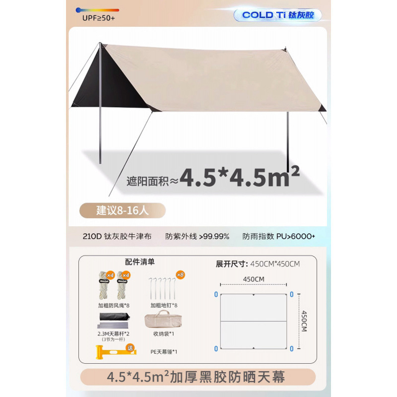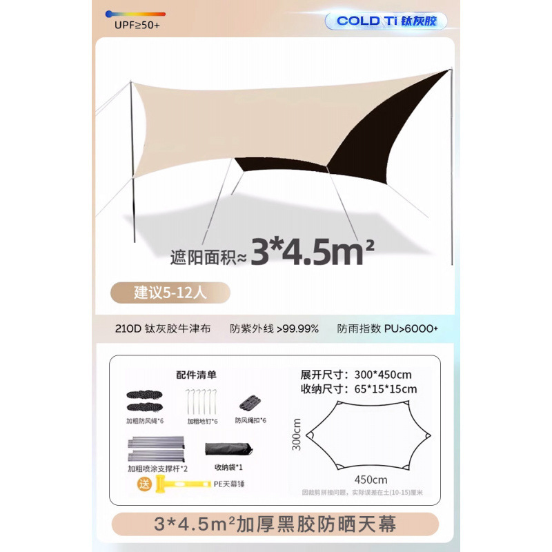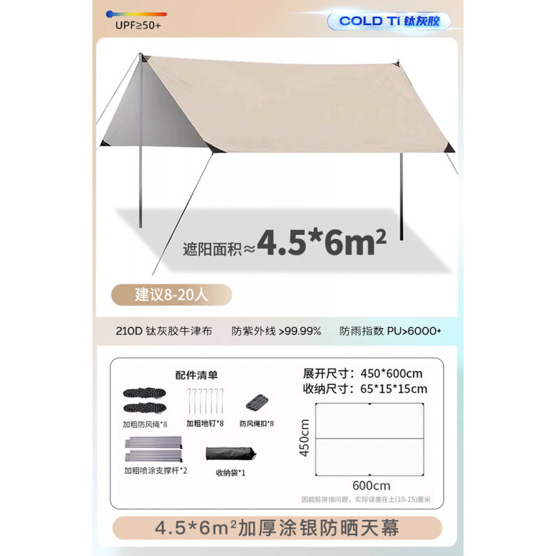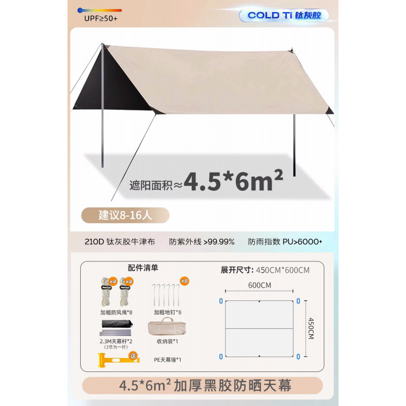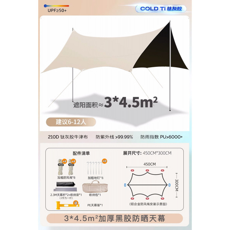 • Quicksand Gold [4.5*6m] 완전 암막 자외선 차단제 콜드 티타늄 실버 코팅 - 8~20인 권장