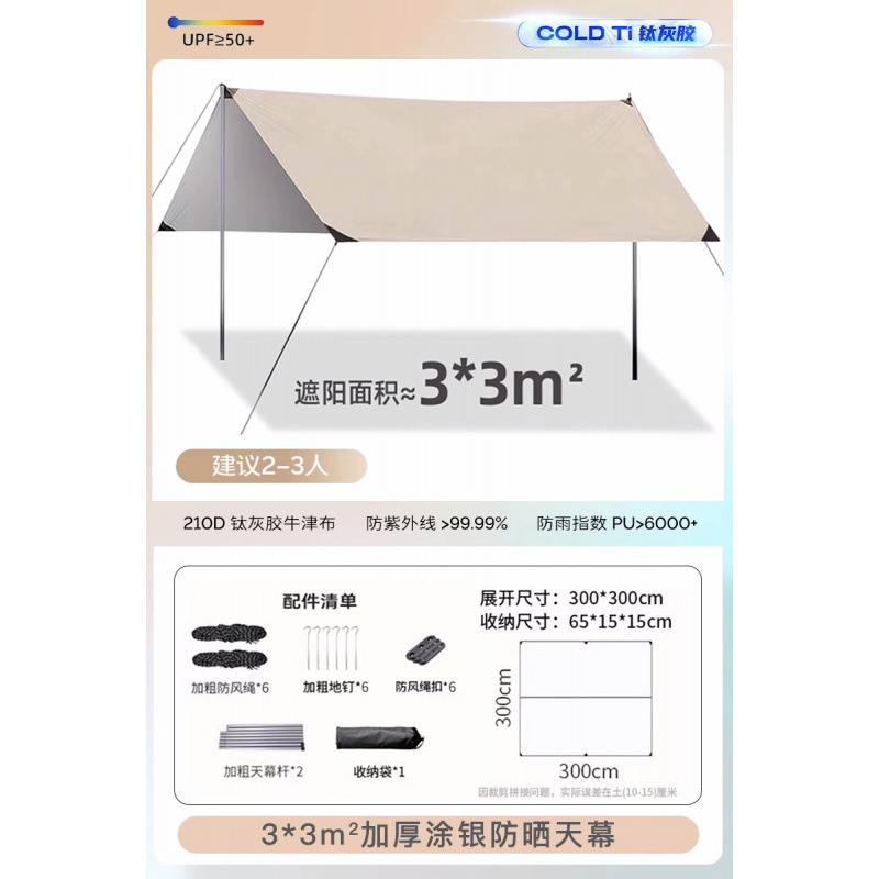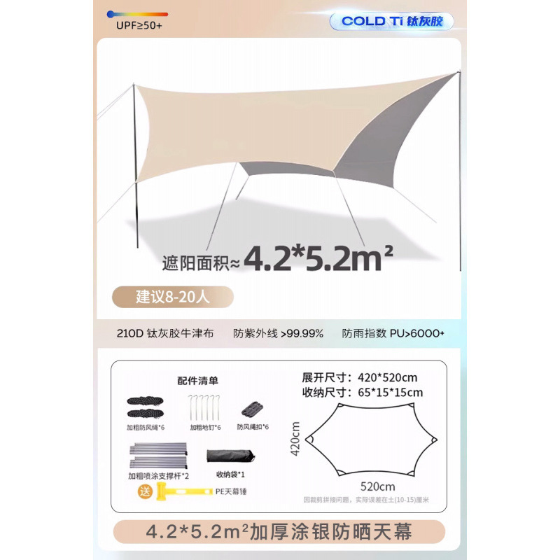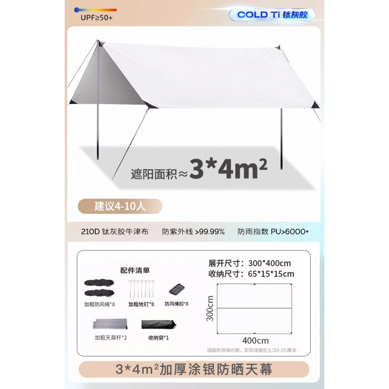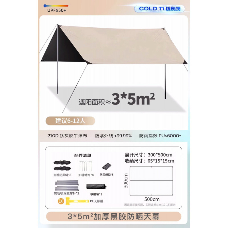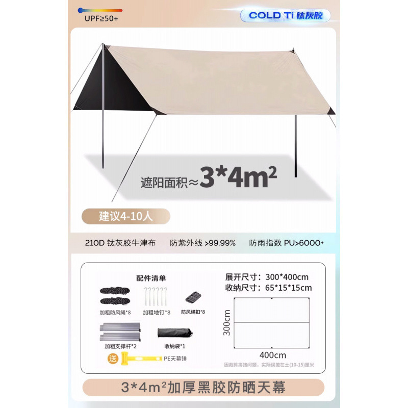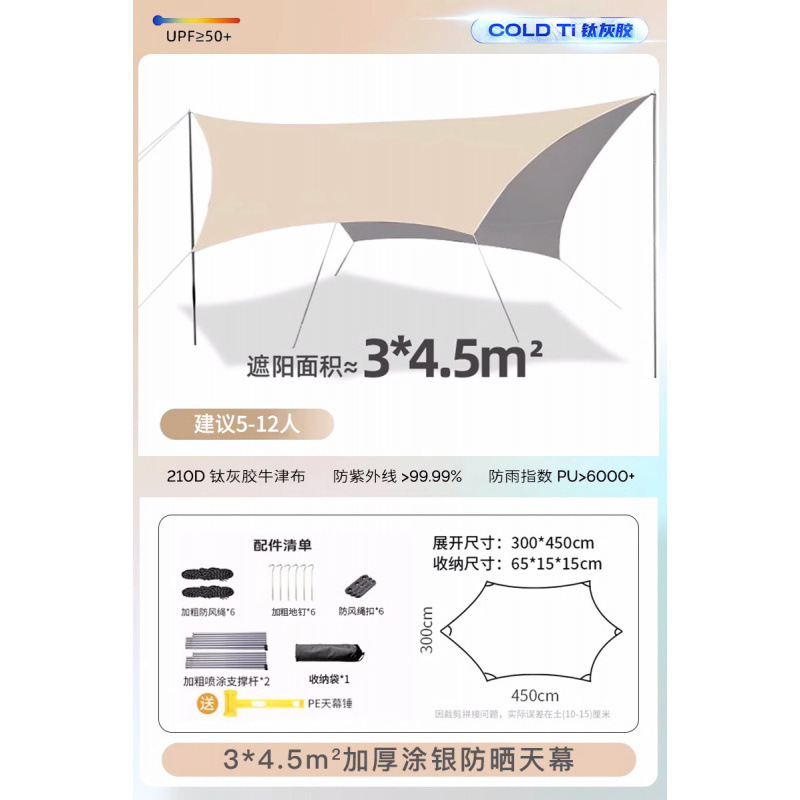 • Quicksand Gold [4.5*6m] 완전 암막 자외선 차단제 콜드 티타늄 실버 코팅 - 8~20인 권장