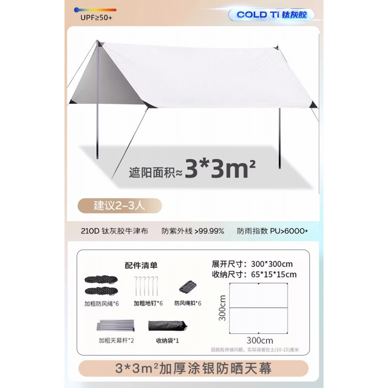 • 스노우 마운틴 화이트 [3*3m] 풀 블랙아웃 자외선 차단 콜드 티타늄 실버 코팅 4-7인