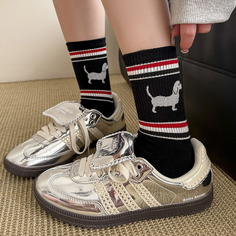그레이 양말 여성용 종아리 양말 트렌드 2025 봄 여름 신작 일본 줄무늬 만화 강아지 스택 스타킹스토어 가기