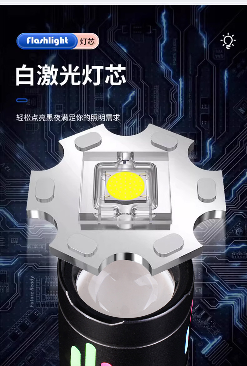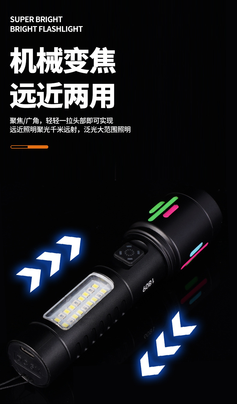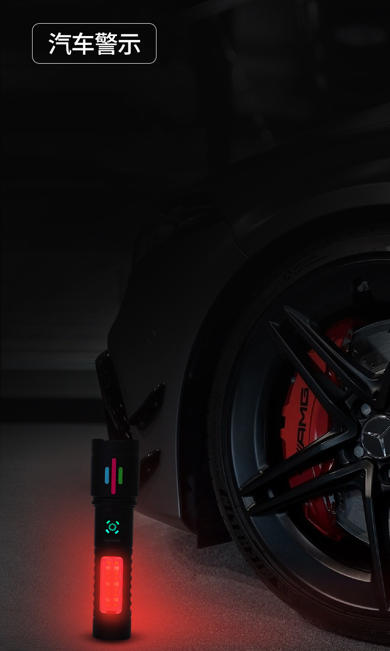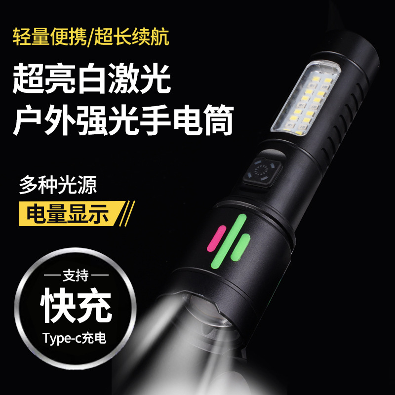 국경 간 다기능 손전등 COB 빨간색과 흰색 경고등 텔레스코픽 줌 흰색 레이저 LED 작업 조명 휴대용스토어 가기