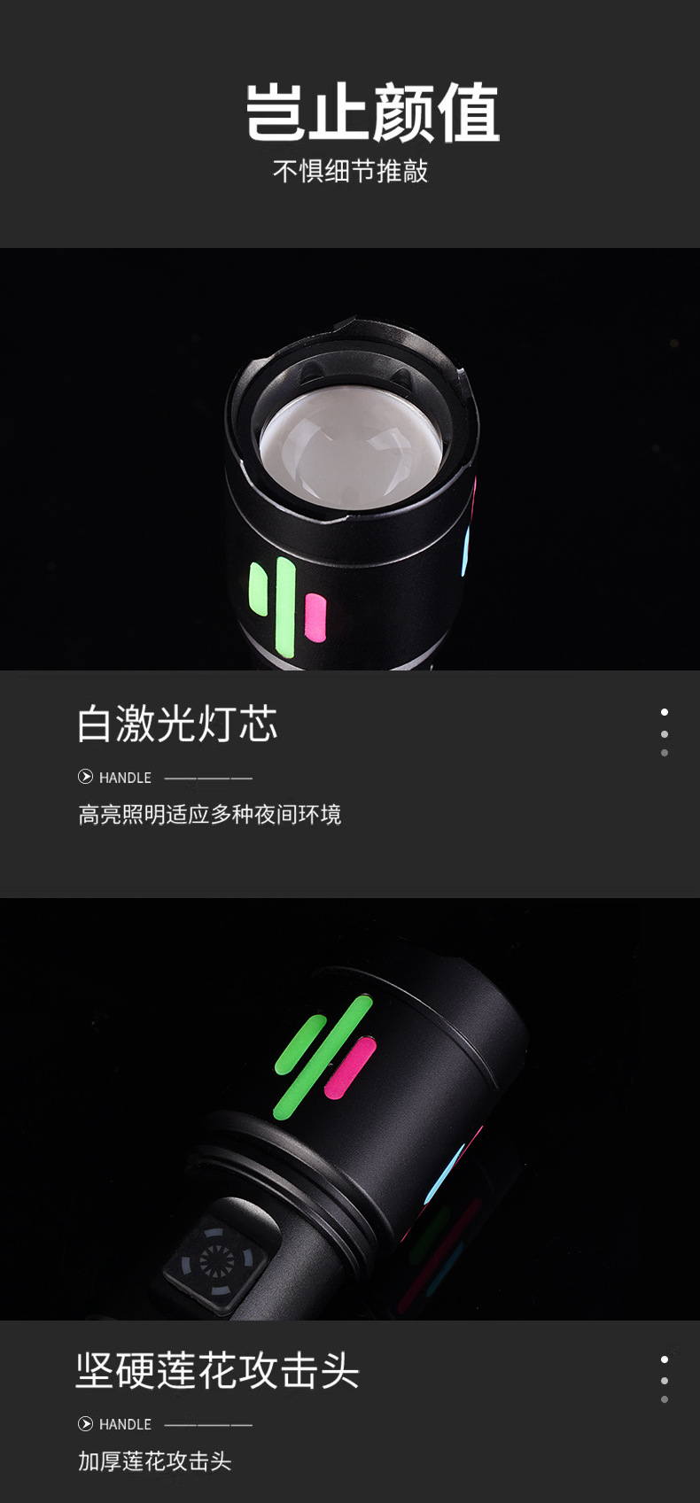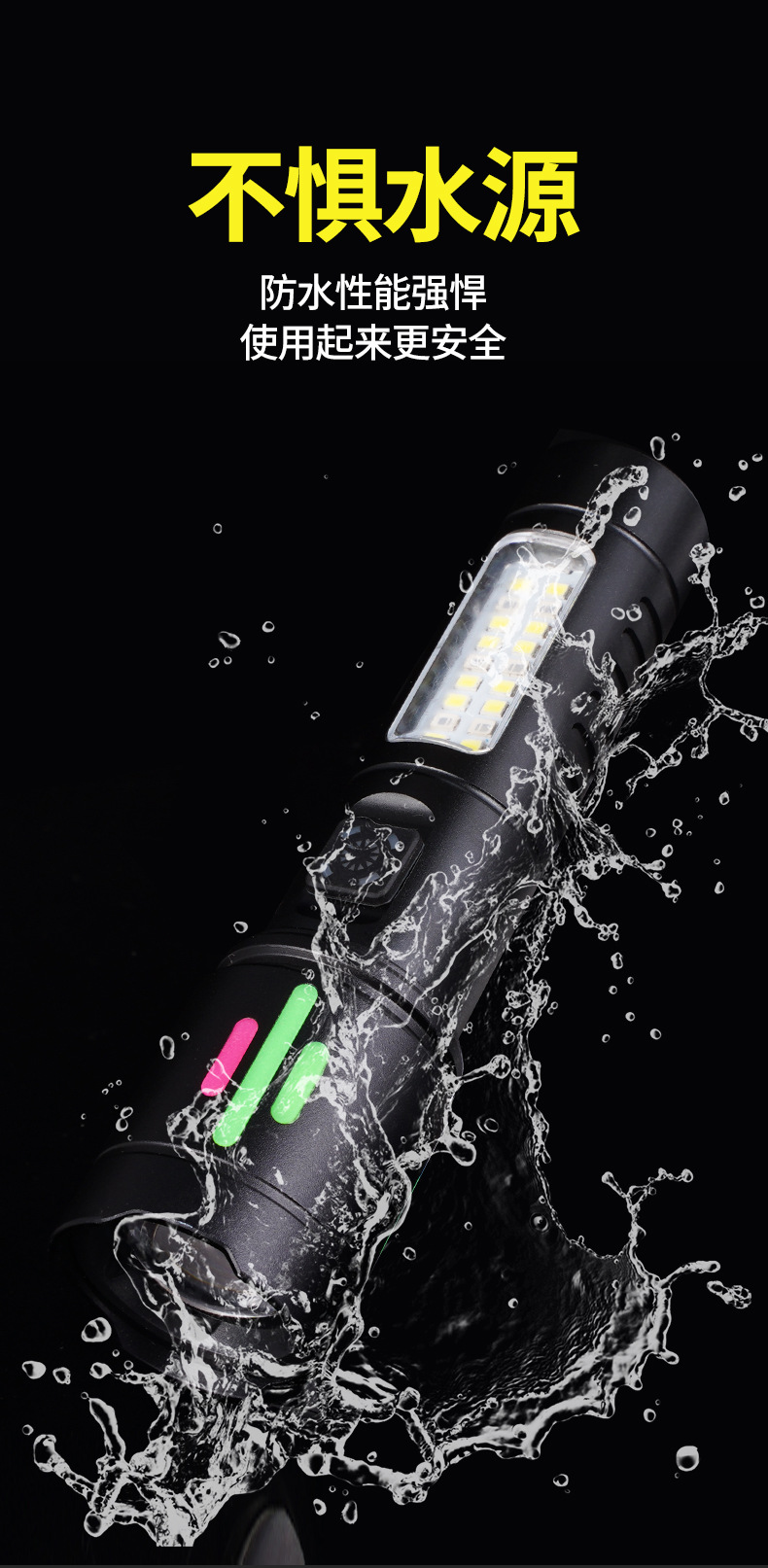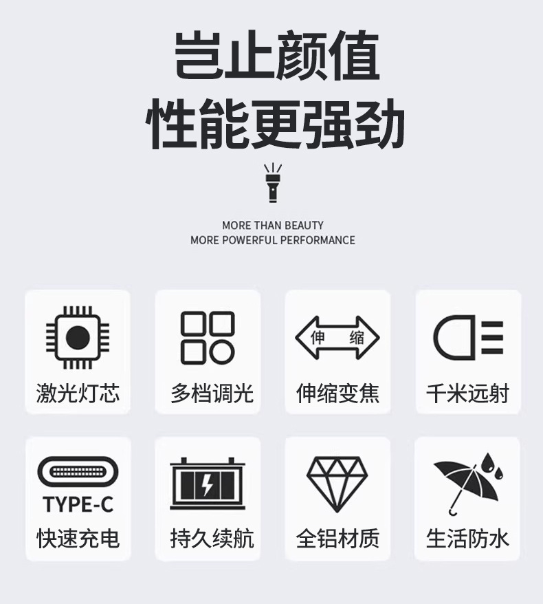 국경 간 다기능 손전등 COB 빨간색과 흰색 경고등 텔레스코픽 줌 흰색 레이저 LED 작업 조명 휴대용스토어 가기