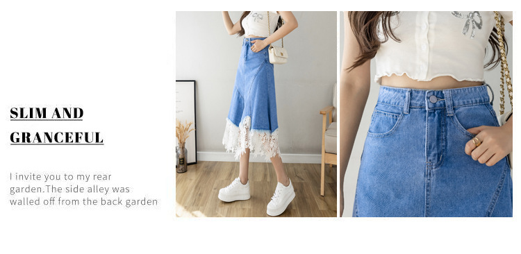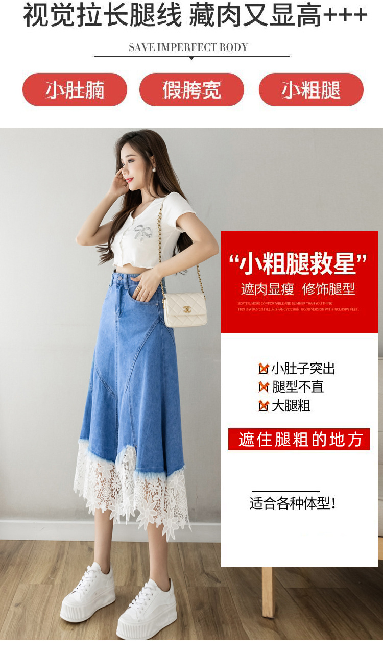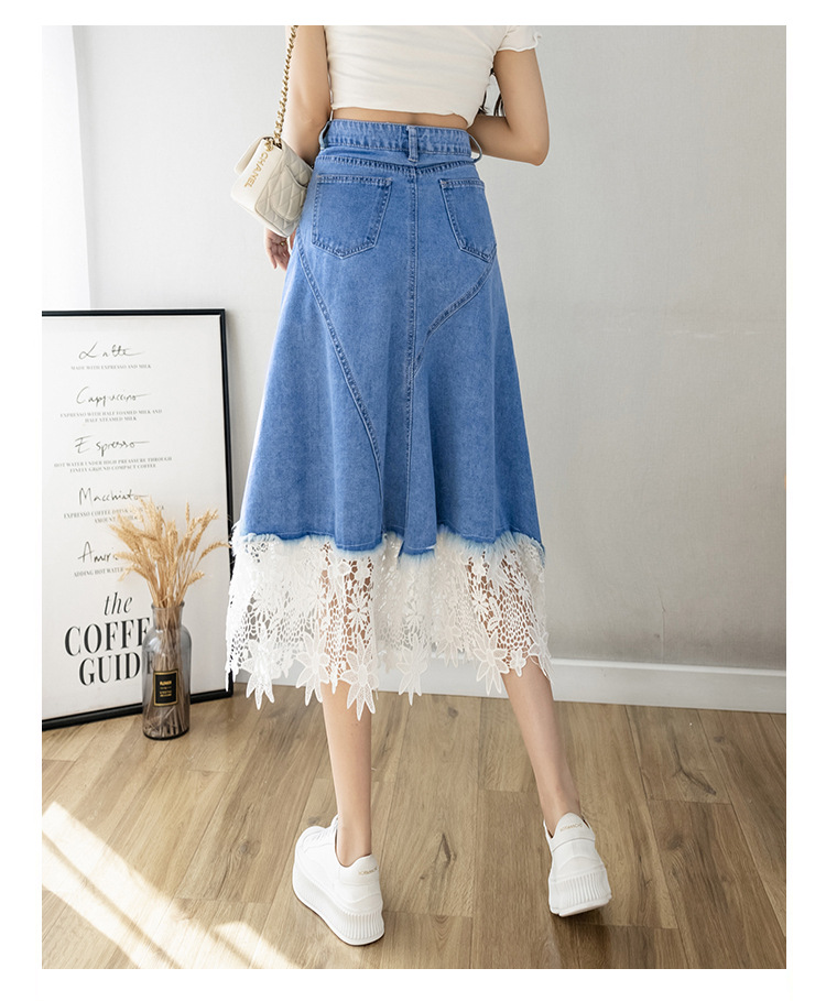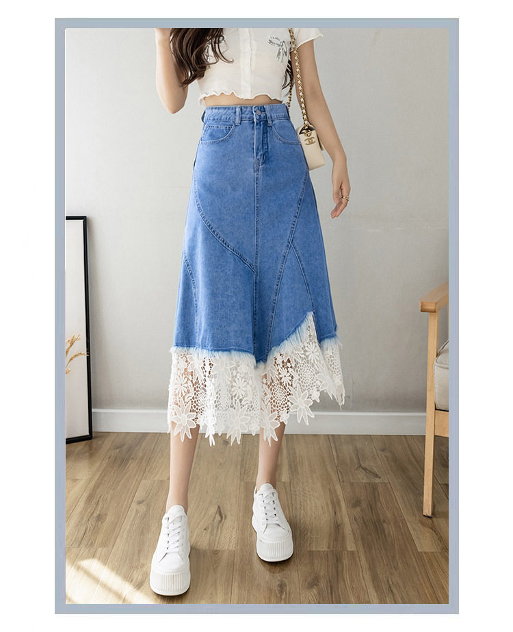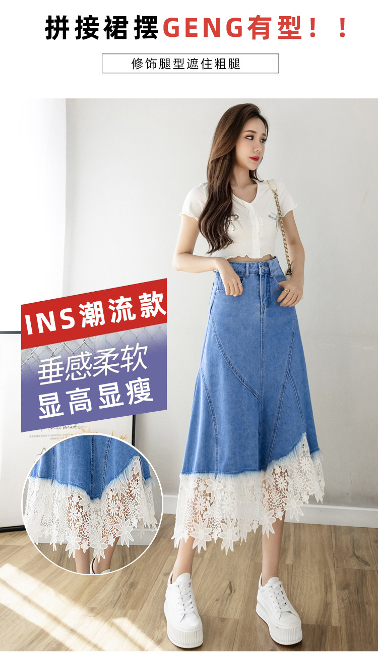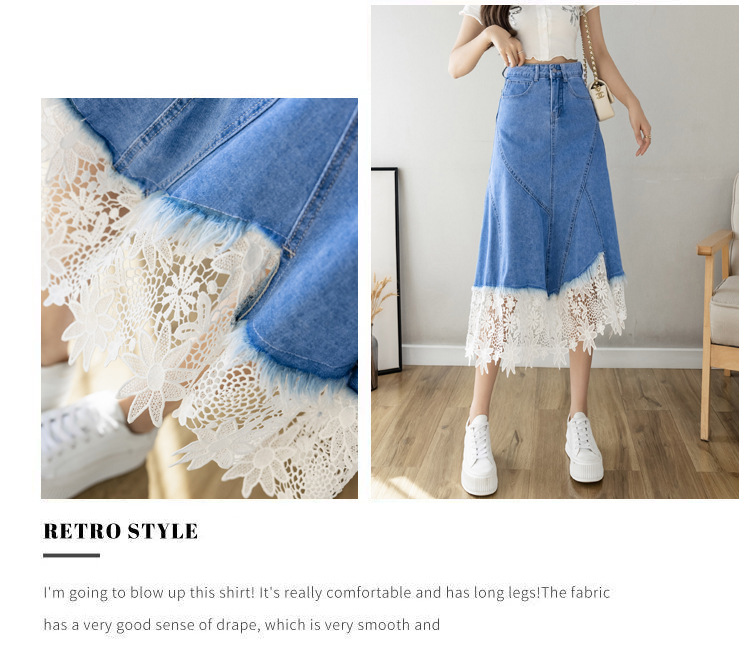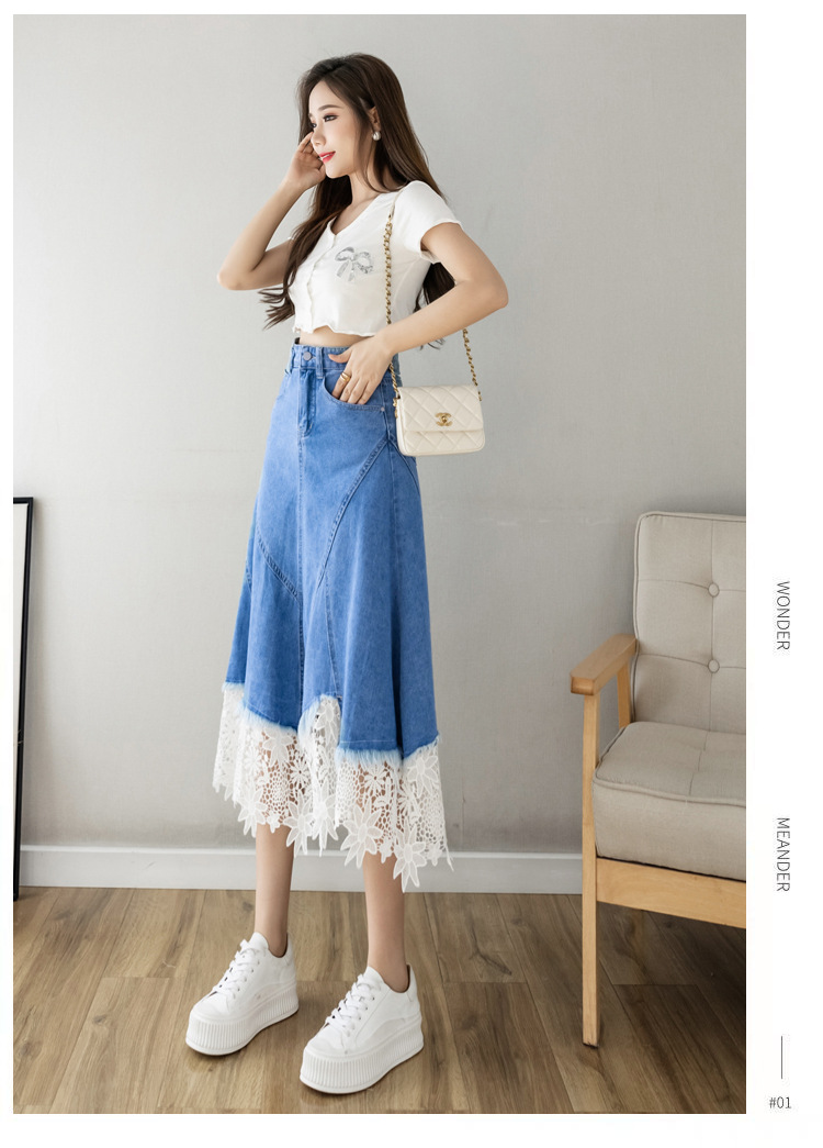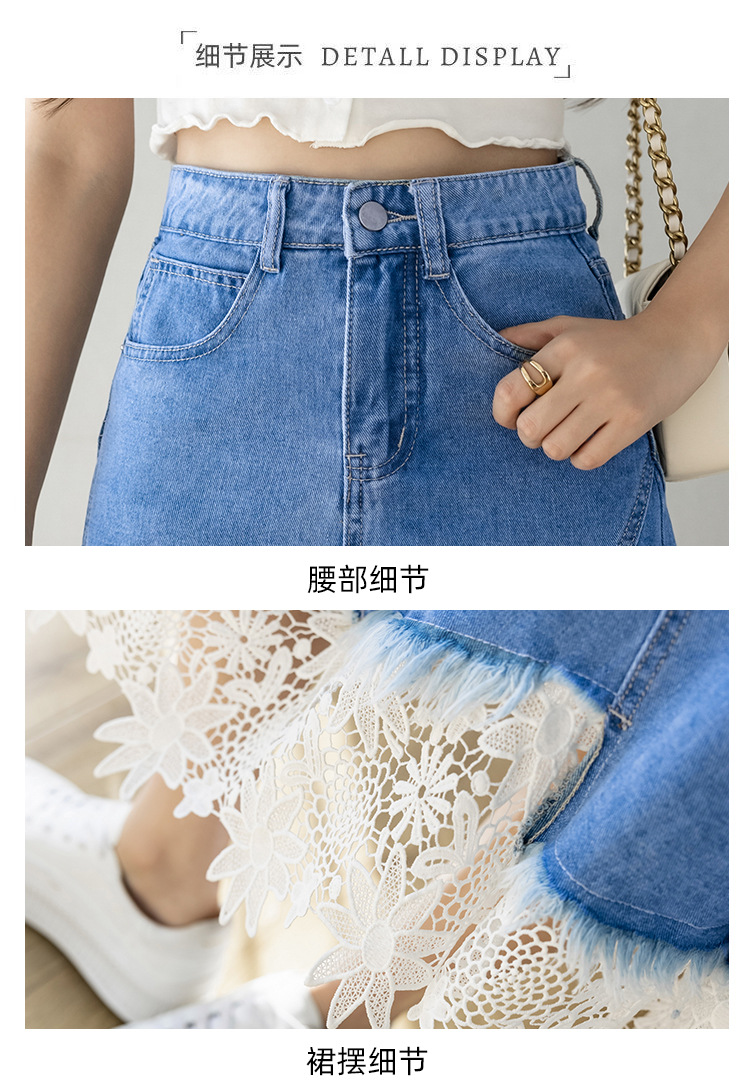리얼 샷 데님 스커트 여자 A 라인 하이 웨이스트 봄 2025 새로운 레이스 서양식 중장 우산 스커트스토어 가기