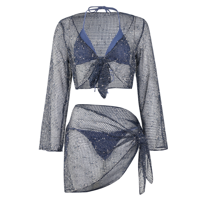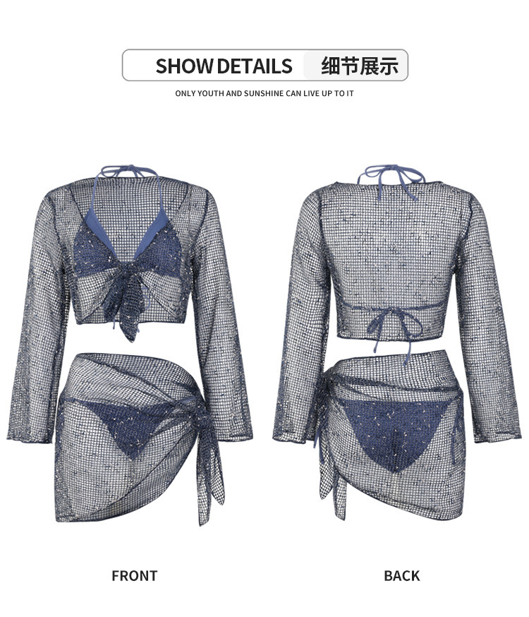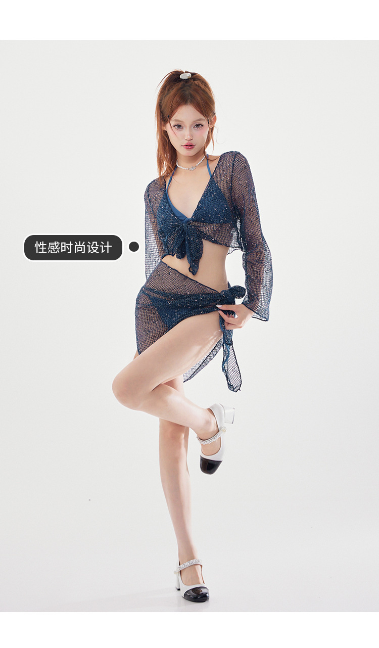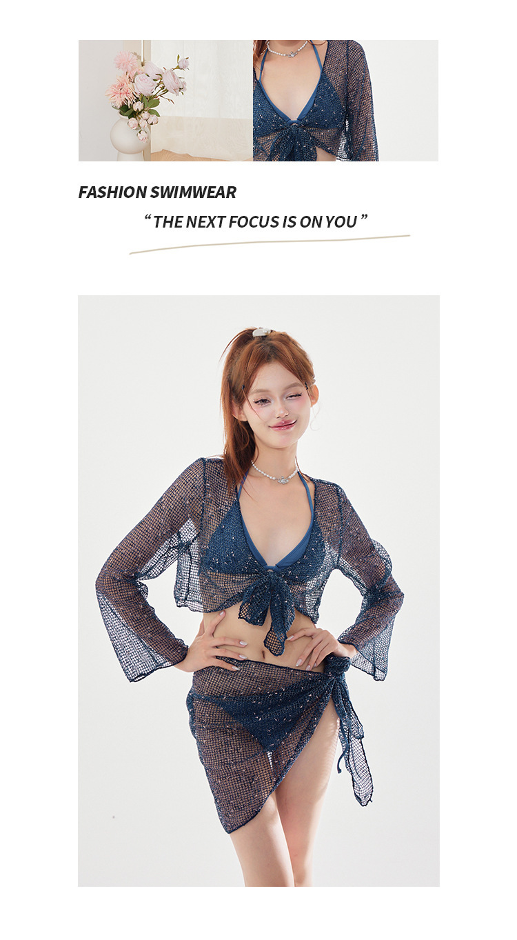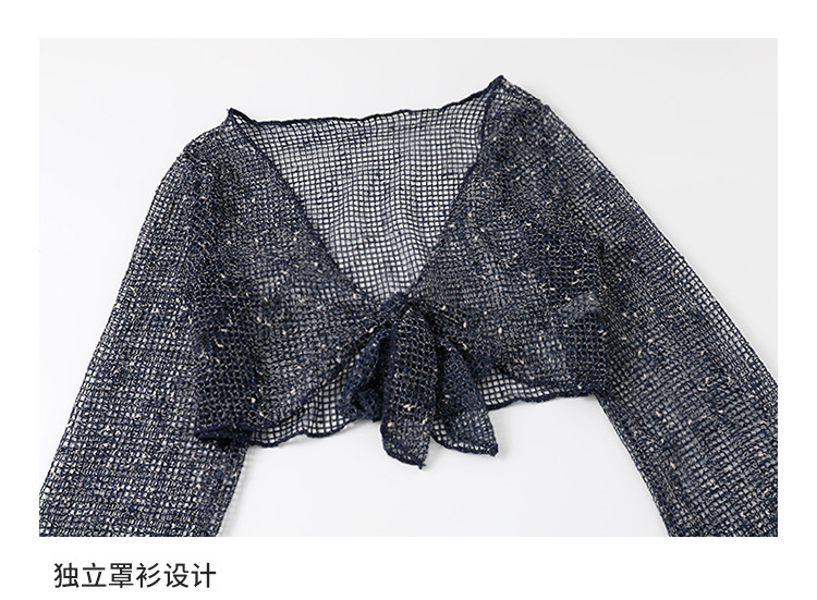 2024新款长袖针织网分体泳衣女ins气质性感纯欲风小胸度假比基尼