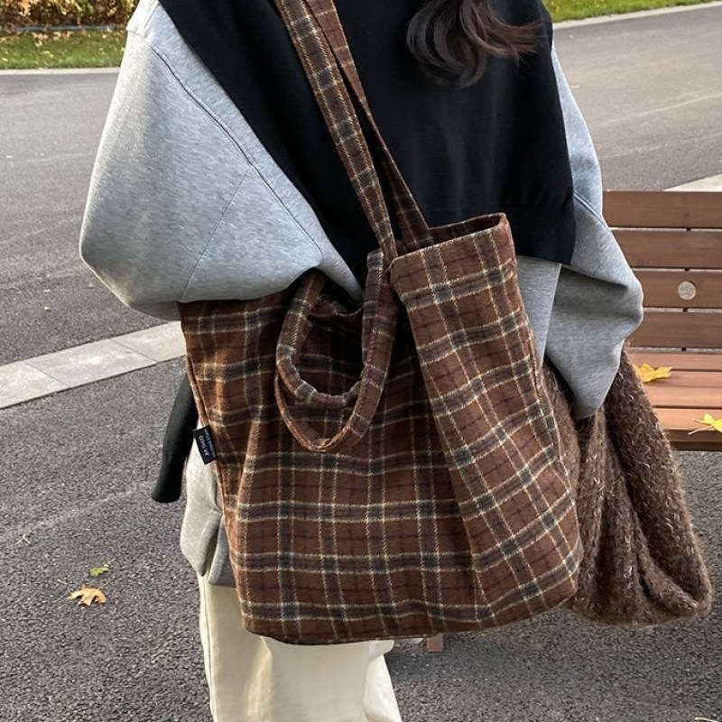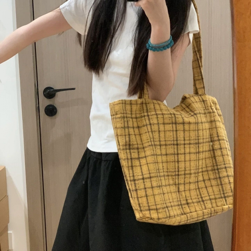 가을과 겨울 Nizi 가방 여성의 2025 새로운 유행 유행 올 매치 체크 대형 용량 복고풍 휴대용 어깨 가방스토어 가기