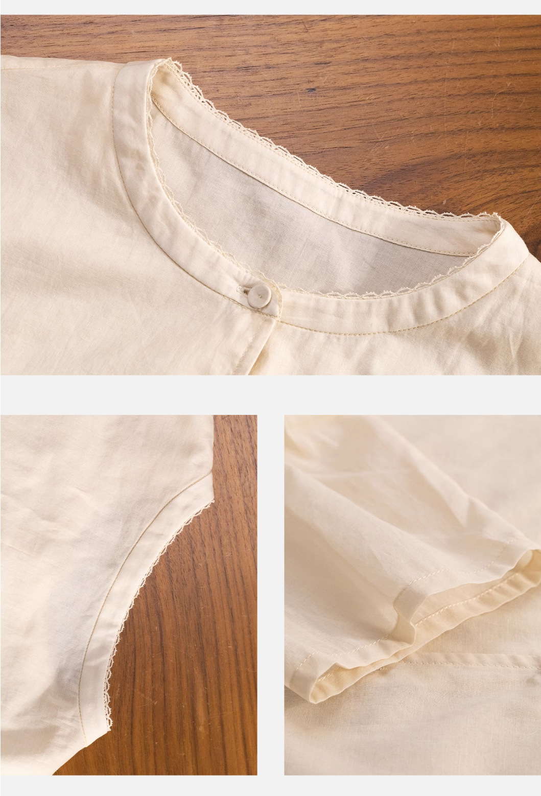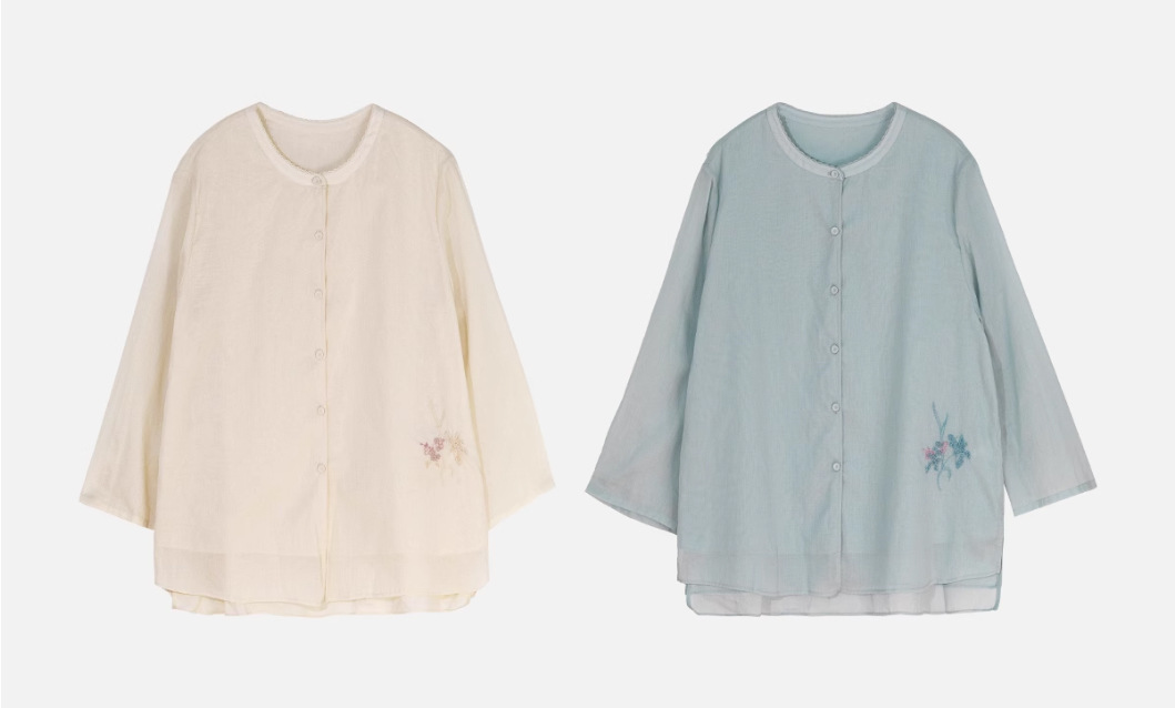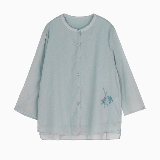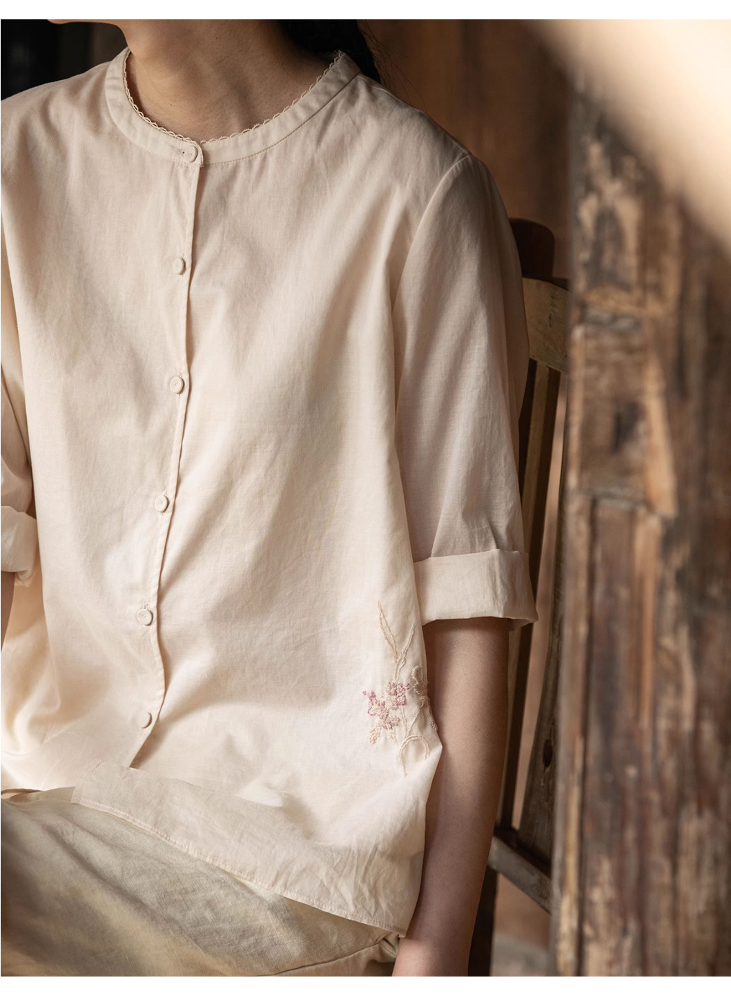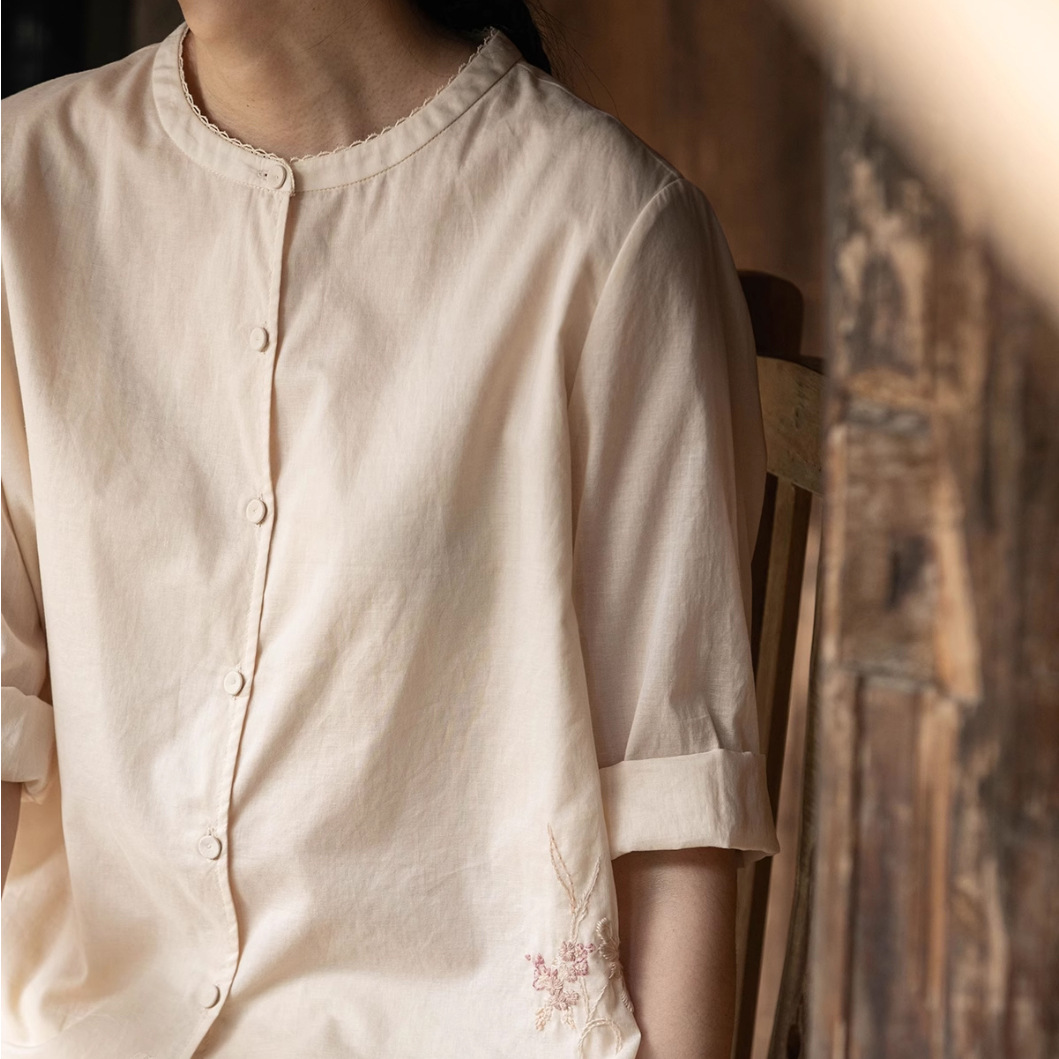 2025 여름 새로운 라운드 넥 자수 100 면 더블 레이어 셔츠 가벼운 다재다능한 예술적 셔츠스토어 가기