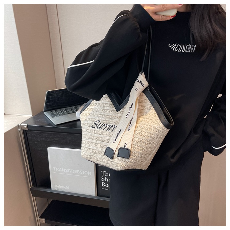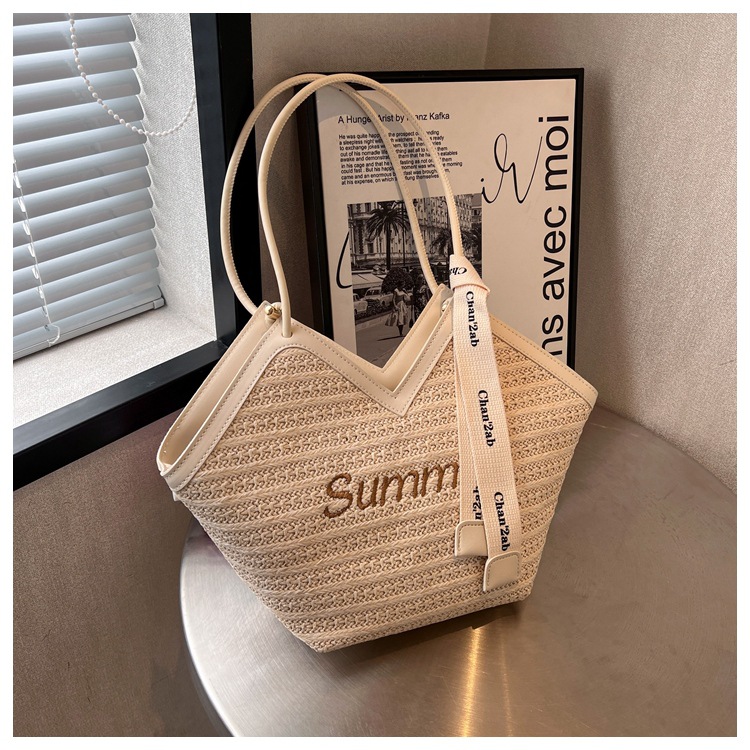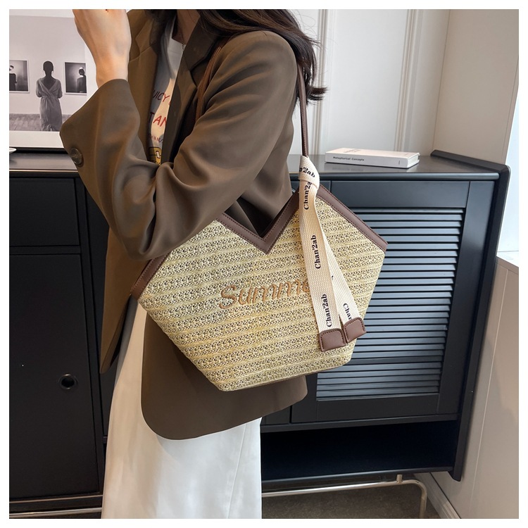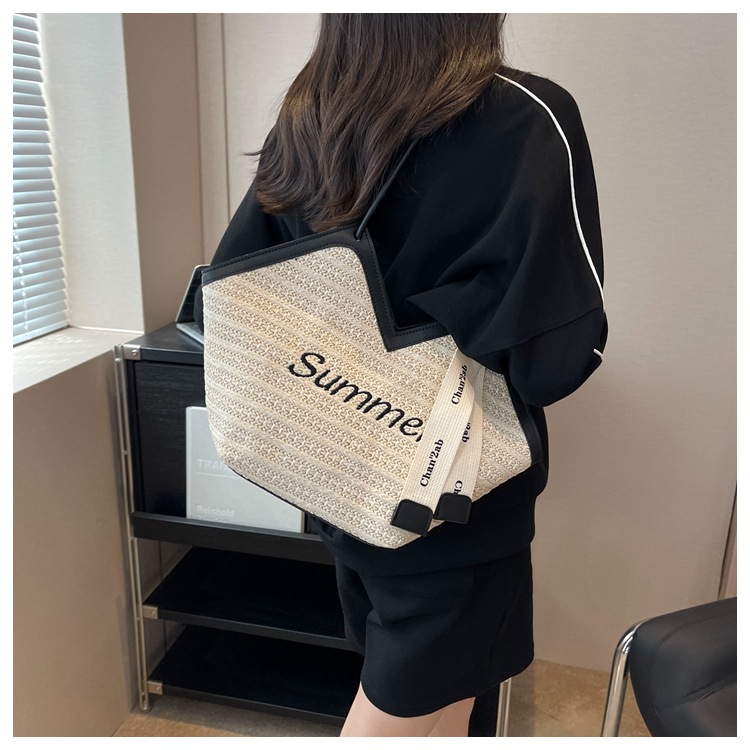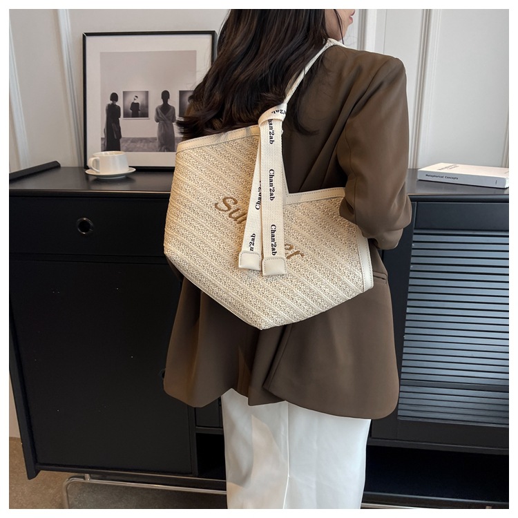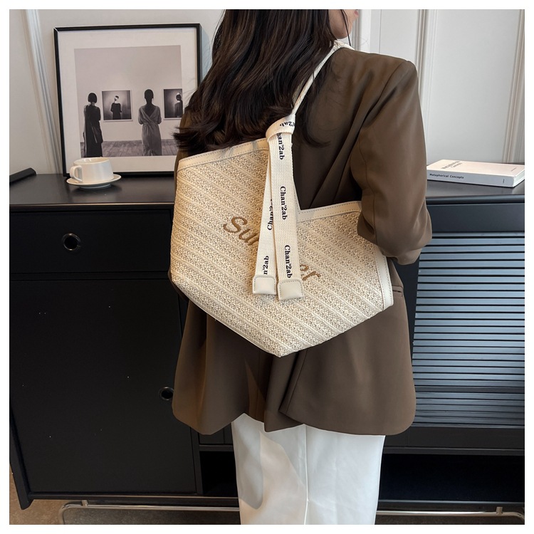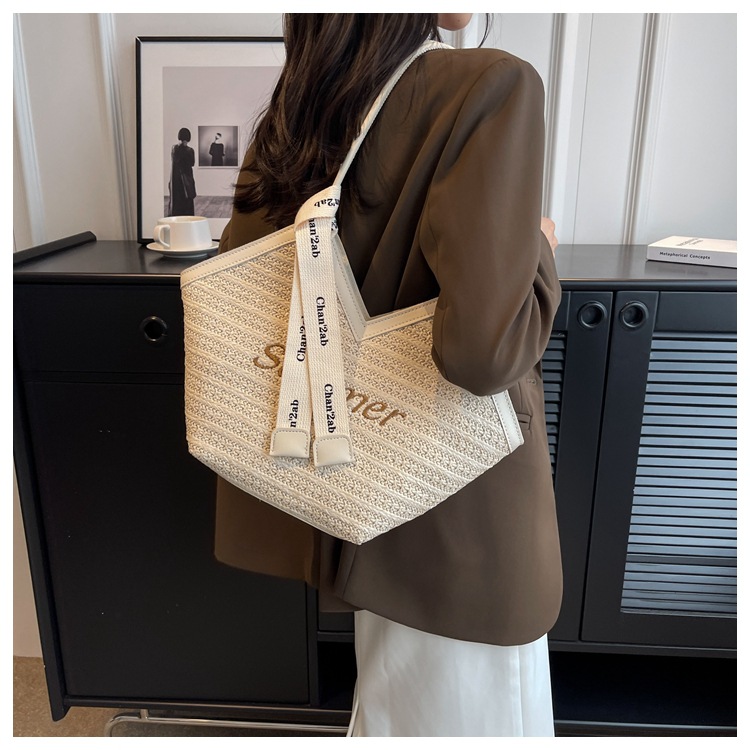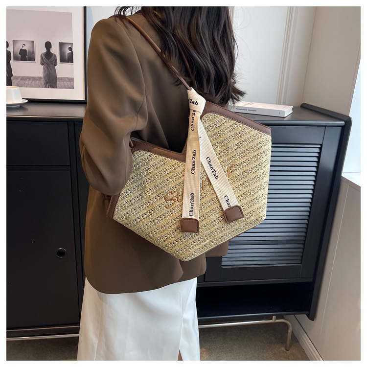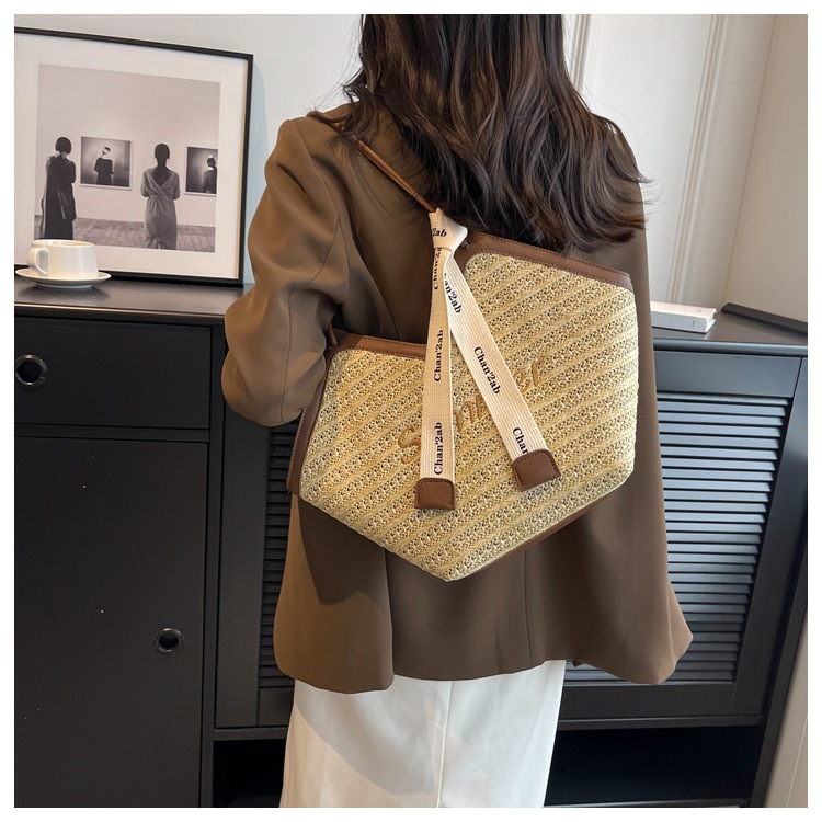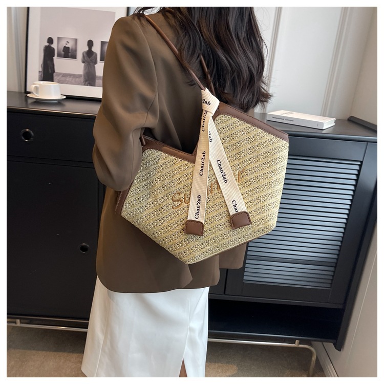 여성을위한 국경 간 대외 무역 도매 가방 2025 새로운 밀짚 가방 틈새 디자인 어깨 가방 다용도 짠 토트 백스토어 가기