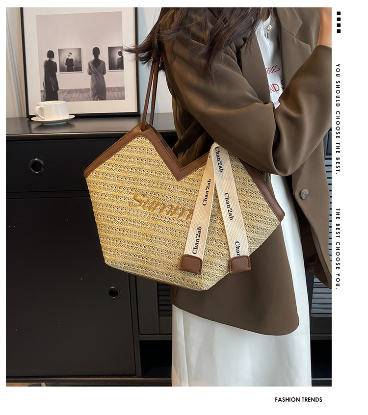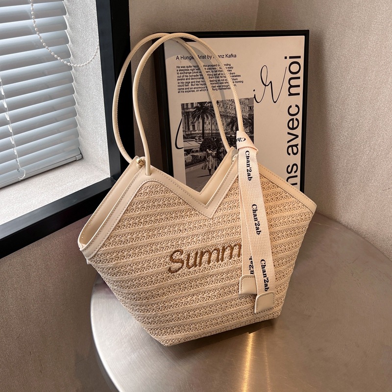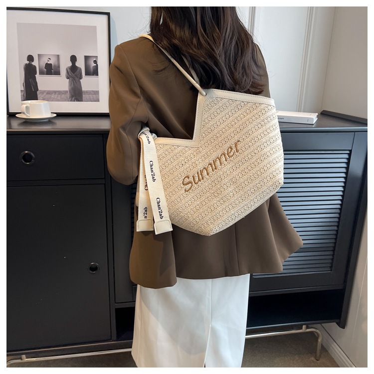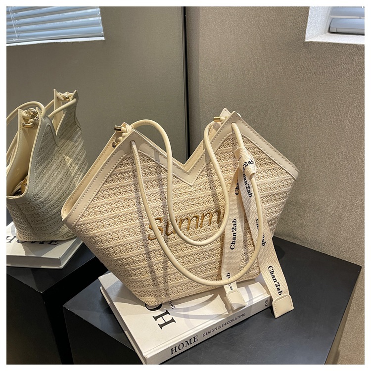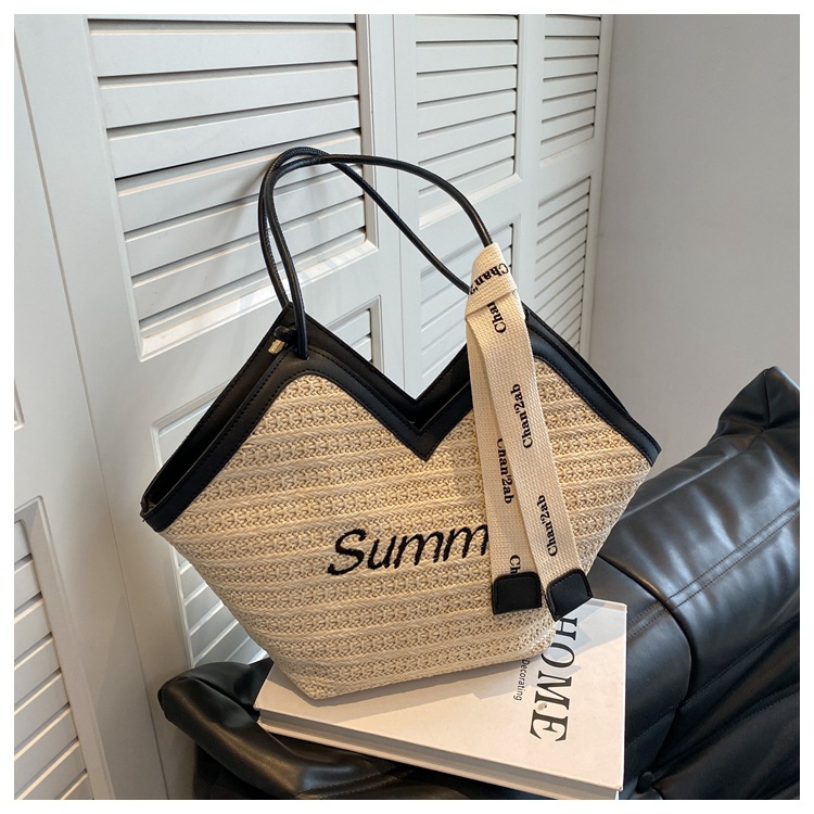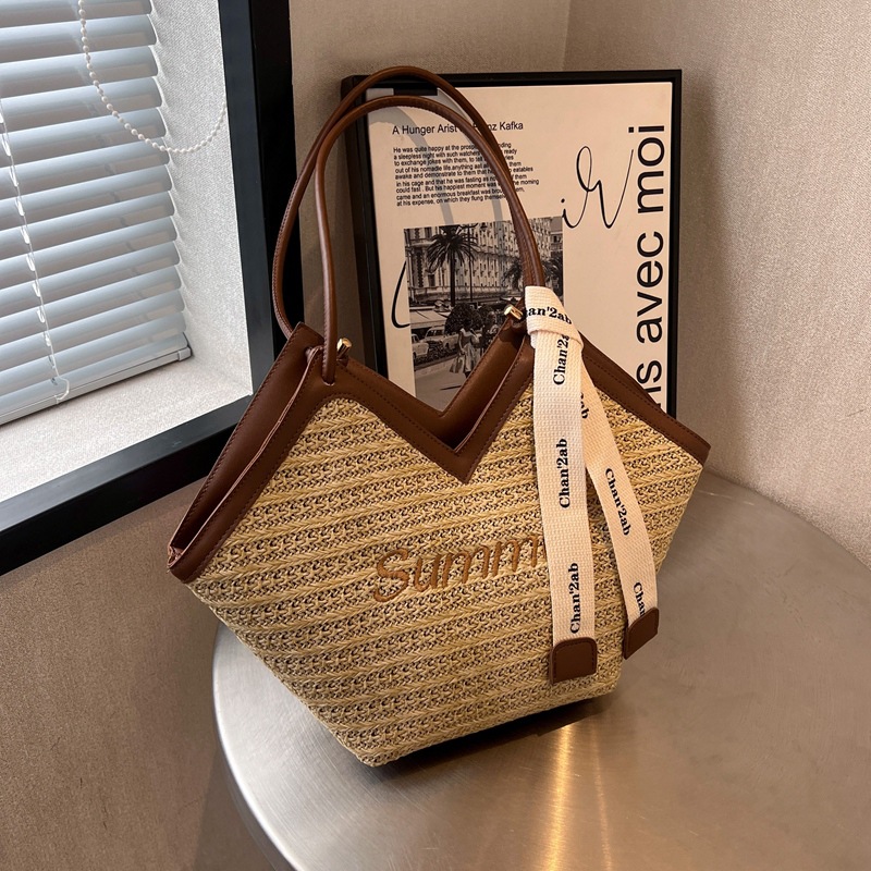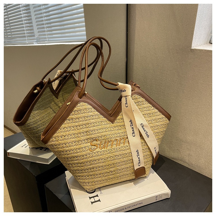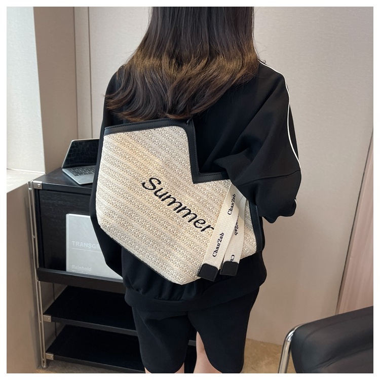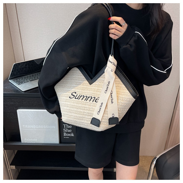 여성을위한 국경 간 대외 무역 도매 가방 2025 새로운 밀짚 가방 틈새 디자인 어깨 가방 다용도 짠 토트 백스토어 가기