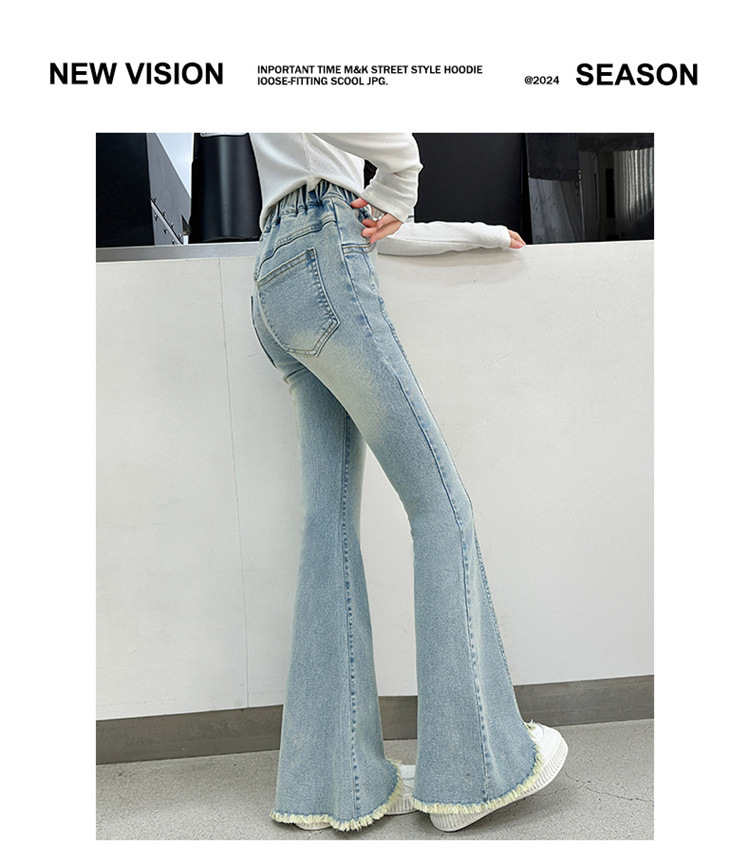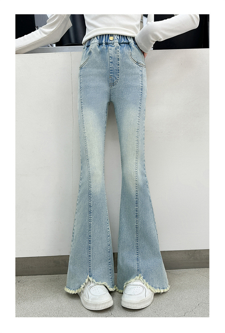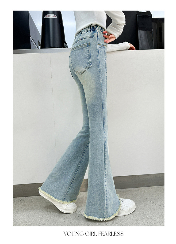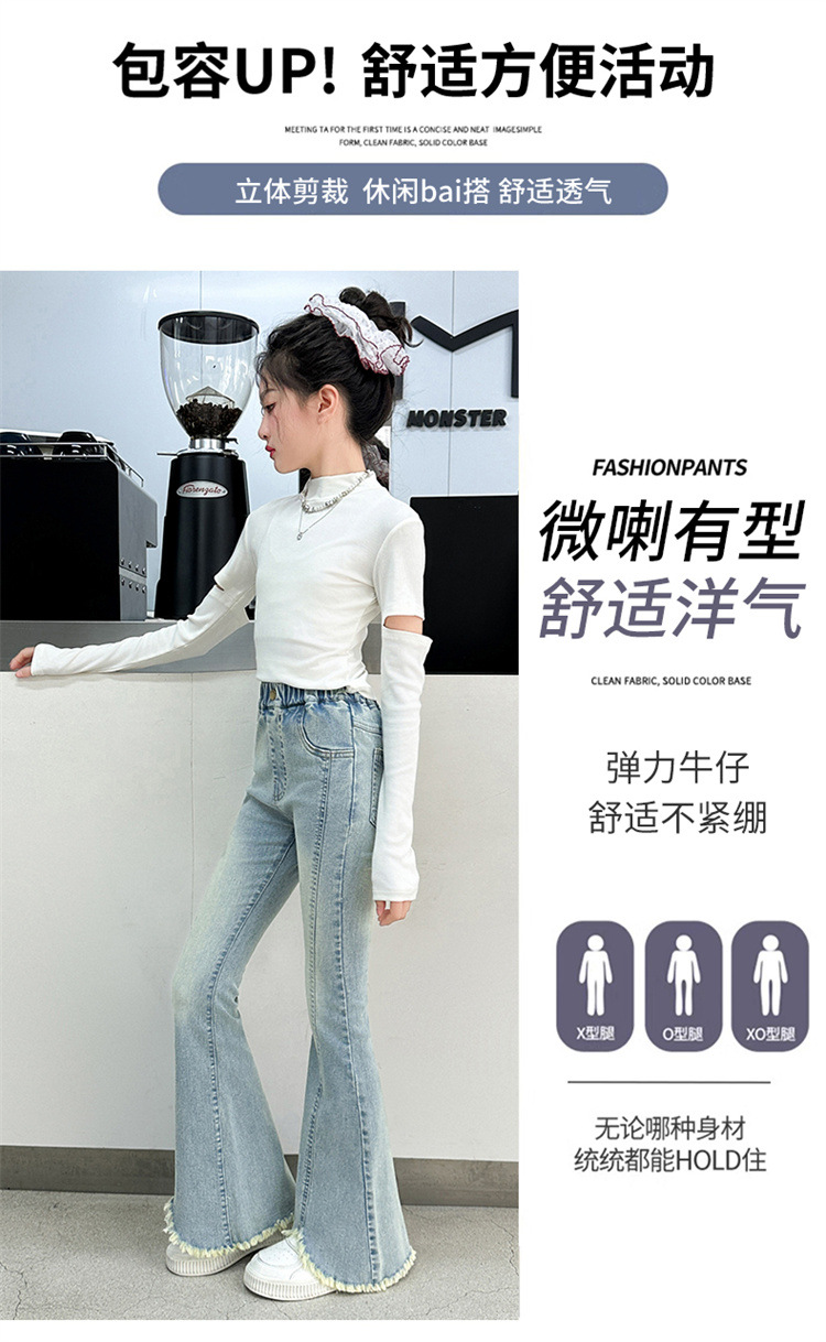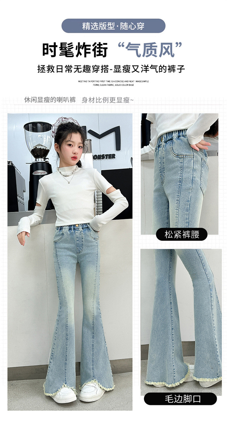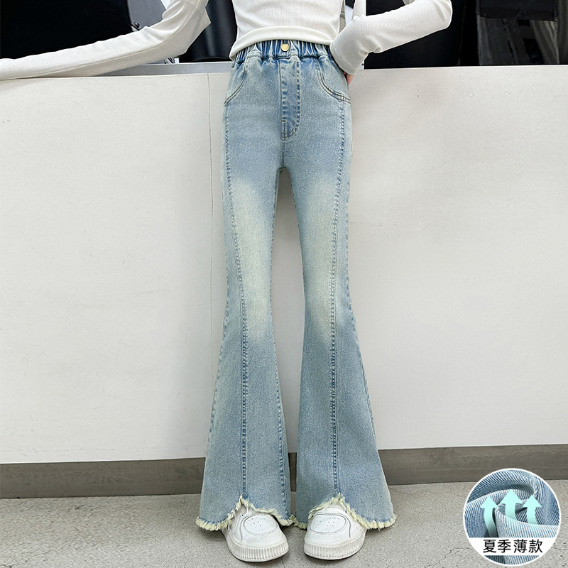 여아 청바지 여름 착용 2025 새로운 스타일 바지 서양식 아동용 중대형 어린이 봄 스타일 슬림 스트레치 플레어 바지스토어 가기