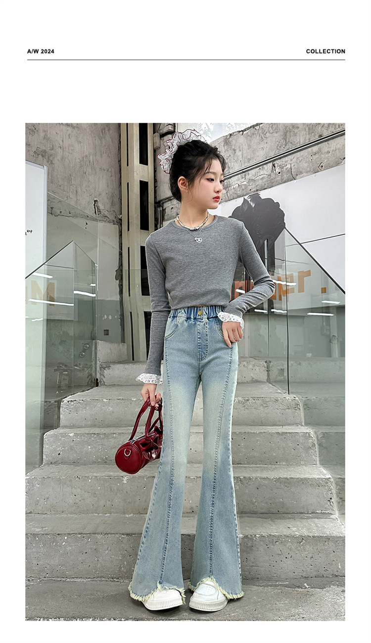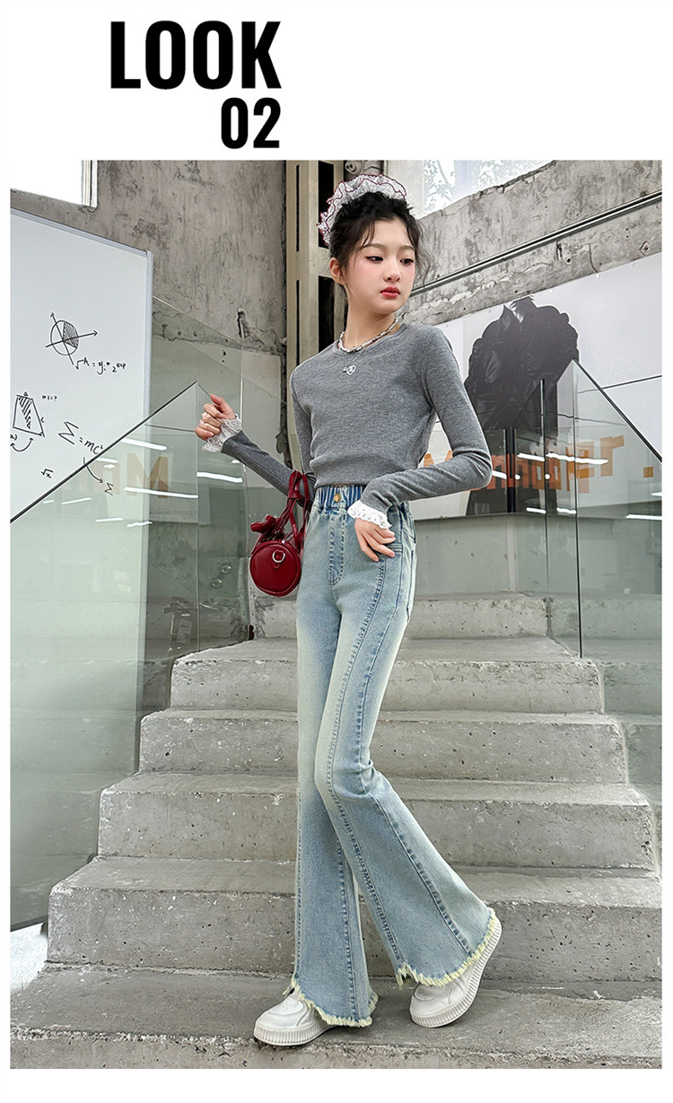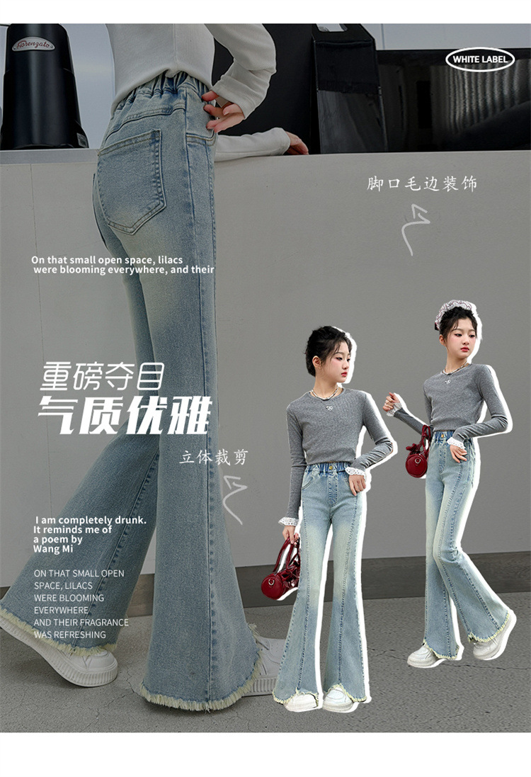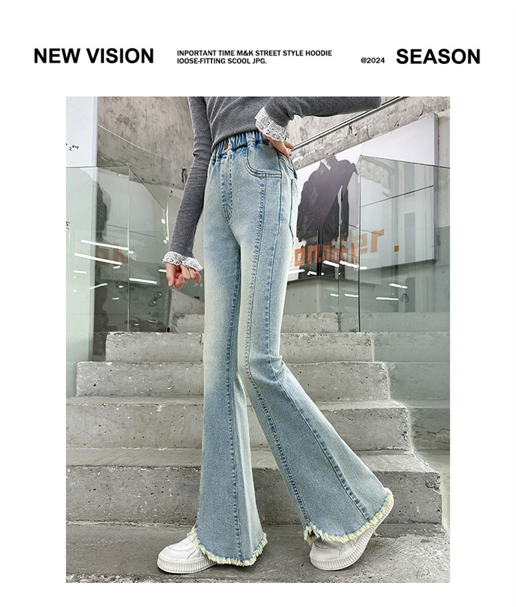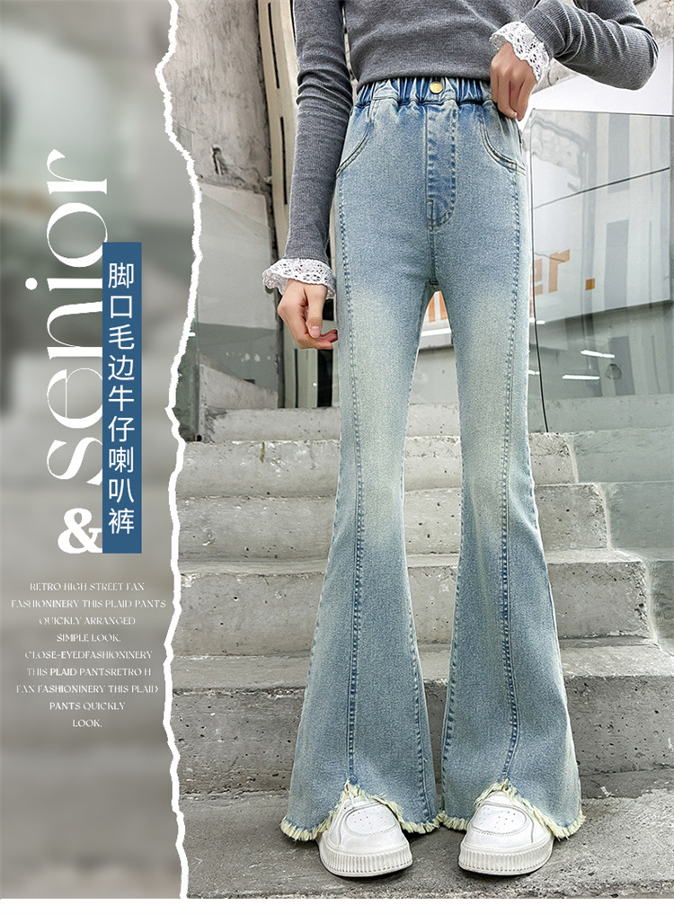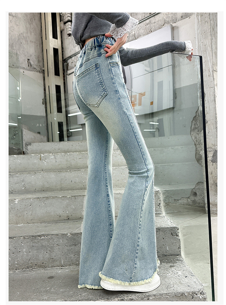 여아 청바지 여름 착용 2025 새로운 스타일 바지 서양식 아동용 중대형 어린이 봄 스타일 슬림 스트레치 플레어 바지스토어 가기