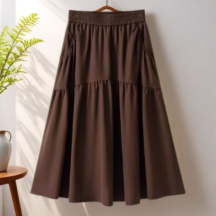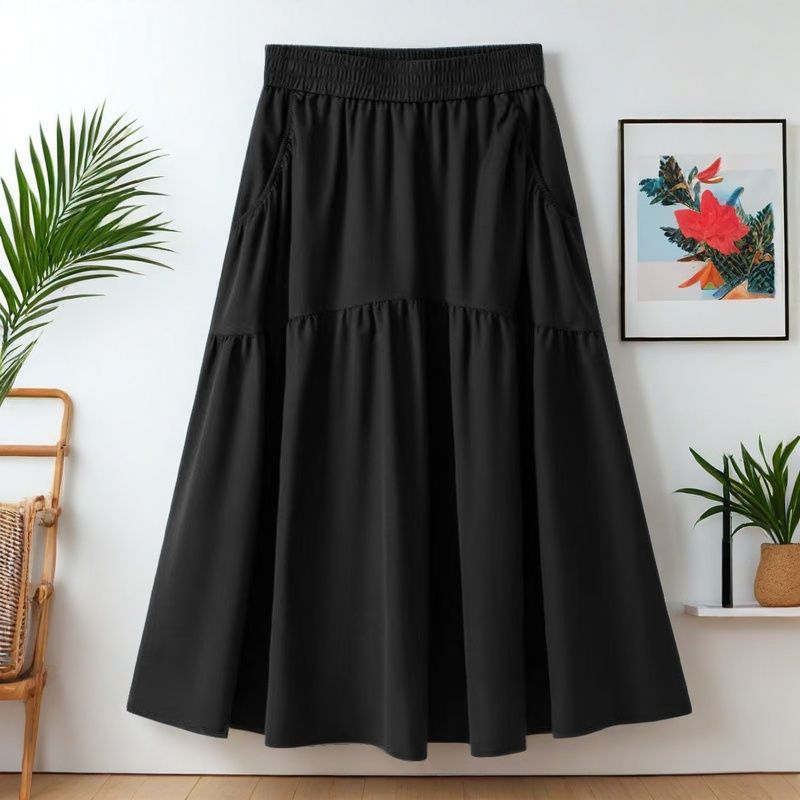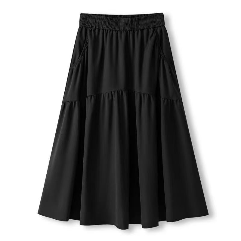 포켓 하이 웨이스트 A 라인 스커트 여성용 중간 길이 여름 스커트 2025 새로운 핫 스타일 패션 하이 엔드 슬림 스커트