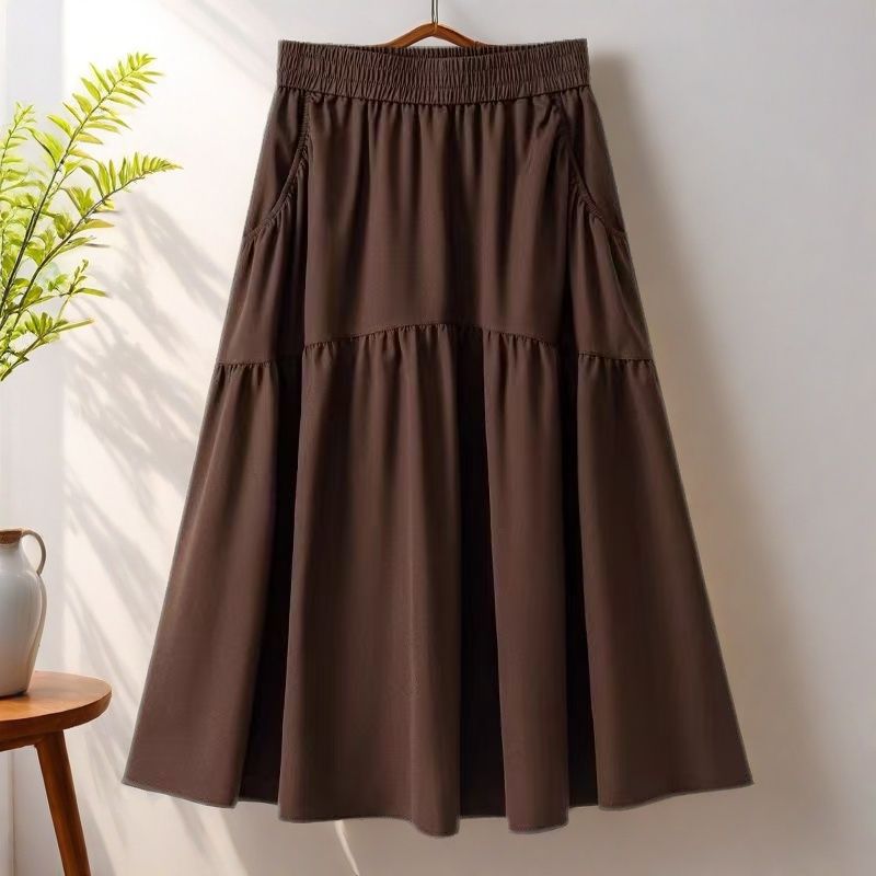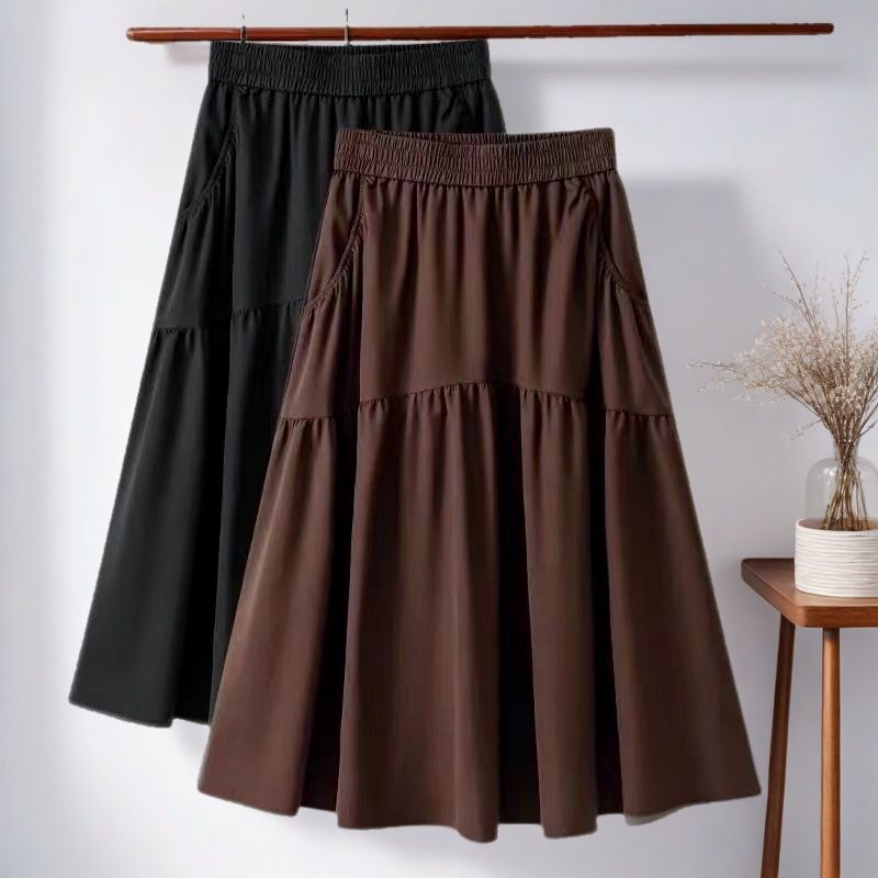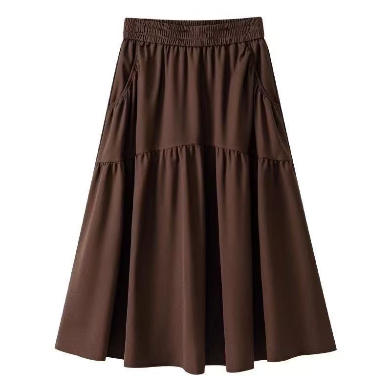 포켓 하이 웨이스트 A 라인 스커트 여성용 중간 길이 여름 스커트 2025 새로운 핫 스타일 패션 하이 엔드 슬림 스커트스토어 가기