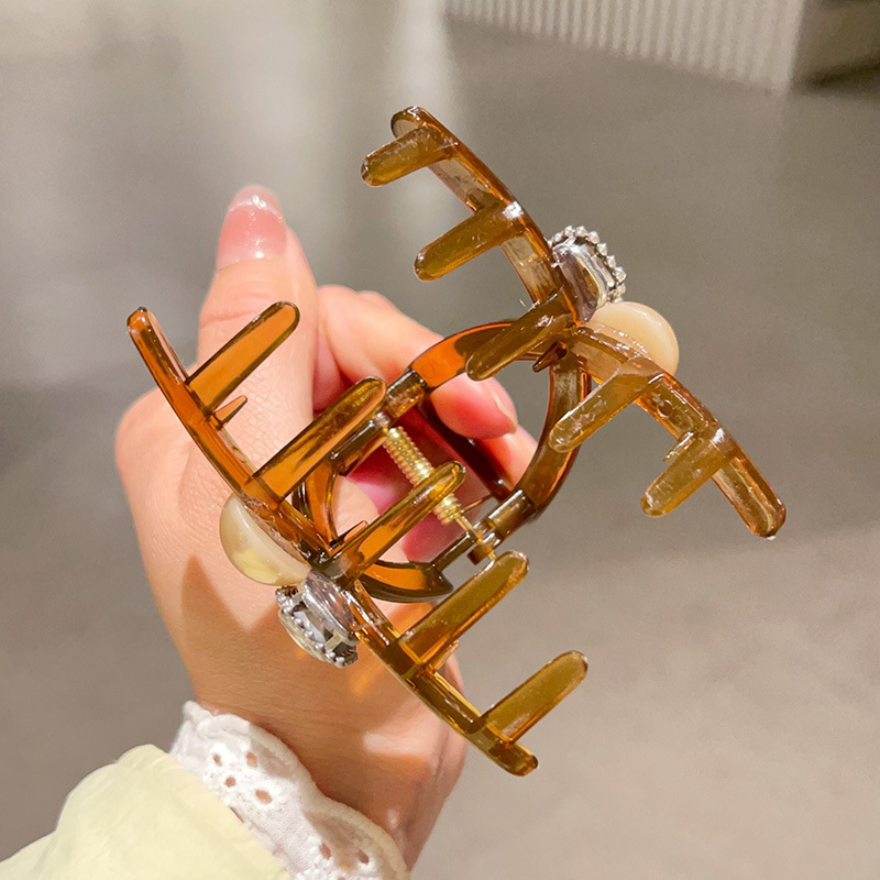 여성용 고급 커피색 라인스톤 머리핀, 여성용 뒷머리 상어핀, 여성용 투명 그립핀, 패셔너블한 중간 머리핀