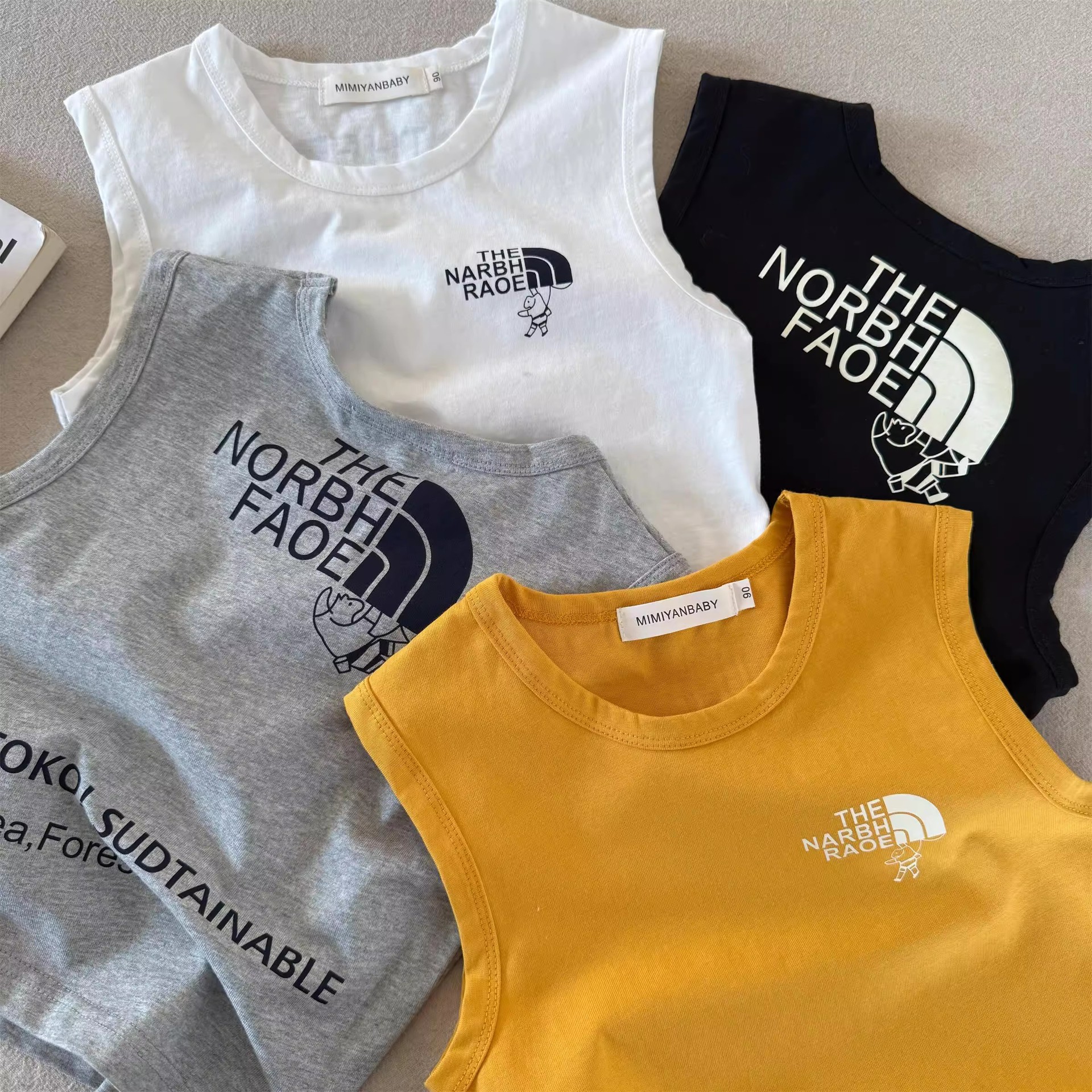 아동용 클래스 A 조끼 2025 여름 어린이 베이비 조끼 중소형 소년 트렌디 브랜드 레터 민소매 탑 도매