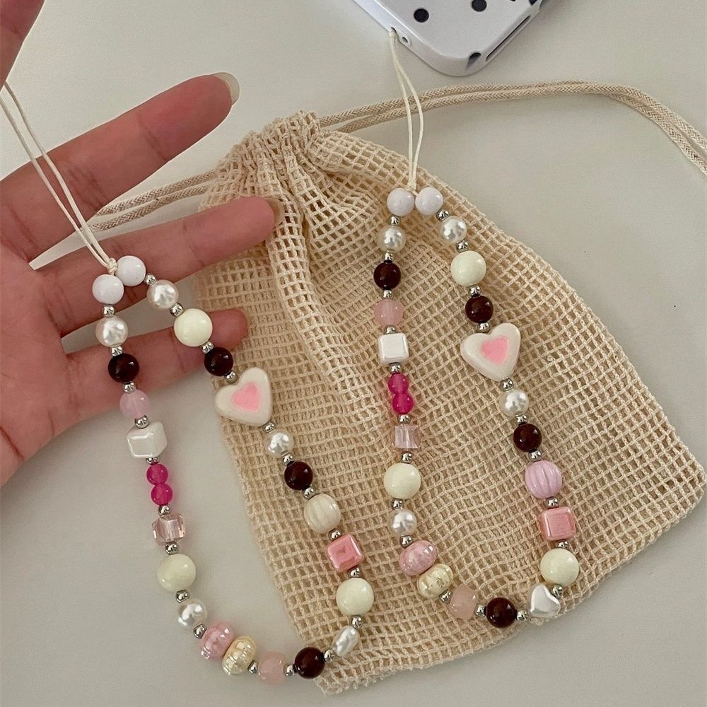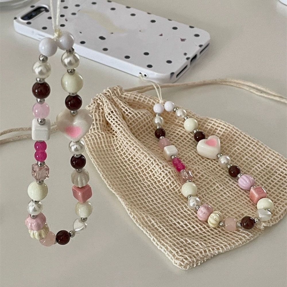수제 Ins 스타일 달콤한 코튼 캔디 폰 케이스 교수형 체인 손목 끈 카메라 체인 DIY 구슬 펜던트 D스토어 가기