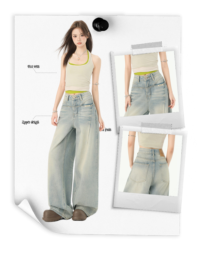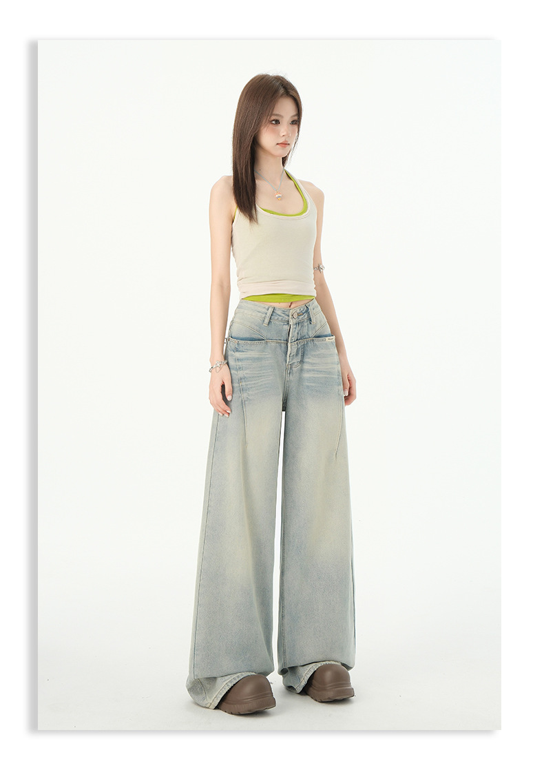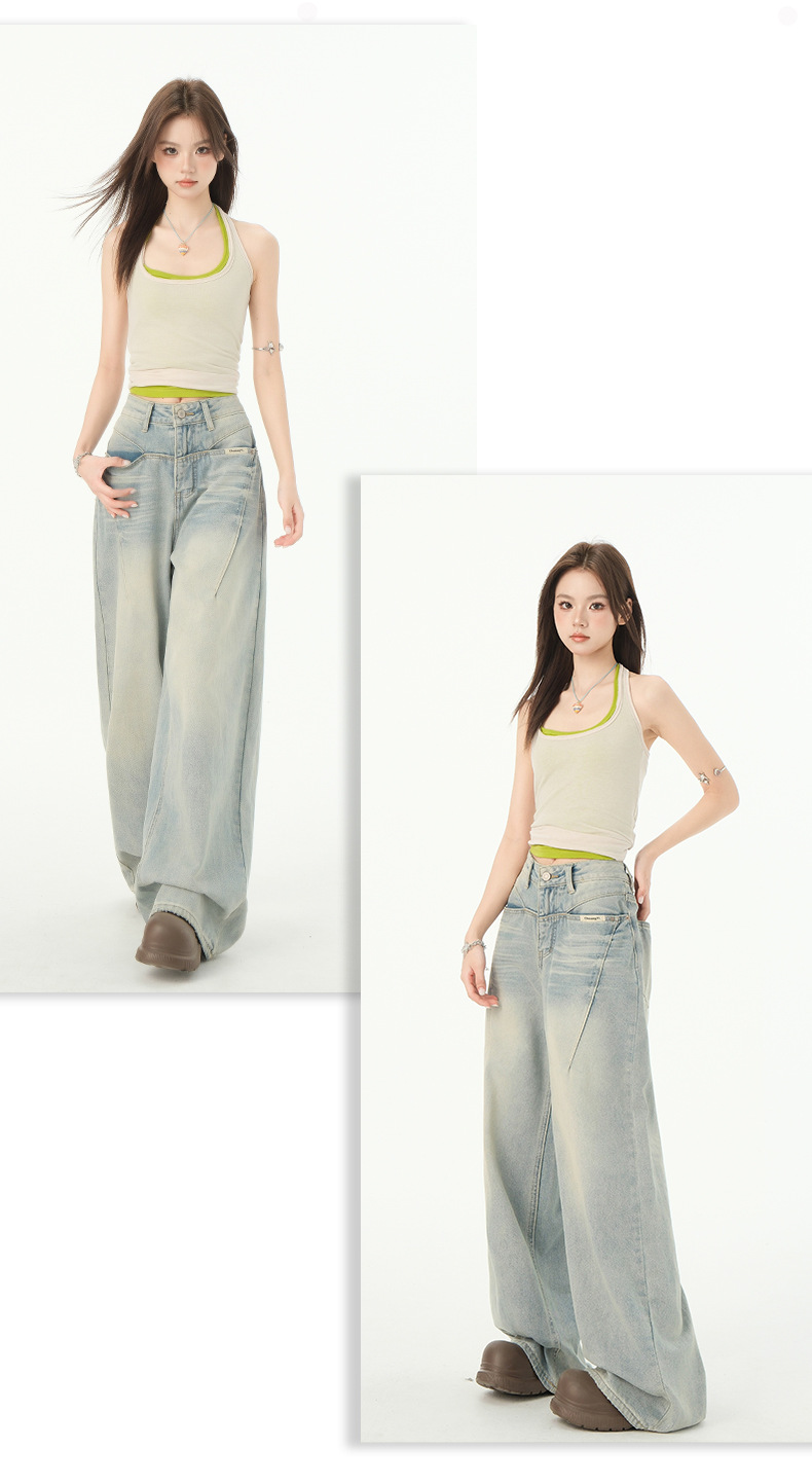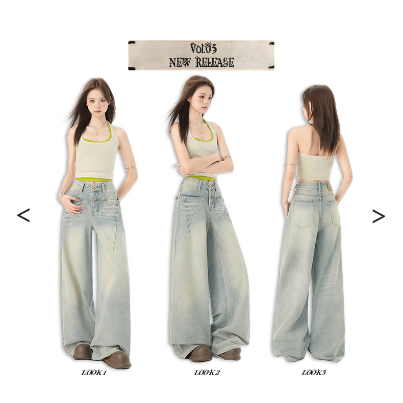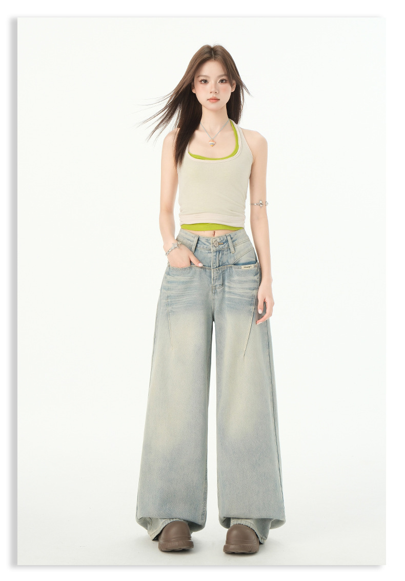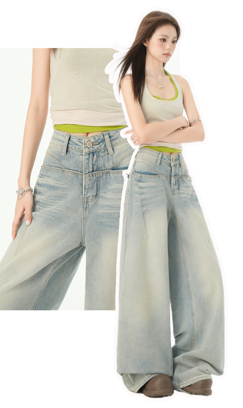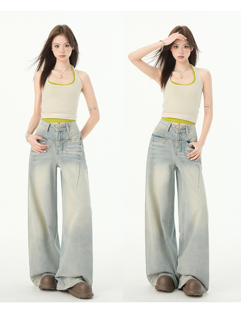 말리 말리&아메리칸 레트로 | 앞주머니 디자인 | 여성 루즈 와이드 청바지스토어 가기
