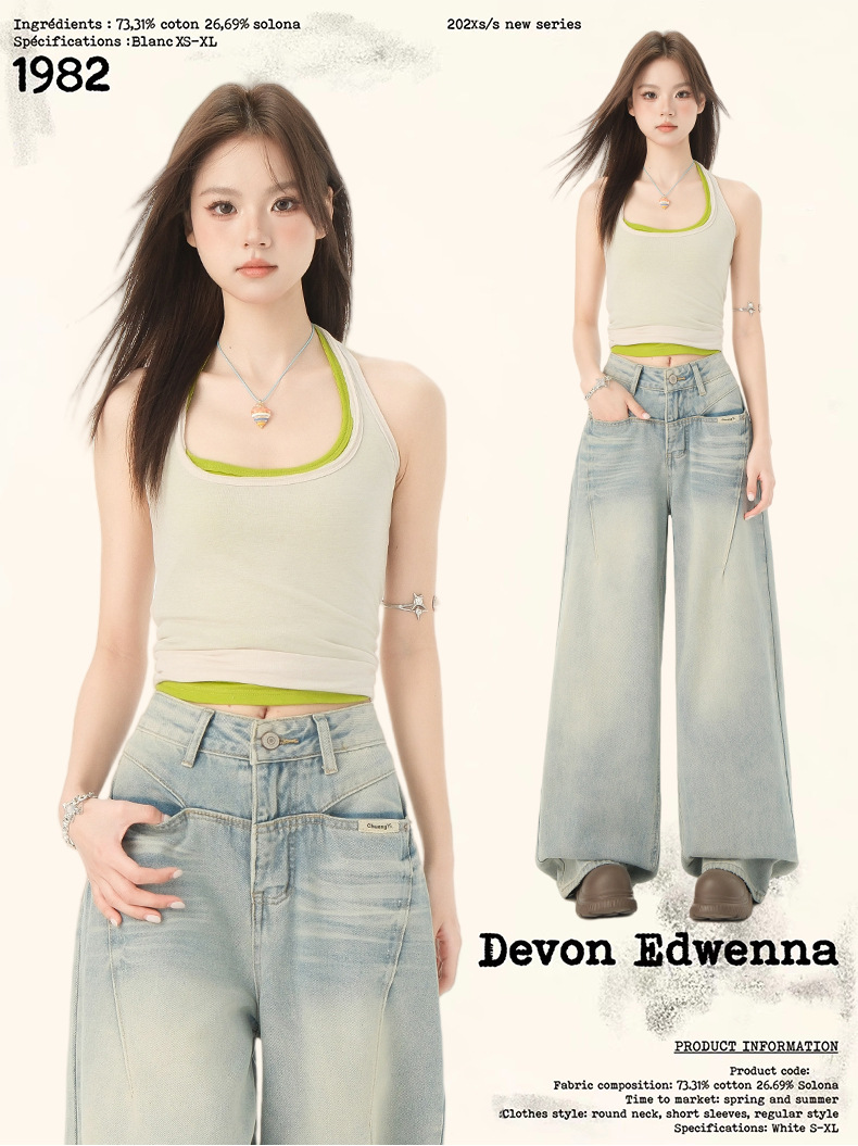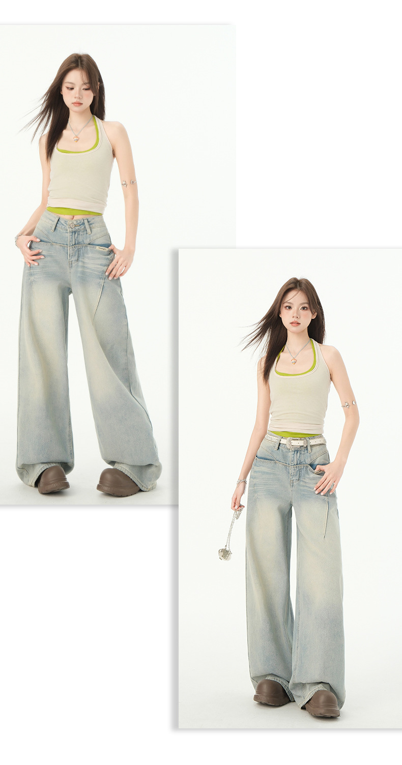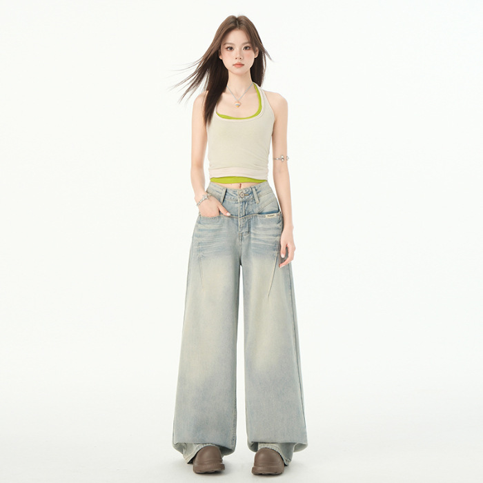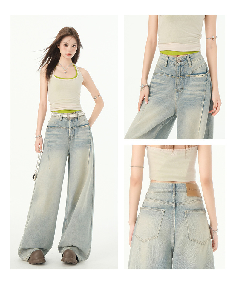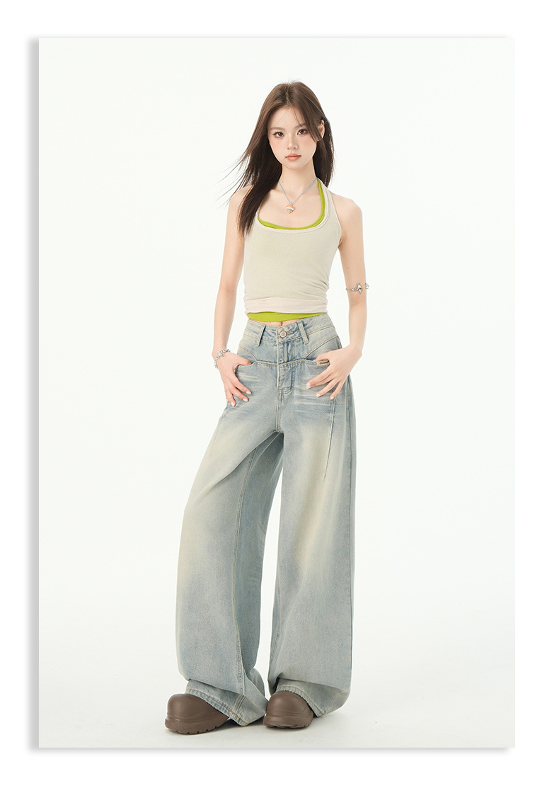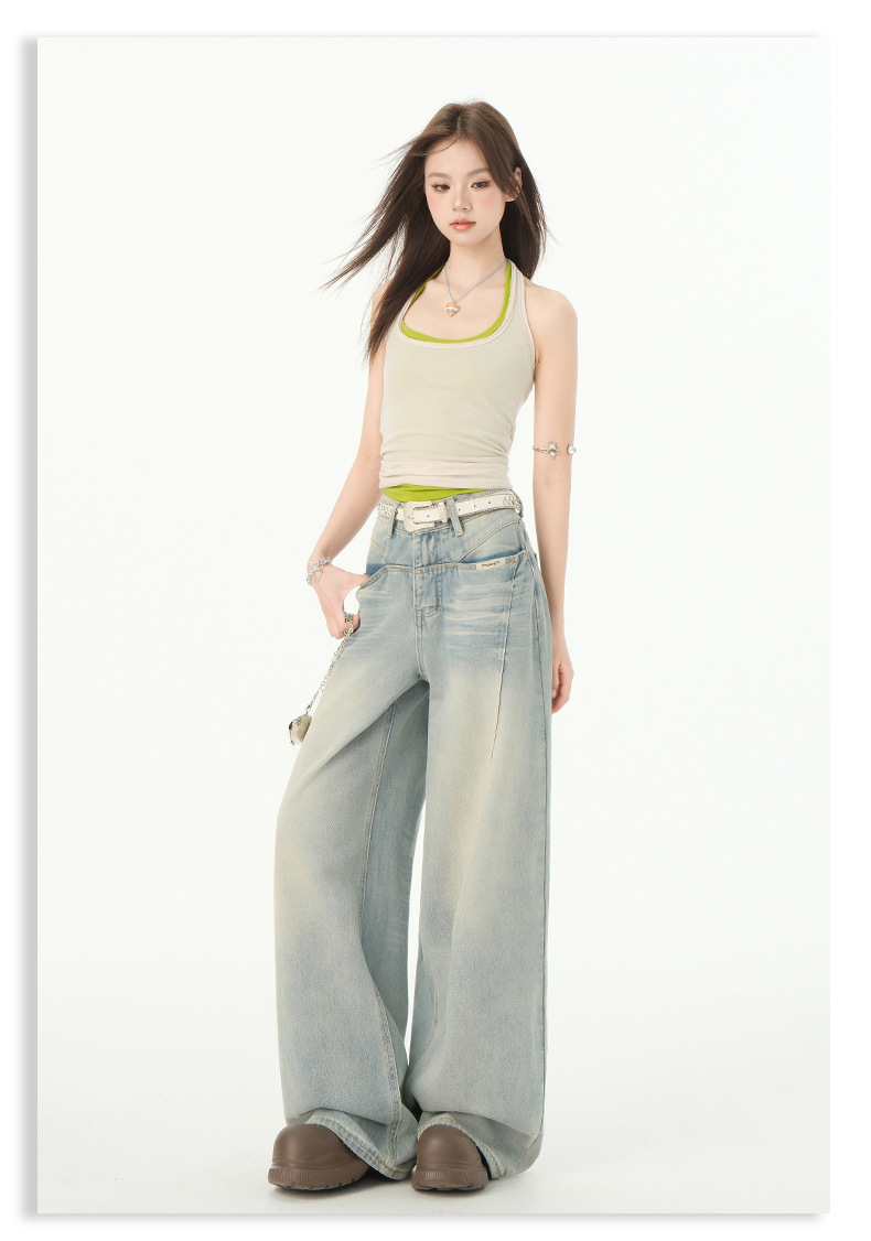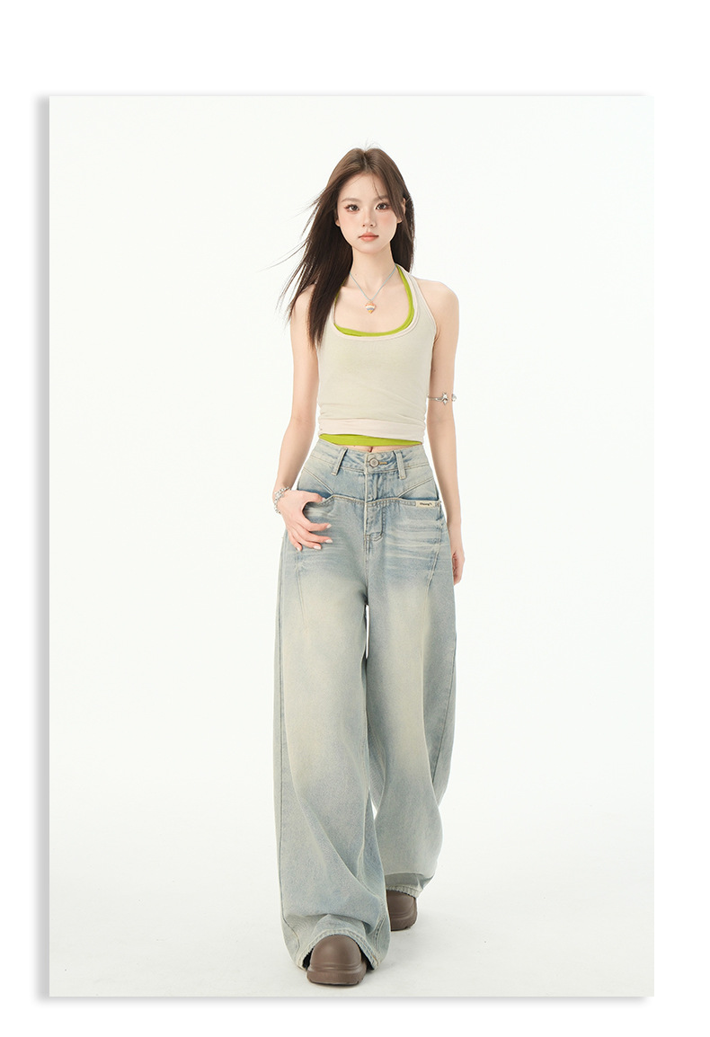 말리 말리&아메리칸 레트로 | 앞주머니 디자인 | 여성 루즈 와이드 청바지스토어 가기